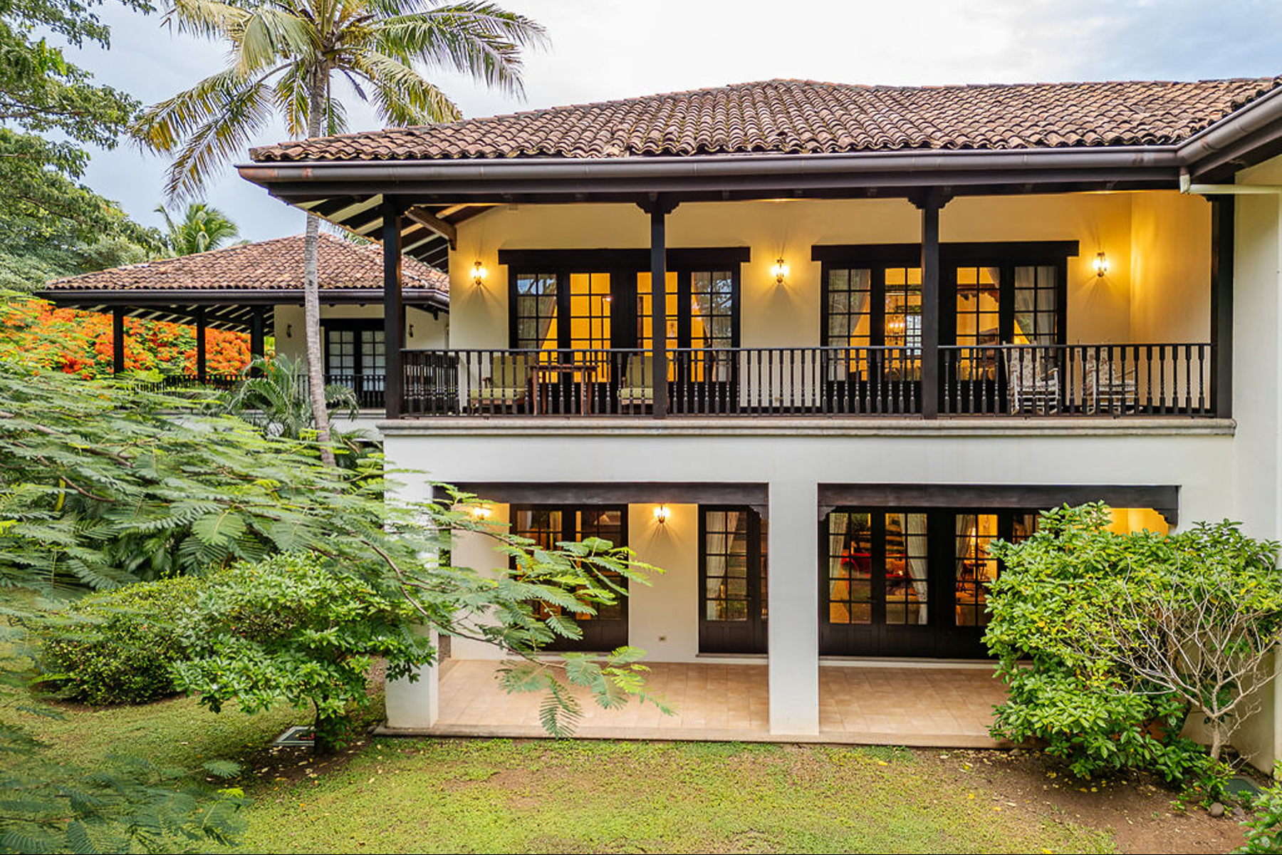 Located within the exclusive community of Hacienda Pinilla, Villa Oasis – Jardines de Palma Real 222 offers an elegant tropical retreat just a short walk from the tranquil shores of Playa Mansita and Playa Bonita. Surrounded by lush tropical gardens and mature native trees, this Spanish colonial–style villa blends timeless architecture with privacy and the relaxed coastal lifestyle of Costa Rica’s Pacific coast.