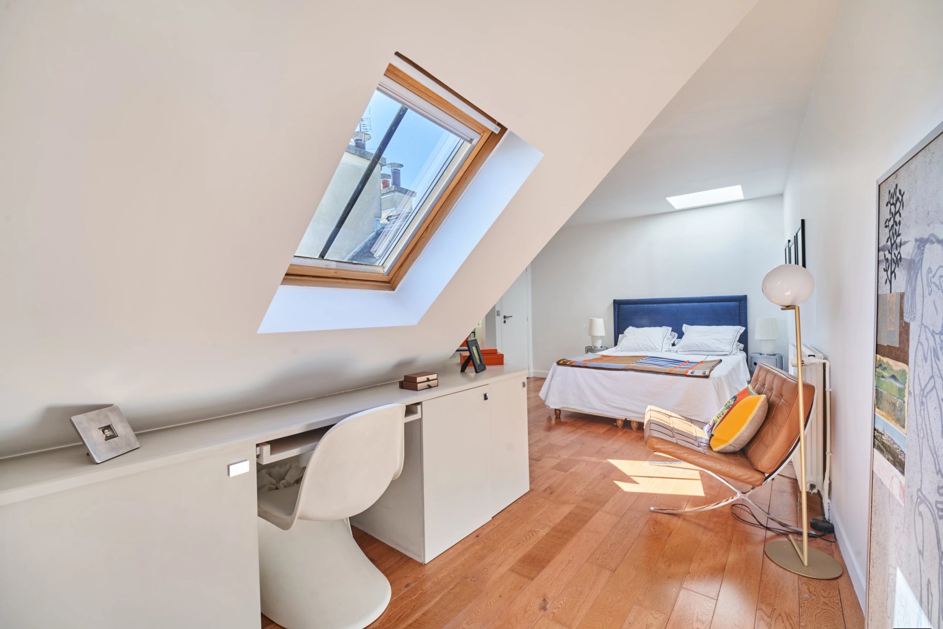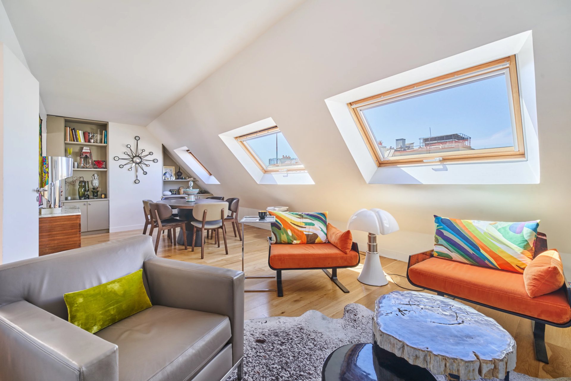 On the 8th and top floor with elevator access, this perfectly renovated 52 sq m (Carrez Law) apartment (83 sq m floor area) offers exceptional panoramic views across Paris. Bathed in sunlight, this property comprises a living room with a semi-open, separate kitchen, a bedroom overlooking the courtyard with views of the Parisian rooftops, a beautiful shower room, and a separate toilet. Optimized layout, high-quality finishes, and remarkable natural light throughout the day. Ideally located in the Drouot district, close to shops, theaters, and public transport. A rare find offering an exceptional living environment in the heart of Paris.
