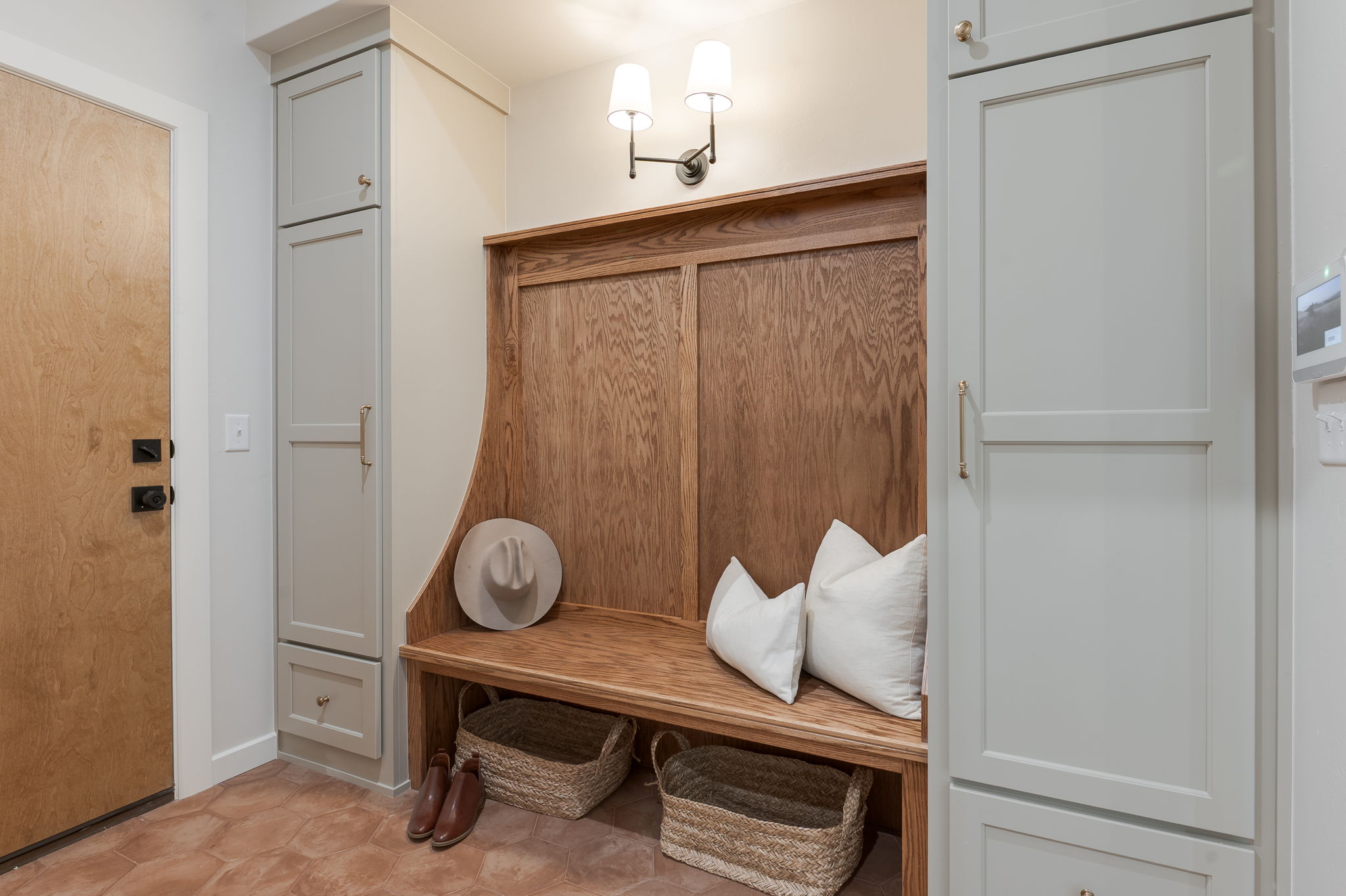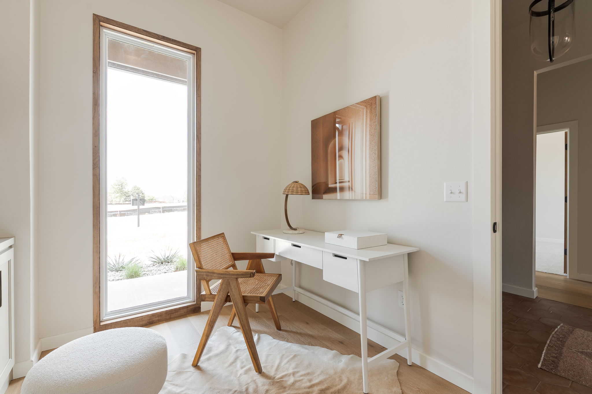 Set in Cross Timbers, this newly completed home was designed with intention from start to finish. The entry makes a statement right away with terra cotta flooring, warm wood beams, and clean lighting that sets the tone. There’s a dedicated pocket office that makes working from home feel separate but still connected. Even the utility room was given attention, with a full backsplash, apron-front sink, and cabinetry that actually makes the space feel finished. Two front bedrooms are positioned on this side of the home, along with a full bathroom. The main living spaces feel open and natural, with light pouring in and a mix of materials that actually work together—light wood floors, darker stone, soft cabinetry, and just enough contrast to keep it interesting. The kitchen is the center of it all, anchored by a sculptural vent hood and a large island. There are small moments throughout—open shelving, built-ins, and a clay tile screen detail, that give it personality without taking over the space. The primary suite carries the same tone, simple, calm, and well thought out. The bathroom stands out in the best way, with a freestanding tub set under a large window and natural light that keeps the space feeling soft. And the mirrors, easily one of the best details in the house. A little unexpected, a little playful, and just enough to make the space feel different from anything else you’ve seen. There’s also a powder bath that doesn’t get overlooked, it’s a moment. Terra cotta-toned tile wraps the vanity, paired with a stone vessel sink and a warm brass faucet that gives it just the right contrast. Clean lighting and simple lines keep it grounded. A versatile rumpus room adds flexibility—easily functioning as a fourth bedroom, second living area, or a space for movie nights and play. From the exterior materials to the interiors, there’s a consistency here that’s hard to find. Every finish, every texture, every detail was chosen with intention, and it shows.