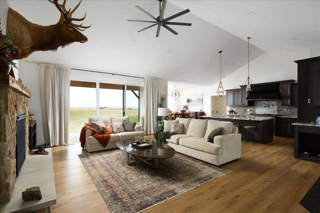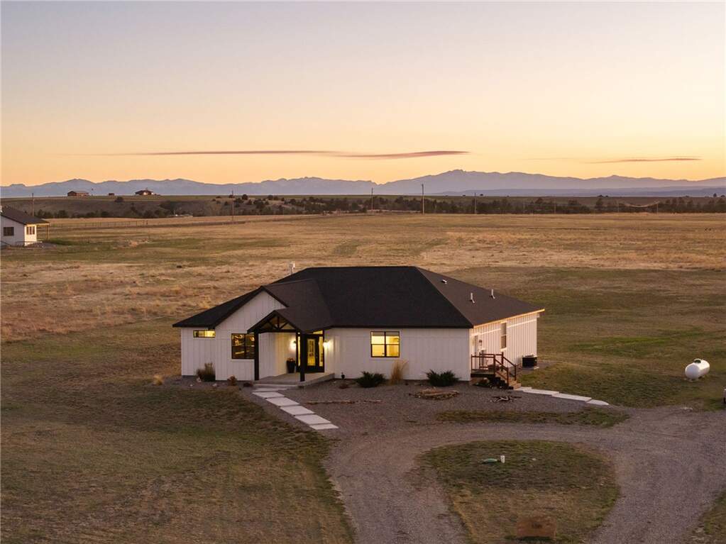 Looking for refined new construction on acreage minutes from town? Welcome to Collier Road, set on 3.7 acres with intentional design and elevated craftsmanship throughout. Expertly executed at every turn, the kitchen serves as the centerpiece with professional-grade appliances, 8-burner range, custom hood, and seamless built-ins designed for both function and style. The vaulted living room features a custom rock fireplace and expansive sliding doors opening to sweeping mountain views for effortless indoor-outdoor living. The primary suite is a true retreat with an open layout, spa-inspired bath, soaking tub positioned for the view, walk-in shower, and elevated finishes throughout. A functional floor plan includes 3 bedrooms, 2.5 baths, and a flexible office or fourth bedroom, all framed by panoramic mountain ranges and a rare blend of space, design, and Montana living at its finest.