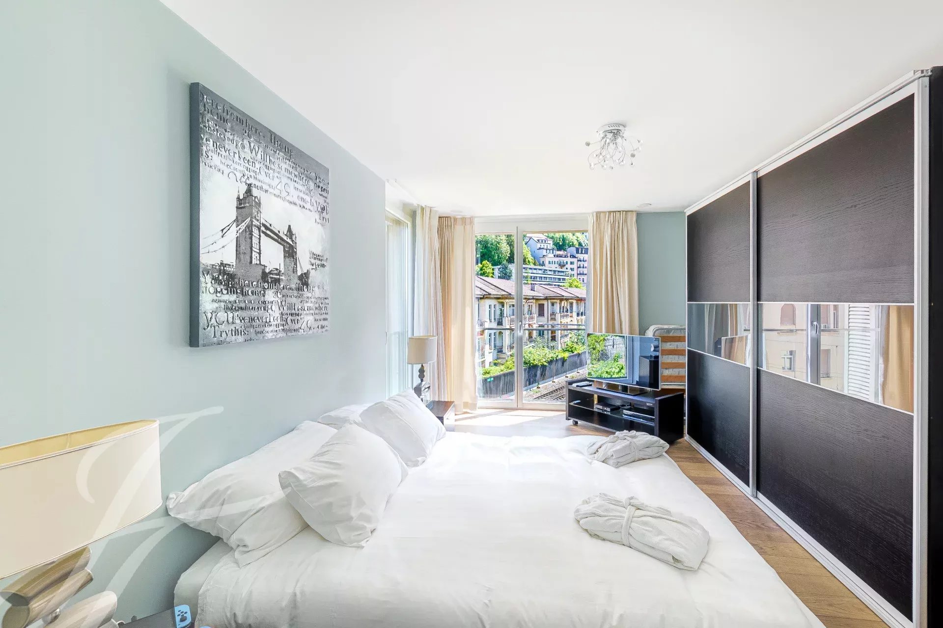 An EXCLUSIVE JOHN TAYLOR !- This 3.5-room apartment boasts breathtaking views of the lake and the Dents du Midi, located directly facing the lake within the renowned Le National residence.- The residence is celebrated for its wellness space, including an indoor pool, fitness room, sauna, and jacuzzi.- Ideally situated, the building benefits from proximity to public transportation, conveniently accessible at the building's doorstep.- The perfectly oriented apartment provides exceptional brightness. Its stunning balcony allows you to savor the panoramic view. The spacious living area features an open kitchen and access to a terrace.- Two bedrooms, including a master suite, offer a comfortable and intimate space.- High-quality materials and finishes add an elegant touch to every corner of the apartment.In excellent condition, no renovations are required.- One indoor parking space is available for CHF 50,000.- This property is open to acquisition by non-resident foreigners as a secondary residence.