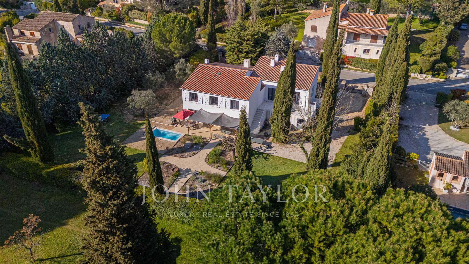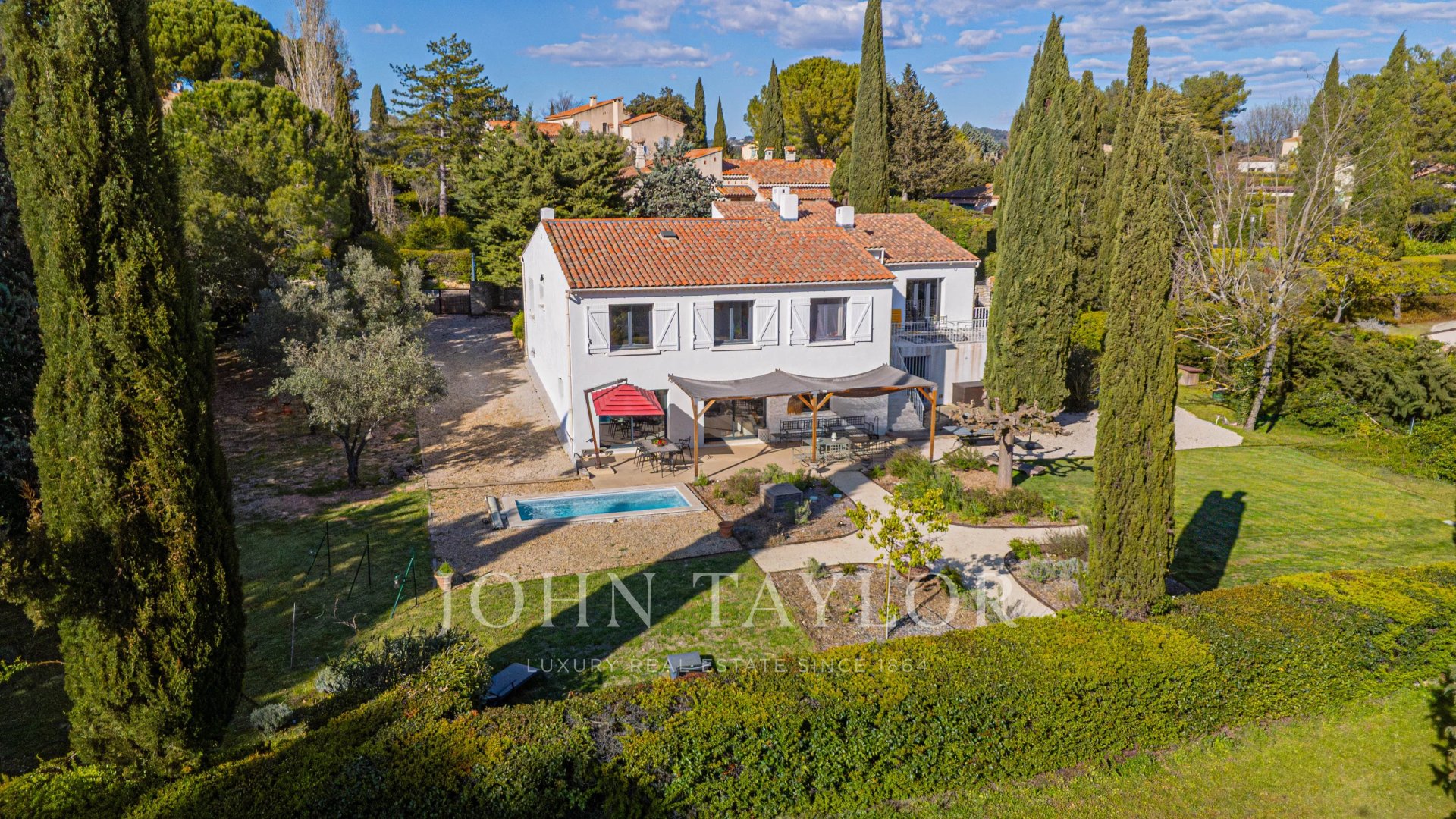 Only 4 km from the center of Aix-en-Provence, within a secure and peaceful residence, this fully renovated house of approximately 250 m² offers an exceptional and highly sought-after living environment.From the entrance, the volumes and brightness are captivating: a spacious living area combining living room, dining room, and equipped kitchen, open to the outside, creates an ideal convivial space for entertaining.Upstairs, the sleeping area includes:• A large master suite with bathroom, library lounge, and private terrace.• Four bedrooms- Two shared shower roomsOutside, the landscaped and fenced garden of about 2,200 m² features a small swimming pool, vineyards, and green play areas.Garage, large laundry room, and plenty of storage complete this property.A family house with a pool in Aix-en-Provence, combining quality renovation, security (guard in the residence), and immediate proximity to amenities and buses.The most beautiful transactions always bear the same signature - John TaylorInformation on the risks to which this property is exposed is available on the Georisques website: www.georisques.gouv.fr