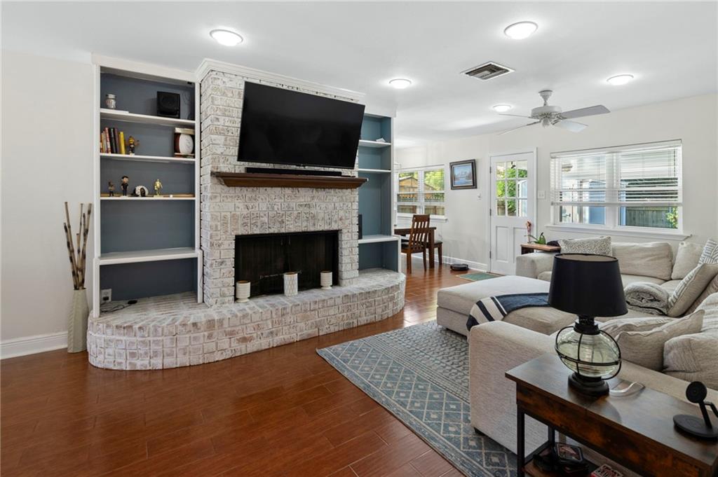 Embrace comfort and style with this wonderful 4-bedroom, 2.5-bathroom home perfectly situated on one of Metairie's most lively and welcoming blocks! Enjoy the energy of a neighborhood where friendly faces, morning jogs, and evening strolls create a true sense of community. The home itself offers comfort and style, starting with a first-floor primary bedroom featuring a beautifully renovated ensuite with marble countertops and a custom glass-enclosed shower. Upstairs, you'll find three spacious bedrooms - two with upgraded custom closet storage - and a recently renovated bathroom with marble counters and a luxurious jetted tub for a relaxing, spa-like retreat. Cozy up by the charming living room fireplace or gather in the eat-in kitchen, fully renovated in 2022 with soft-close cabinetry, quartzite countertops, a pot filler, and a gas stovetop - excellent for entertaining or quiet weeknight dinners. Looking out into the fenced-in backyard, the kitchen flows seamlessly to your covered patio (updated in 2024), great for enjoying the outdoors year-round. The yard also includes a storage shed for added convenience. With a two-car garage, this property offers easy access. Experience the perfect blend of modern updates and neighborhood charm - schedule your viewing today and see why this lively block is one of Metairie's favorites!