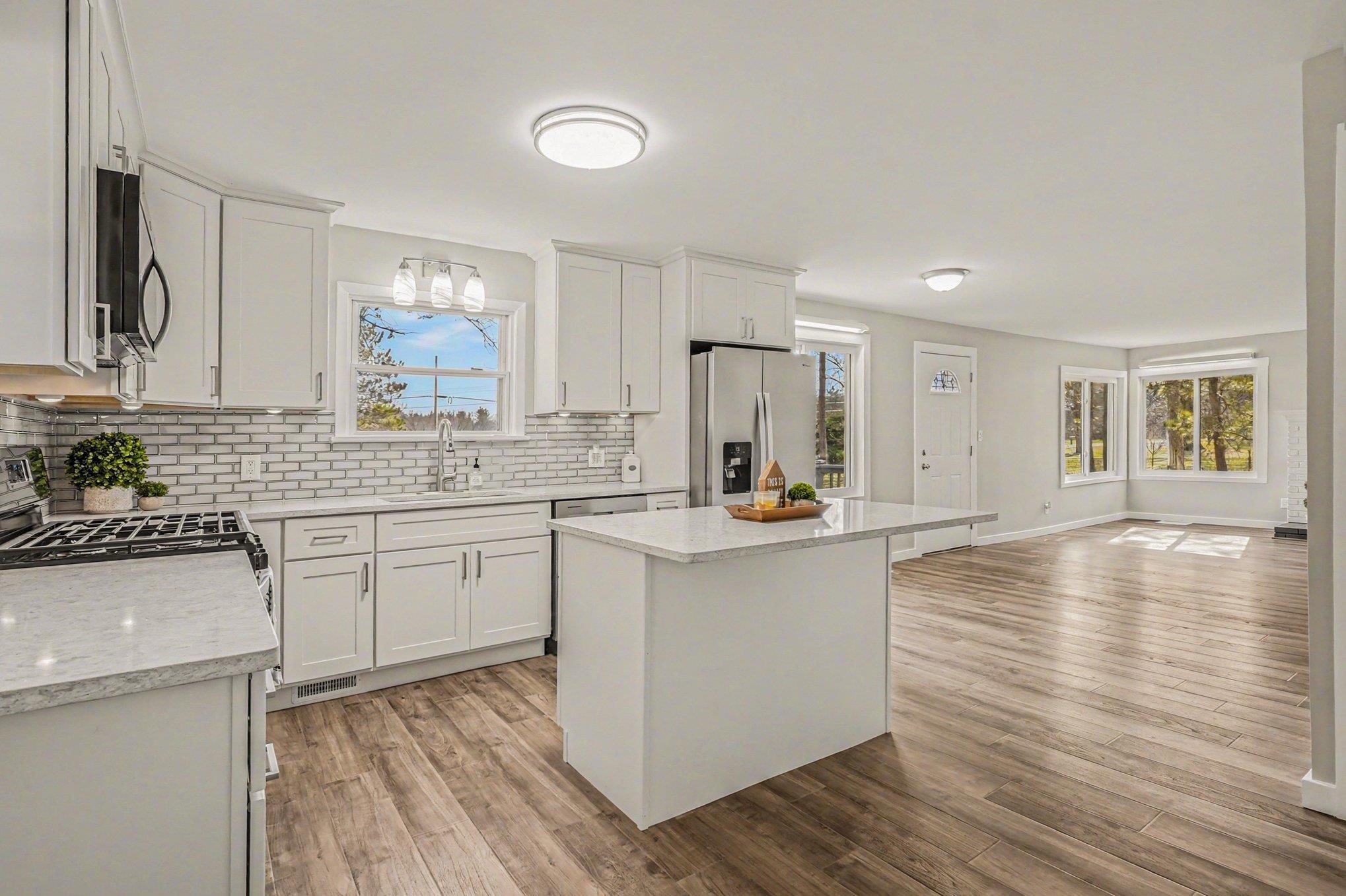 **OFFERS DUE: Multiple offers received. All highest and best offers DUE 4/13/26 by 5:00 PM** Completely remodeled and full of potential on Chippewa River Rd! This charming ranch sits on a large lot with plenty of room to roam and features both an attached garage and an additional detached garage with heat and its own subpanel. Inside, the home has been beautifully updated with a stunning kitchen offering quartz countertops, new cabinetry, backsplash, appliances, and a spacious pantry for added storage. The layout includes main floor laundry, 3 bedrooms and 2 full bathrooms, including a primary suite with a walk-in shower. The inviting living room showcases a cozy fireplace and flows effortlessly into the kitchen, making it ideal for entertaining. The finished basement provides a generous additional living space along with a potential 4th bedroom or oversized office. Additional updates and features include a new septic tank, city water, natural gas, vinyl windows, forced air, central air, and a lovely covered porch.