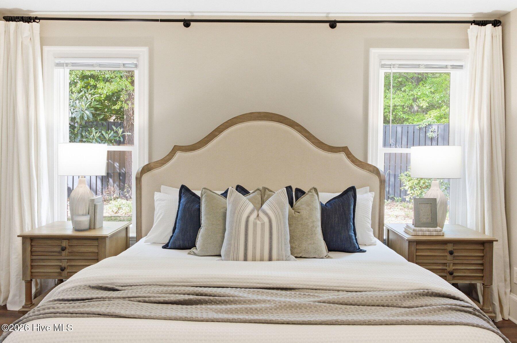 This show-stopping property has just hit the market and is a rare opportunity in the highly sought-after Dramtree community. Ideally located just outside the Cape Fear Country Club area and minutes from everyday conveniences, this home offers the feel of single-family living with the ease of HOA-covered exterior maintenance, master insurance and front lawn care, while having the flexibility to care for your privacy fenced back yard with your own personal touch. Inside, you'll find a beautifully appointed high end kitchen featuring gleaming quartz countertops, a stunning tile backsplash, a wine fridge, Caf Series appliances, and custom cabinetry designed for both function and style. Just beyond the kitchen, the main level offers a flexible guest bedroom, a fully updated guest bathroom, and an open dining and living area. The living room is warm and inviting, anchored by a gas fireplace with custom built-ins. Custom window treatments convey, creating a truly turnkey property. The spacious primary suite is a true retreat, complete with custom blinds, dual closets, and a beautifully updated bathroom featuring a tile walk-in shower and double vanity. Step outside to your private, fenced backyard, where mature landscaping creates a peaceful setting with something in bloom year-round. Upstairs, a third bedroom and full bathroom provide the perfect space for guests, a home office, or a hobby room. Storage is abundant, with a large floored attic above the garage and an additional separate floored attic space for even more convenience. An attached one-car garage offers private parking, with ample additional spaces available throughout the neighborhood. Enjoy an unbeatable location just minutes from Cape Fear Country Club, Novant Hospital, Historic Downtown Wilmington, Independence Mall, and several parks including Longleaf Park, Empie Park, and Stanley Rehder Carnivorous Plant Garden. If you enjoy golf, tennis, or a simple active lifestyle and convenience, this is the property for you. Homes in Dramtree rarely become available. Don't miss your chance to call this exceptional property home.
