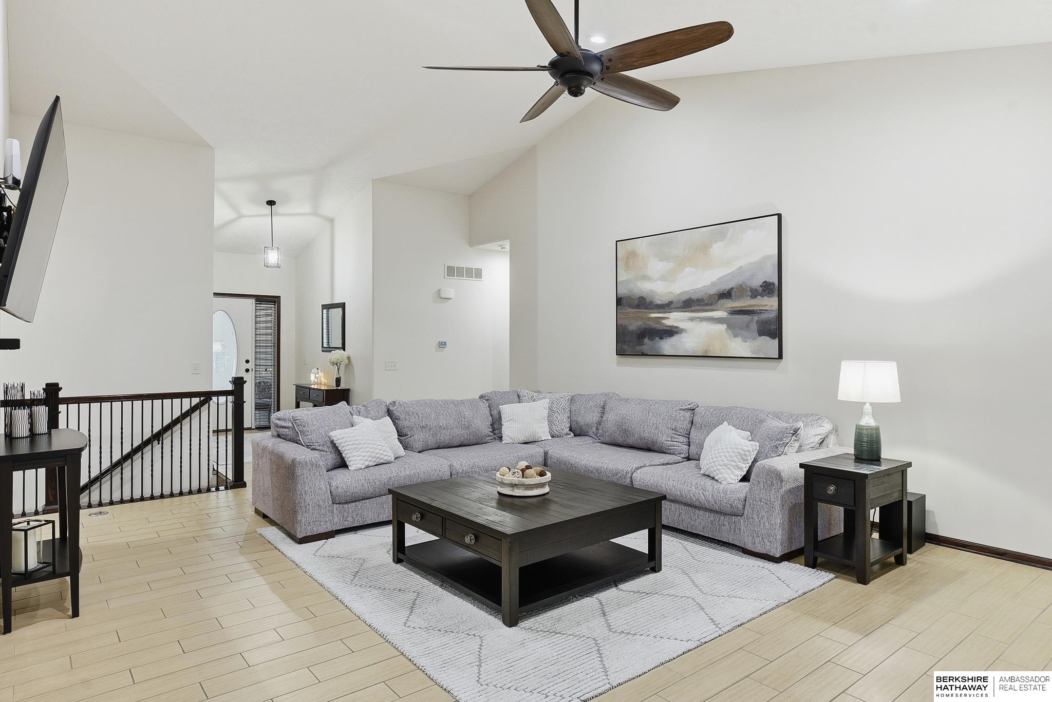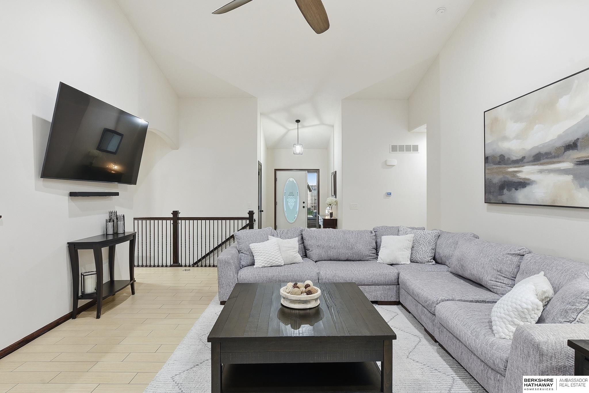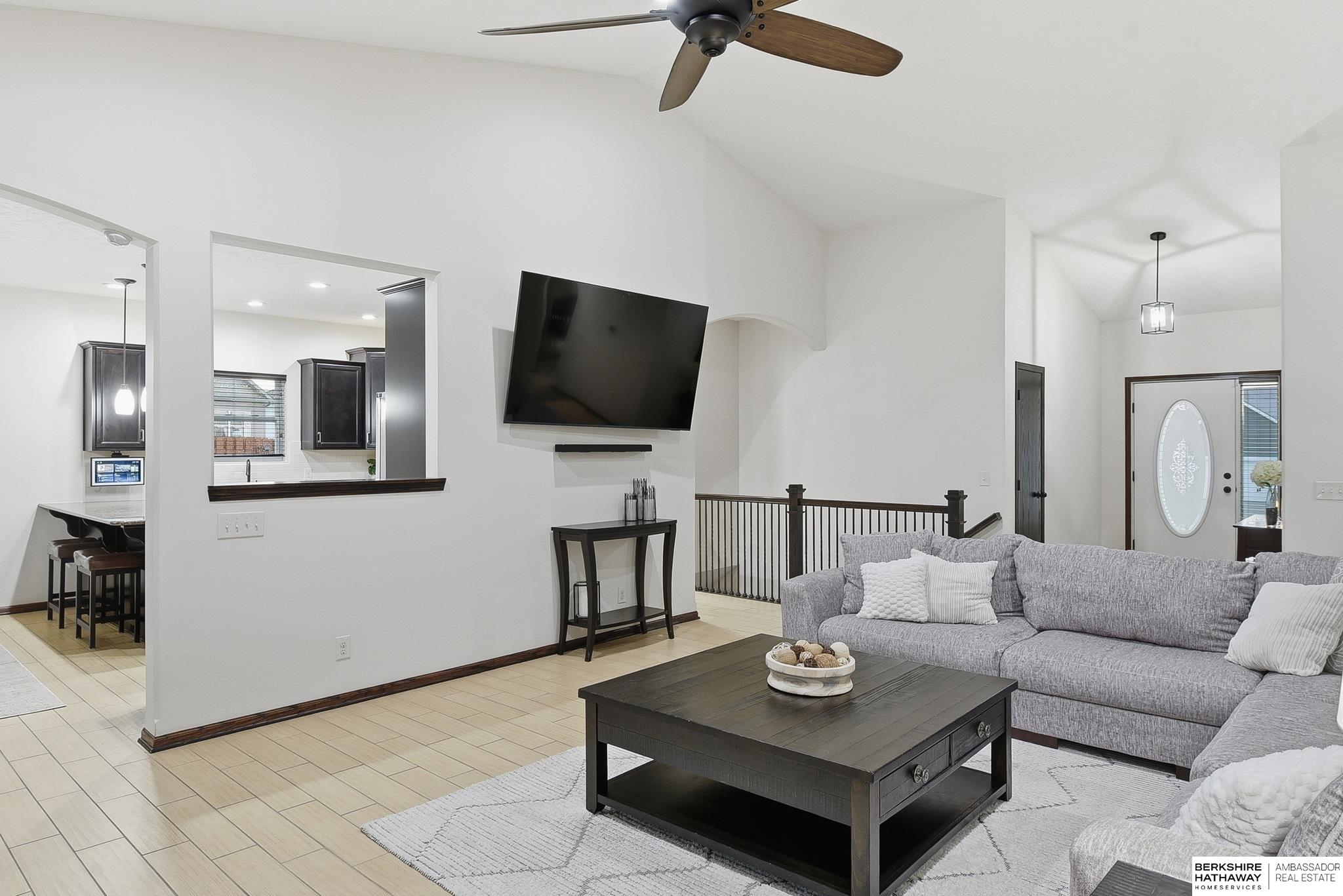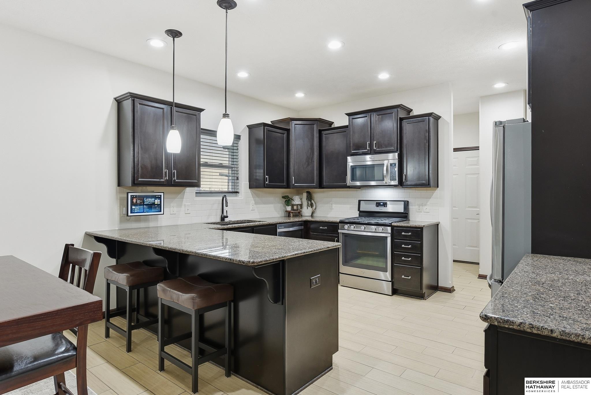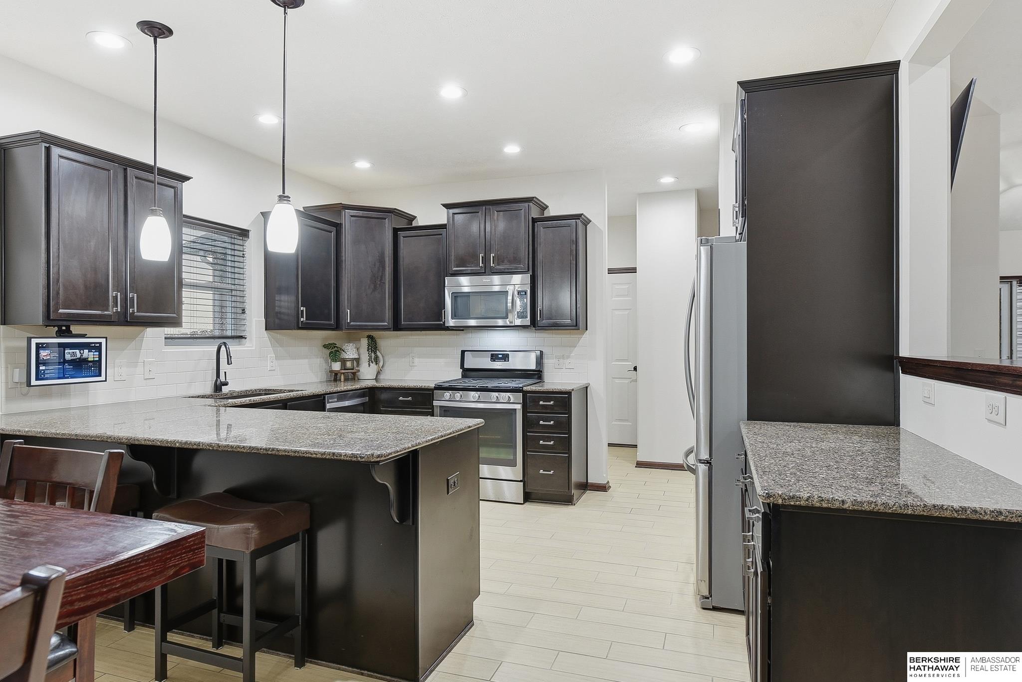 Welcome to this beautifully maintained 5 bedroom ranch on a corner lot in Pebblebrooke! This open-concept home features soaring ceilings in the great room, newer paint, and durable ceramic tile plank flooring in the main living areas. The great room offers a gas fireplace and flows into a stylish kitchen with granite, tile backsplash, stainless steel appliances, gas range, and pantry. The spacious primary suite includes barn doors to a large walk-in closet, and a bath with dual sinks, whirlpool tub, and a separate tiled shower. The finished lower level features a large family room, bedrooms 4 & 5, a bath, and a cool bonus room. Fully fenced backyard, sprinkler system, year-round exterior lighting, new humidifier and Hvac serviced for peace of mind. Home is meticulous and has lots of little extras. This is a great location with a neighborhood park, basketball court, trail and conveniently located next to the Highway 370 corridor and Gretna Schools!