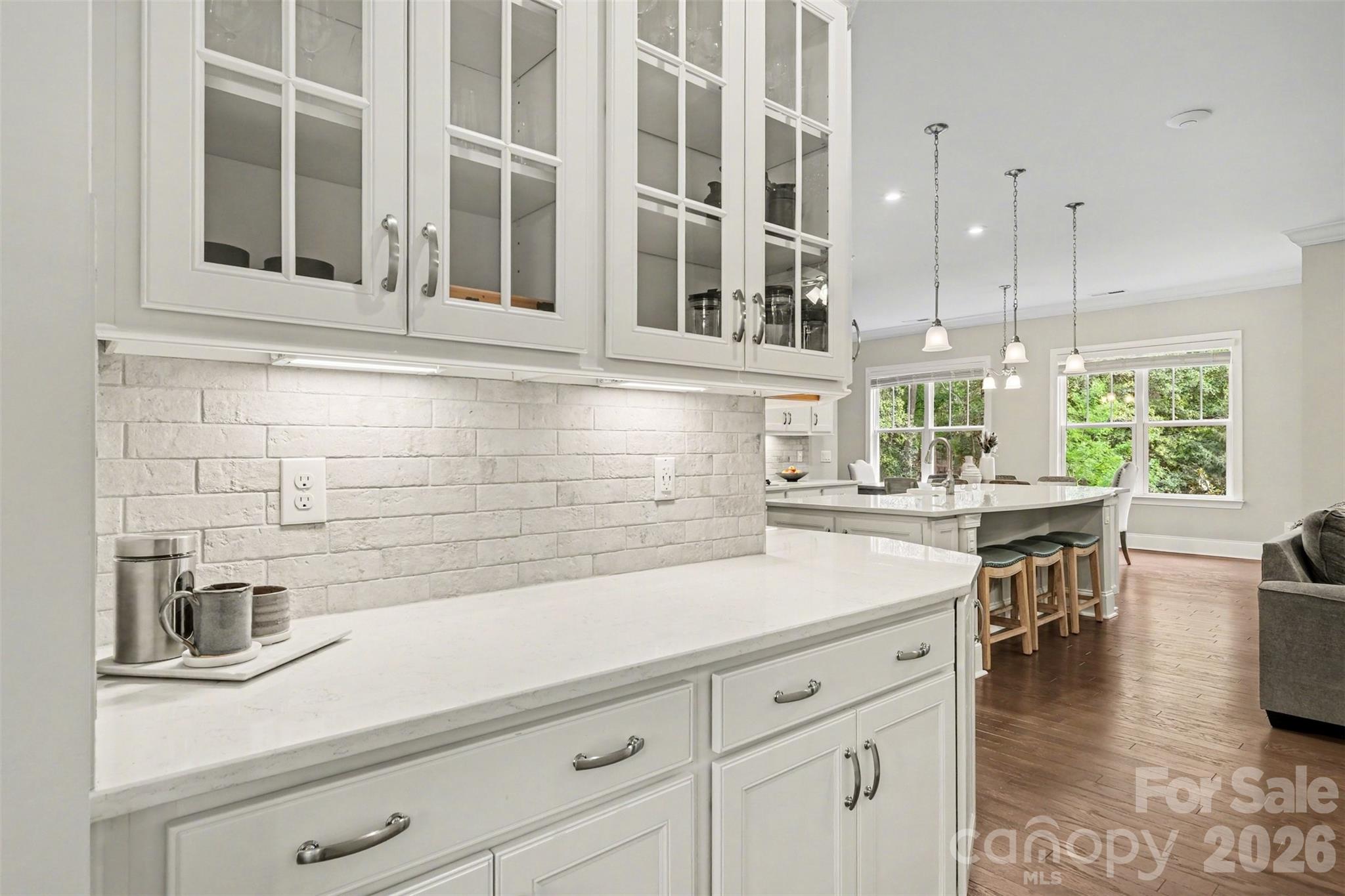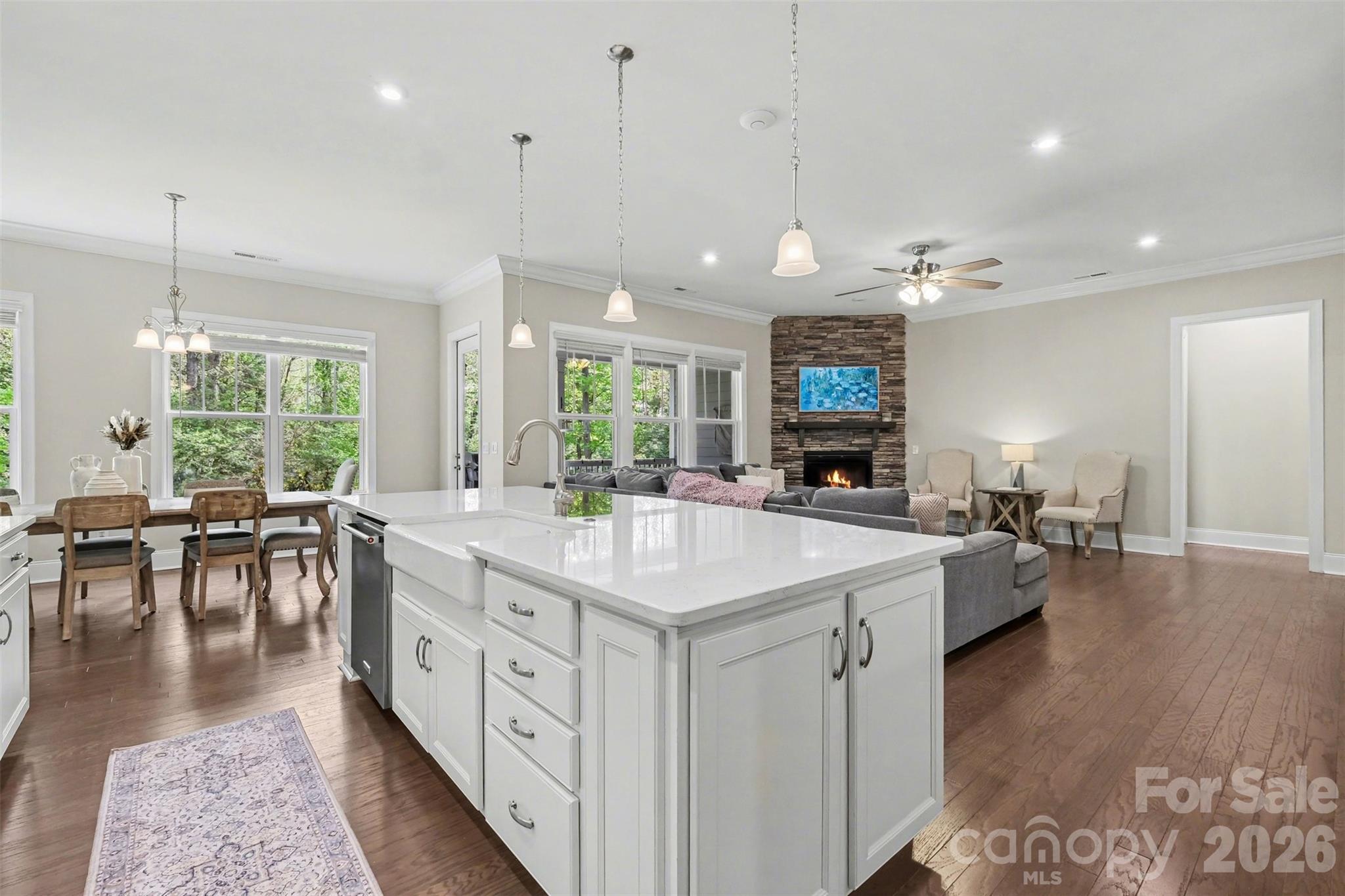 Welcome to 113 Cross Current, an exceptional residence in McLean-South Shore, a sought-after waterfront community offering lake access, a private kayak launch, and resort-style amenities that define effortless luxury living. Ideally located near Charlotte, Charlotte Douglas International Airport, and the charm of nearby Belmont and Daniel Stowe Conservancy, this home delivers the perfect balance of convenience and retreat, with marinas and waterfront recreation just moments away. Thoughtfully designed and meticulously maintained, this home features a refined yet highly livable floor plan anchored by a main-level primary suite. Each bedroom offers direct access to a bathroom and walk-in closet, providing comfort and privacy for family and guests alike. Expansive living areas and versatile flex spaces create endless possibilities for entertaining, working from home, or simply relaxing in style. The home is further enhanced by a whole-house reverse osmosis water filtration system, delivering exceptional water quality throughout. The gourmet kitchen is a true centerpiece, showcasing an oversized island, butler's pantry, and seamless flow into the main living spaces. The open floor plan, striking stone fireplace, and built-in drop zone add both character and everyday functionality. The main-level primary suite offers a luxurious retreat, complete with a custom walk-in closet featuring a center island. Abundant easily accessible storage throughout and a spacious three-car garage with over-sized driveway for onsite parking further enhance the home's practicality. Step outside to the inviting covered porch with ceiling fan and a private, level backyard framed by mature trees, where a fire pit invites quiet evenings and gatherings under the stars. A rare opportunity to own a home that perfectly blends timeless design, modern convenience, and an elevated waterfront lifestyle.