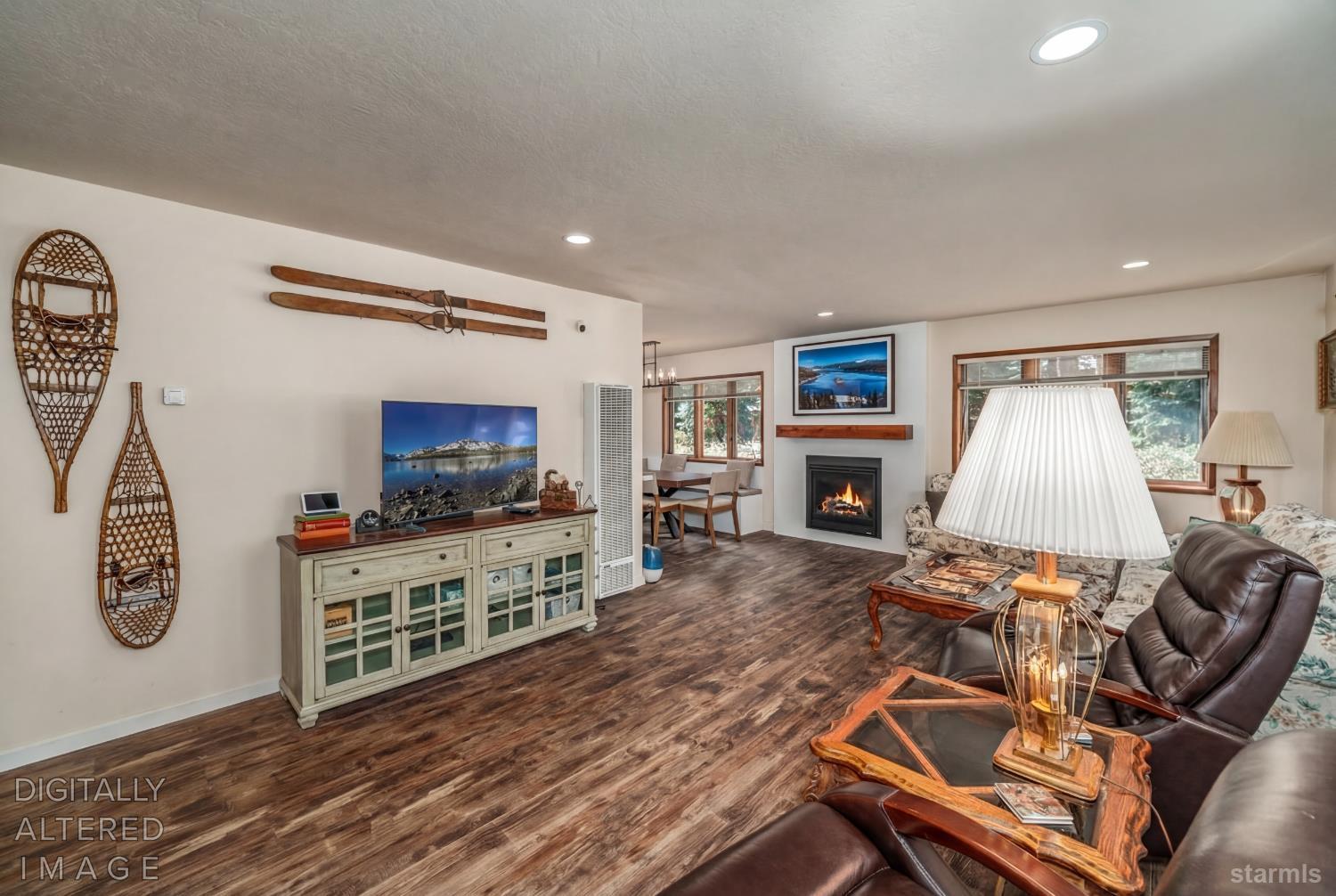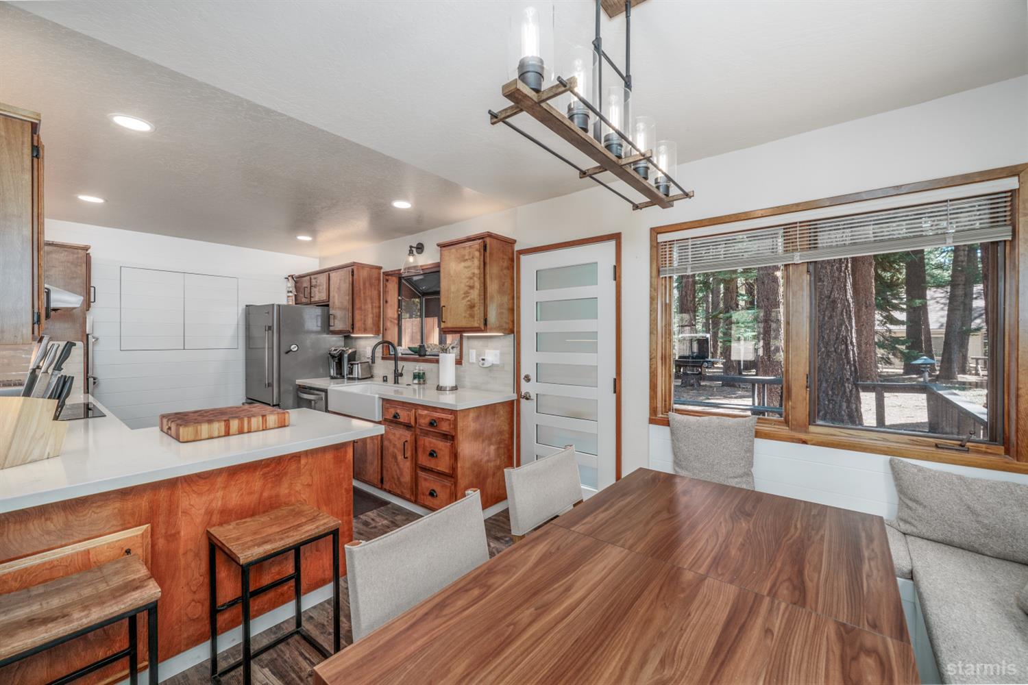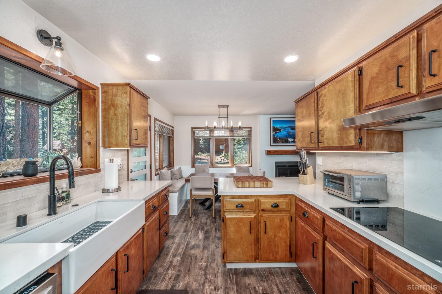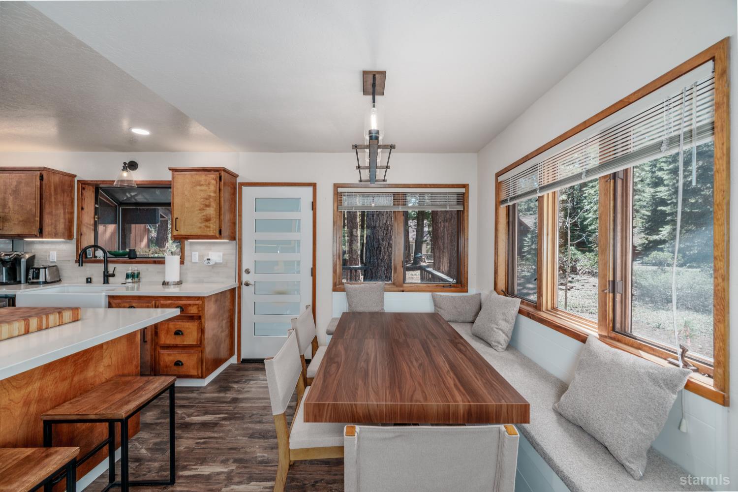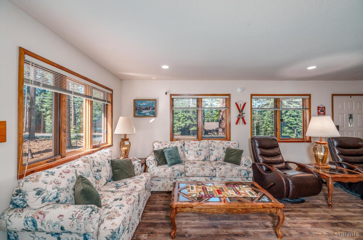 Set in the peaceful Country Club Estates neighborhood with conservancy land on both sides for added privacy, this recently upgraded home is ideal for a permanent family residence or Lake Tahoe getaway retreat. Multiple improvements are found throughout the home including newer flooring in the living area, kitchen, stairway, halls & baths as well as new dimmable/ wi-fi enabled lighting in all rooms.The living room area on the main level features wood-framed windows that let in the natural sunlight, a new thermostat controlled gas fireplace & mantle with a shiplap surrounding wall. Also on this level is the newly renovated kitchen with new countertops, shiplap wall with pantry access, an induction stovetop, farm sink, backsplash, refurbished cabinets and new hardware. The dining area allows for plenty of room for gathering around the kitchen table with banquette seating as well as additional bar seating.The lighted hallway stairs lead to the upper level with 4 bedrooms and 2 full baths. Both of the bathrooms have been recently remodeld with additional features including heated floors and hidden picture/ medicine cabinets. The primary bedroom is extra spacious and has it's own separate connecting entrance to the 2nd bath with a teak fold down seat and a custom steam shower.The ground level features a 2 car garage and a separate large crawl space with access from the back side of the house, allowing for plenty of storage. The garage leads to the laundry/ utility room with additional storage cabinets. Exterior amenities include remote controlled heated mats on the front porch entry stairs, gutter guards, heated roof cables, an electric bear deterrent system and a master water shut-off valve/ leak detection system that can be operated remotely and manually. Enjoy the open and naturally landscaped backyard with drip system sprinklers, neighboring conservancy lots and a spacious deck ideal for outdoor gatherings. Just a short distance to the Truckee River, Lake Tahoe beaches and ski resorts.Property to be sold furnished per inventory list. **A full list of the recent property improvements is attached on file.