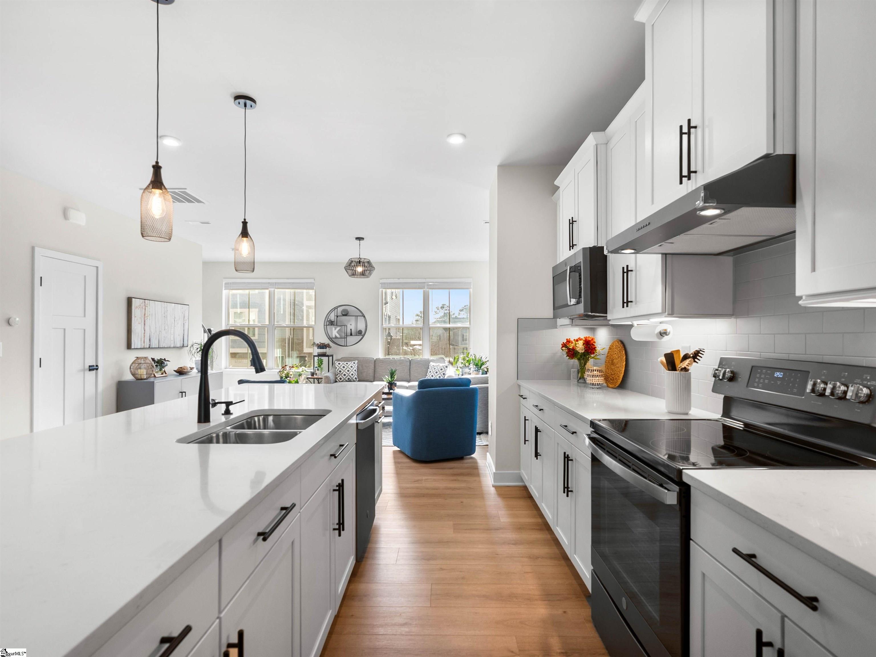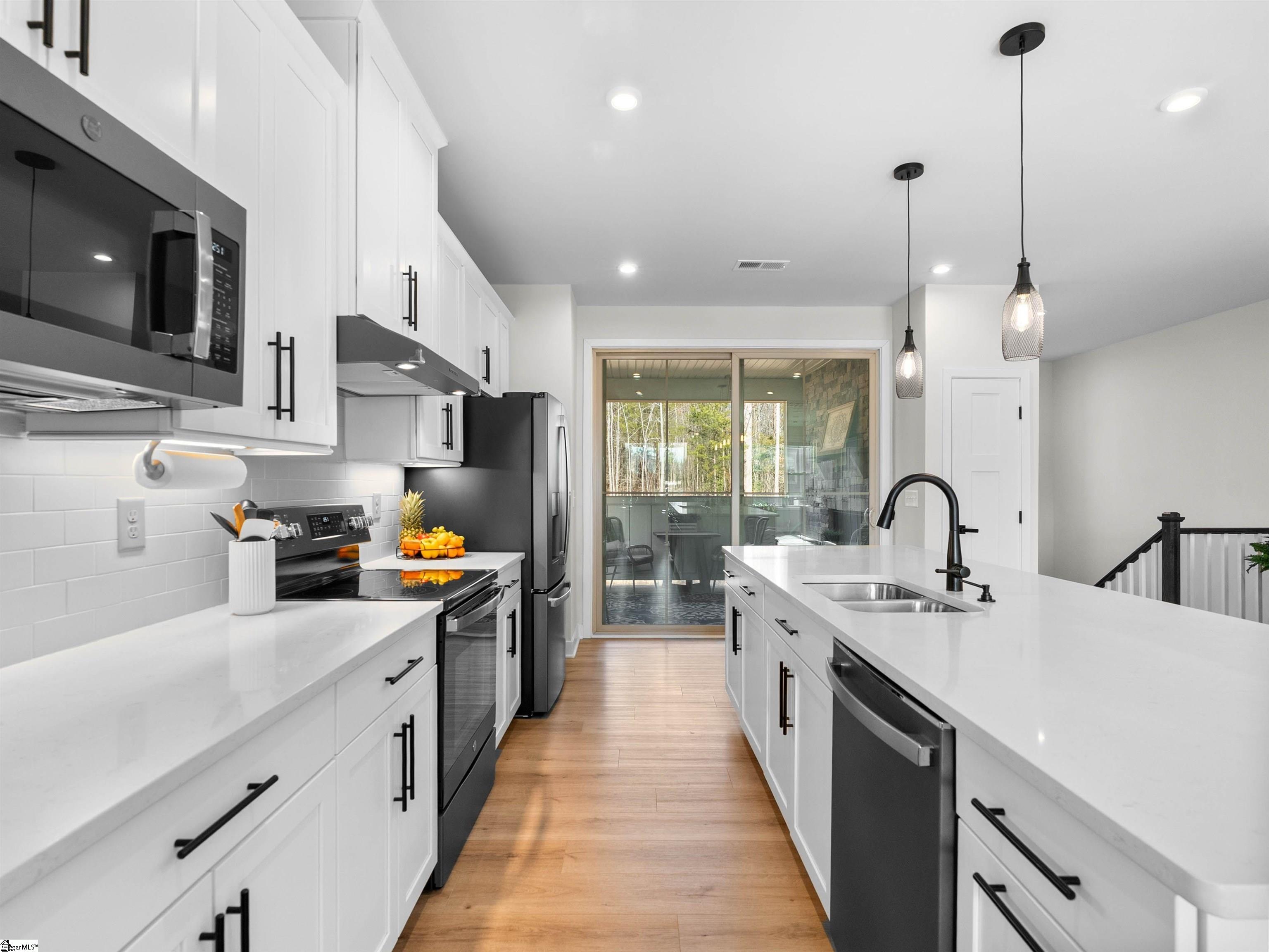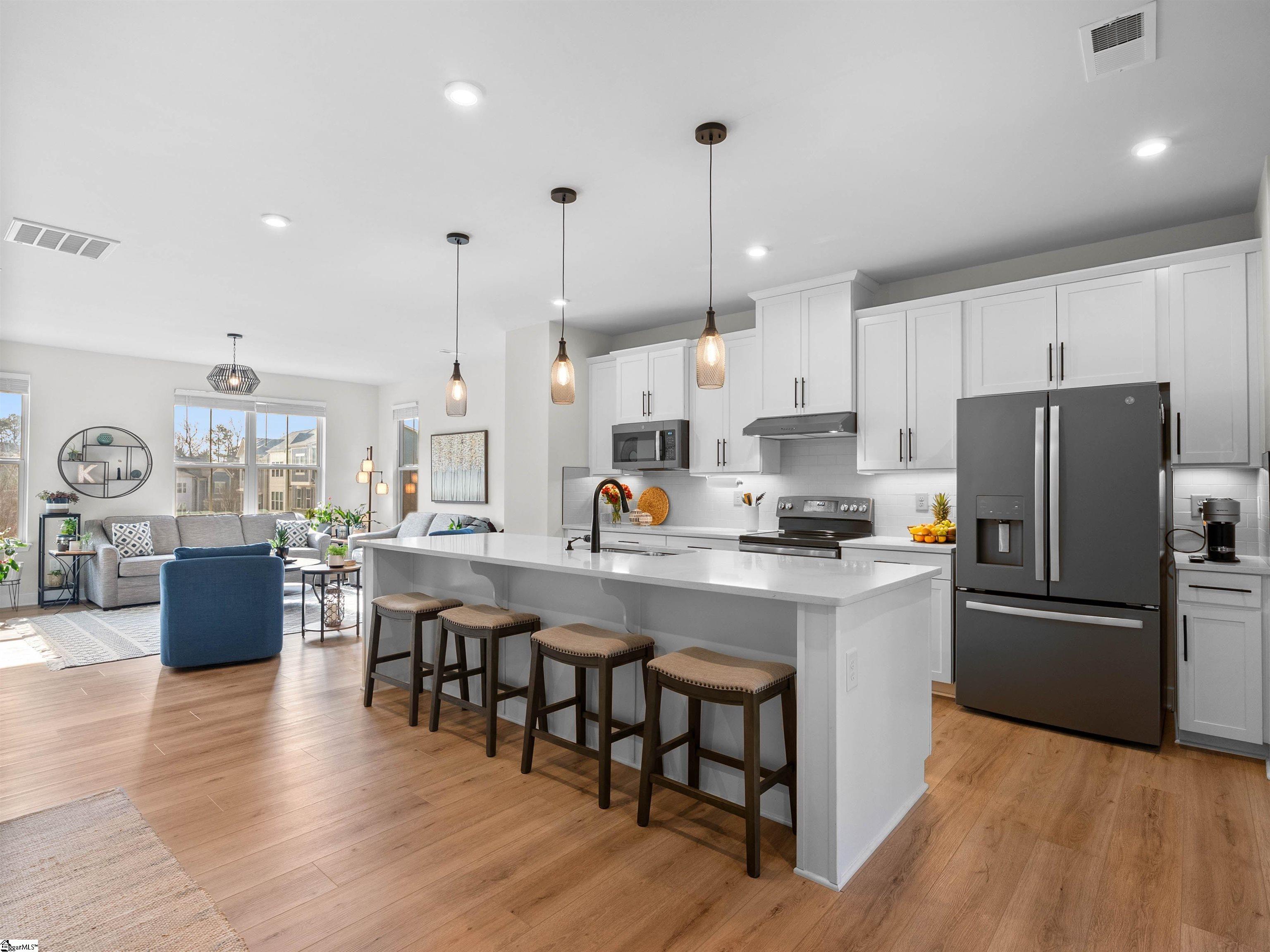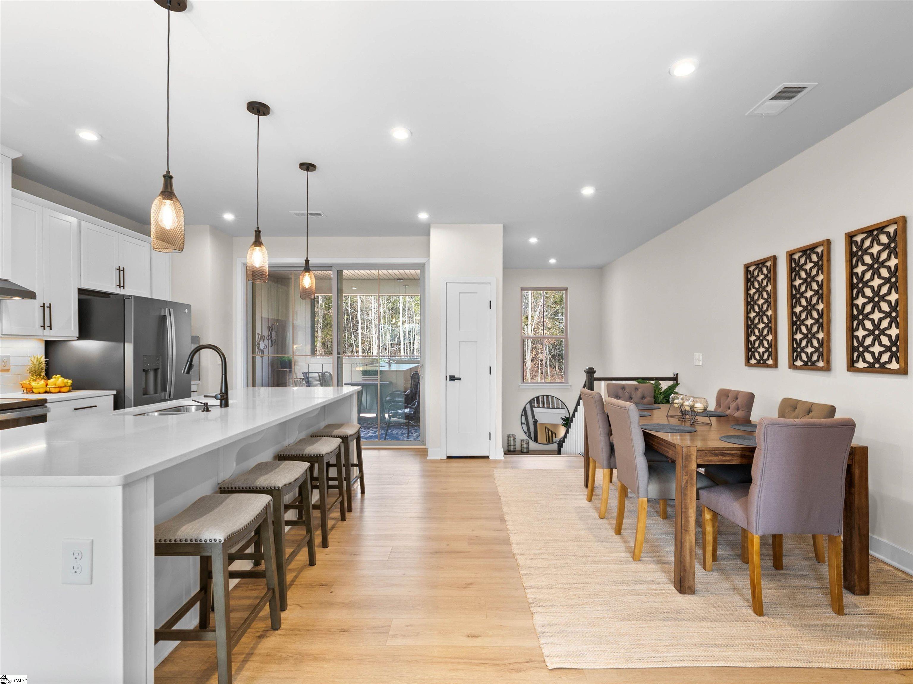 BUYER ALLOWANCE AVAILABLE WITH ACCEPTABLE CONTRACT TERMS! Live more and maintain less in this stunning end-unit luxury townhome located in the highly desirable Copper Run community. Built in 2022 and thoughtfully upgraded, this better than new home is tucked against peaceful wooded views and offers a true lock-and-leave lifestyle where exterior and yard maintenance are handled for you so your weekends are spent relaxing, not working. Just minutes from Hollingsworth Park, the Swamp Rabbit Trail, Verdae amenities, top-rated schools, Downtown Greenville, I-385, shopping, dining, and the Greenville-Spartanburg Airport, this location perfectly blends convenience with an exceptional lifestyle. Offering over 2,200 square feet of beautifully designed living space, this home features three bedrooms, two full baths, and two half baths, with upscale finishes throughout. The bright, open main level is filled with natural light and enhanced by upgraded LVP flooring, creating a warm and inviting atmosphere ideal for both everyday living and entertaining. The chef's kitchen serves as the heart of the home, showcasing quartz countertops, an oversized quartz island with seating for four, upgraded Slate Gray GE appliances, a ceramic tile backsplash, under-cabinet lighting, and upgraded white cabinetry with crown molding. A spacious dining area flows seamlessly into the great room, making it perfect for hosting gatherings, celebrating milestones, or enjoying quiet evenings at home. Just off the kitchen, the main level opens to a beautifully enclosed covered porch one of the home's most special features and a true extension of the living space. Designed for year-round enjoyment, this expanded outdoor retreat features a stacked stone gas fireplace with mantel and overlooks serene wooded views. Whether it's morning coffee, cozy nights by the fire, or effortless entertaining with friends, this porch is a space you'll truly fall in love with. Upstairs, the primary suite offers a peaceful retreat with a tray ceiling, large walk-in closet, dual sinks with quartz countertops, a tiled shower with seating, and a linen closet. Two additional bedrooms, a full hall bath, and a conveniently located laundry room complete the upper level, offering comfort and functionality for everyday living. The lower entry-level floor adds incredible flexibility with a versatile space that easily adapts to your lifestyle - perfect for a home office, gym, playroom, studio, or media room. This level also includes a half bath, multiple storage closets with extensive under-stair storage, and access to the private backyard and extended partially covered patio, creating yet another inviting space to unwind. Additional upgrades throughout the home include a finished two-car garage with an extra storage room and utility sink, custom blinds, an extended covered porch, an upgraded hardware package, and oak staircases, all thoughtfully selected to enhance both style and function. Beyond the home itself, residents of Copper Run enjoy a truly low-maintenance lifestyle with yard and exterior maintenance included, along with community features such as a shared fire pit and easy access to Verdae trails, Legacy Park, the YMCA, nearby restaurants, and shopping. Impeccably maintained and completely move-in ready, this Copper Run townhome offers the perfect blend of luxury, location, and low-maintenance living allowing you to focus on what matters most and enjoy life to the fullest. Welcome home!