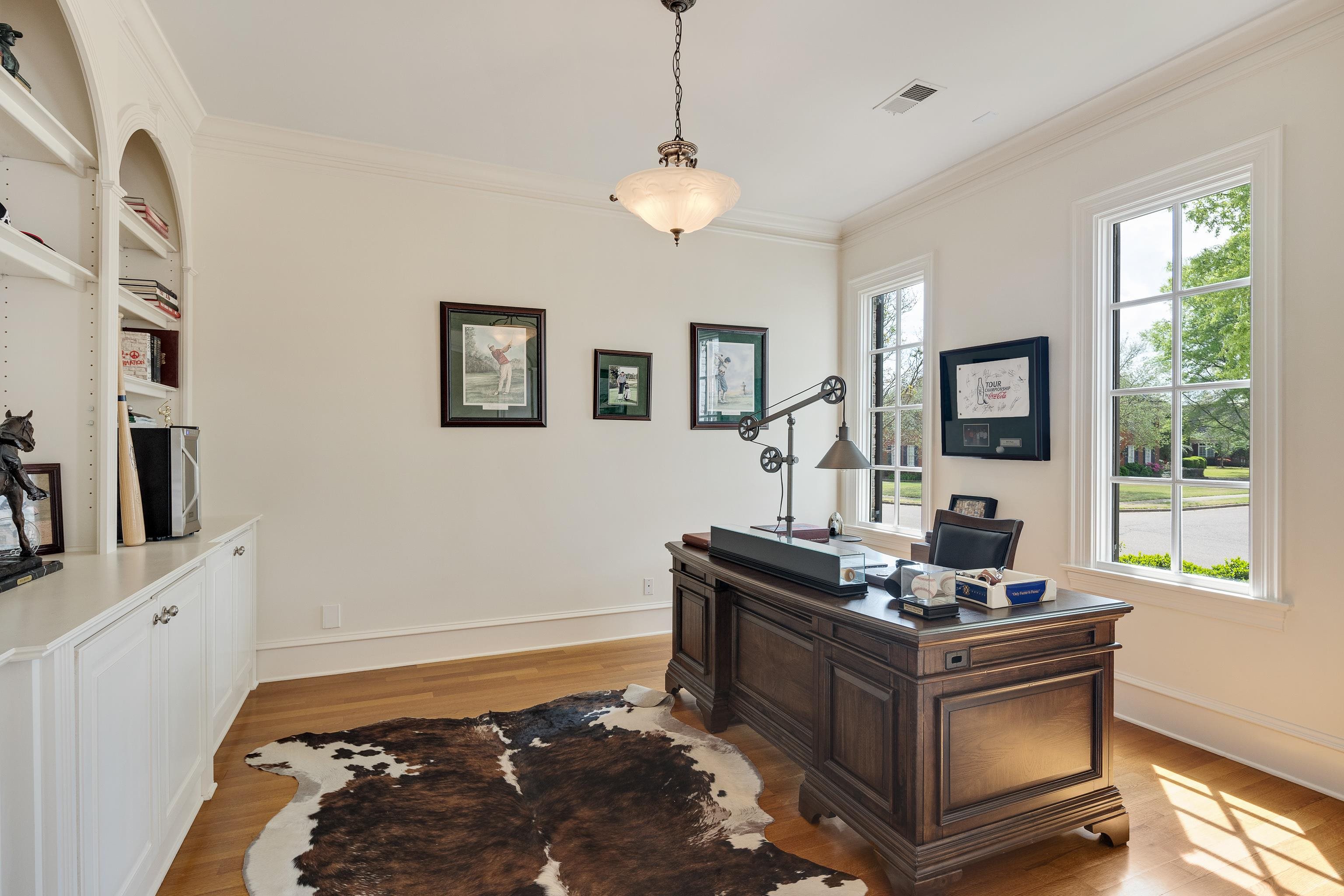 Estate-style living in sought-after Bedford Plantation, 3134 Kenney Dr offers a refined setting and an elegant, spacious layout. Backing to Ridgeway Country Club, this 5,533-square-foot home features 6 bedrooms, 4.5 baths, a bonus room, and a downstairs office with built-in shelving. Two bedrooms are located on the main level, offering flexibility for guests or everyday convenience. A circle drive and 3-car garage create a polished arrival, while fresh interior paint adds a crisp, updated feel throughout. Recent improvements include two new water heaters in 2026 and a new dishwasher in 2025. Enjoy the private backyard with a covered patio, along with a location just under 5 miles from both downtown Germantown and Collierville Town Square. Fresh Market, Whole Foods, Trader Joe's, Saddle Creek, dining, sports bars, and medical centers are all just minutes away.