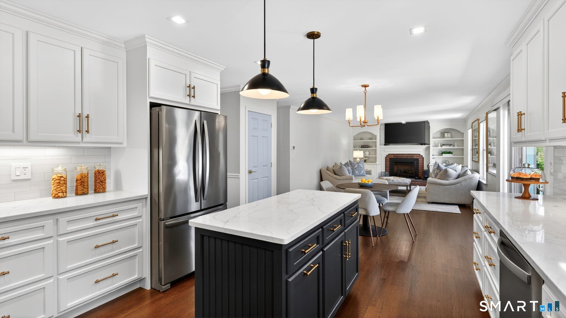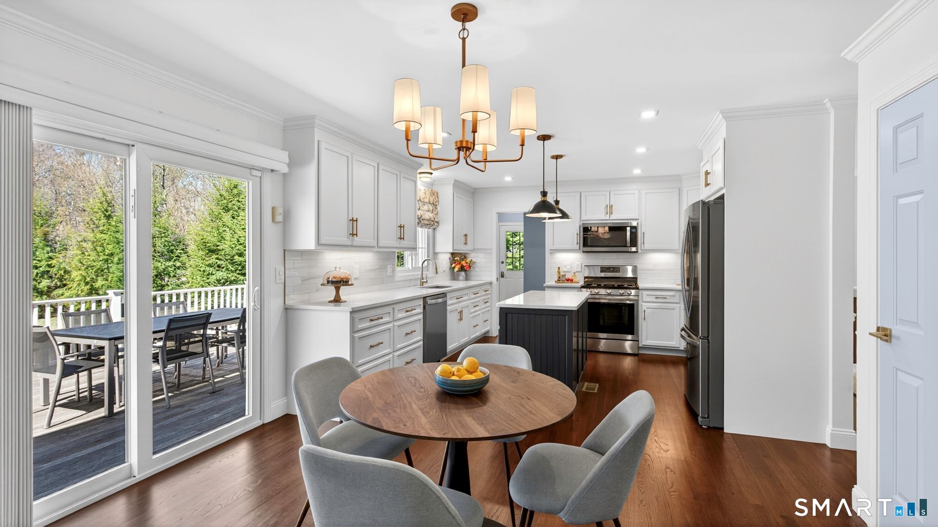 Experience refined living in this beautifully updated 4 bedroom/2.5 bathroom Colonial thoughtfully enhanced with high end finishes blending sophistication and functionality. A 2025 stunning kitchen renovation showcases quartz countertops, custom cabinetry, SS appliances, and chic lighting design. A sun-filled family room creates the ideal space for gathering; custom built-ins and a cozy gas fireplace afford character and comfort. A stylish powder room, gracious formal living room and dining room with refinished hardwood floors offer warmth and continuity throughout the main level. Sliding doors lead to an impressive 23'x14' Ipe deck providing seamless indoor/outdoor living perfect for entertaining and relaxing. Adjacent to the kitchen is a versatile mudroom with washer and dryer, ample storage and direct backyard access. Retreat upstairs to the generously sized primary suite with vaulted ceiling, walk-in closet, and ensuite bath with double sinks. 3 additional spacious bedrooms share a well-appointed full bath. The unfinished lower level offers abundant storage with future possibilities. Impeccably prepared and maintained with warm and attractive neutral tones throughout, this move in ready home offers newer energy efficient windows, updated flooring and carpet. Ideally set on a private, tree lined lot backing to Avon Land Trust property, the outdoor space offers both tranquility and plenty of room for family recreation or future outdoor enhancements.