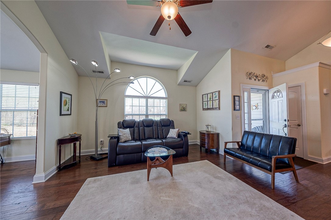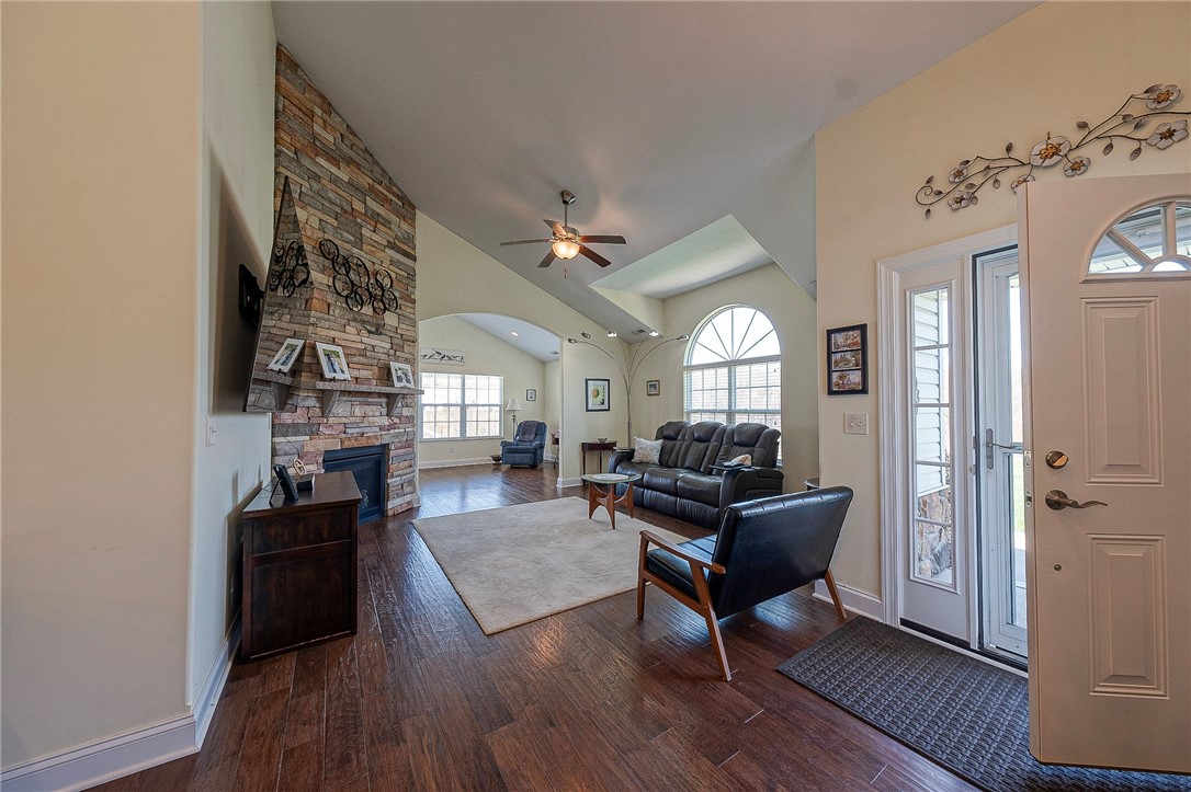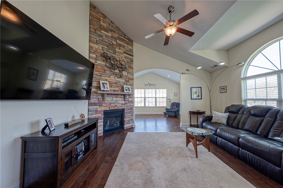 WELCOME TO 364 SADDLEBROOK ROAD IN THE HUNT CLUB AT GRANDVIEW ESTATES ~ Enjoy one of the best views of the expansive, flat backyard - perfect for relaxing while taking in the peaceful natural surroundings ~ Step into this move-in-ready home featuring a stunning floor-to-ceiling stone gas fireplace that serves as a beautiful focal point ~ Gorgeous hardwood floors run throughout, adding warmth and elegance ~ The bright, inviting kitchen boasts white custom cabinetry and a spacious island, ideal for cooking and entertaining ~ The primary bedroom offers a cathedral ceiling and a large walk-in closet ~ The bathroom is thoughtfully updated with a custom ceramic walk-in shower and sleek glass sliding doors ~ Unwind in the bright sunroom, a perfect haven for plant enthusiasts and peaceful mornings ~ Two additional bedrooms provide comfortable space for family or guests ~ Enjoy the club house and pool with friends and family get togethers ~ Keep in shape at the fitness room ~ Capitalization fee at closing 6 x $289= $1734