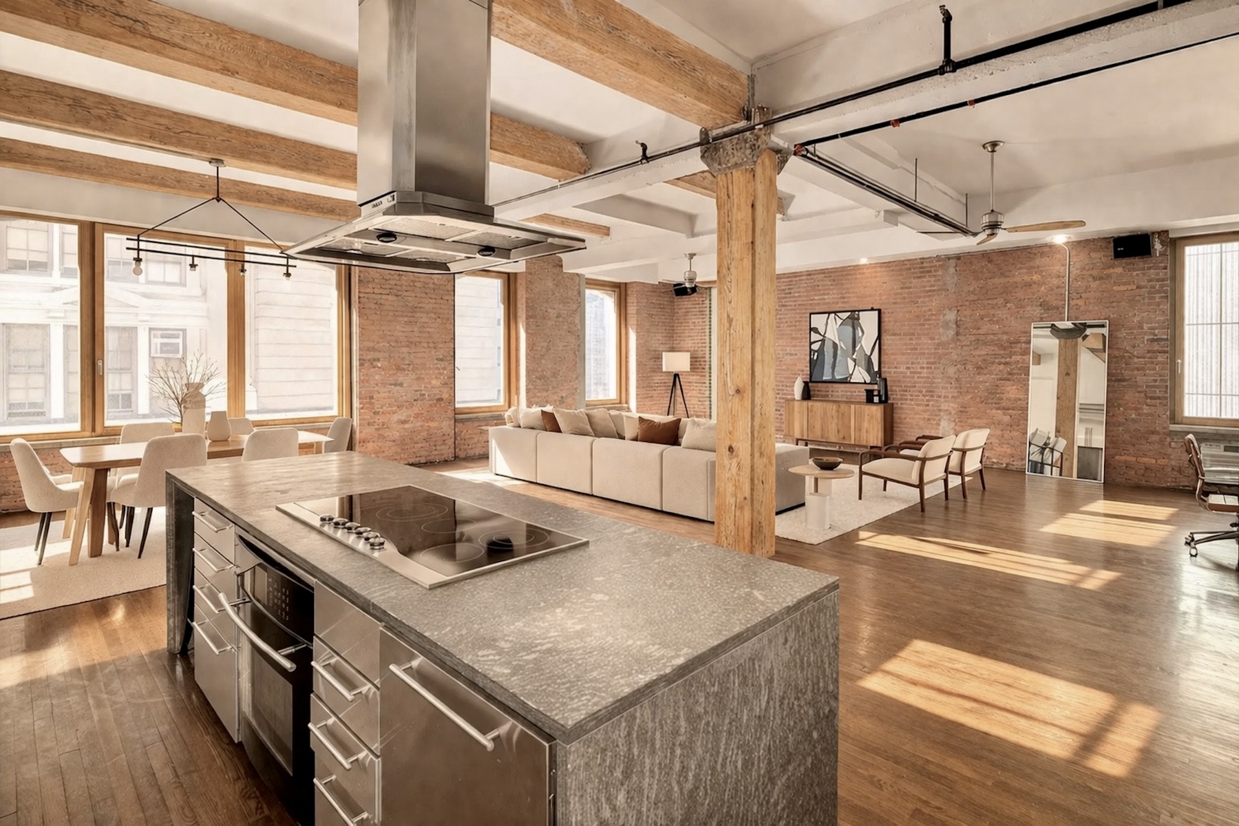 Showings are permitted Wednesday through Friday, 10:00 AM to 4:00 PM. Located in a prime SoHo setting, this authentic corner loft offers nearly 2,200 square feet of open living space with the scale, light, and character that are increasingly hard to find. Approximately 11.5-foot ceilings, oversized south- and west-facing windows, exposed brick, and wood-beamed ceilings define the home’s unmistakable downtown appeal. A large open living and dining area is anchored by a stainless steel kitchen, while the layout also includes an inviting entry foyer, a spacious bedroom suite with a walk-in closet and en suite bath, and exceptional flexibility for the way people live and work today. Bold, airy, and full of character, Residence 4C is true loft living in one of SoHo’s best locations. 145 Sixth Avenue is a prewar condominium with part-time doorman service, ideally located in a desirable West SoHo setting with immediate access to multiple subway lines (A/C/E, 1/2, N/Q/R/W), as well as neighborhood conveniences including Trader Joe’s just around the corner. Photos are virtually staged.