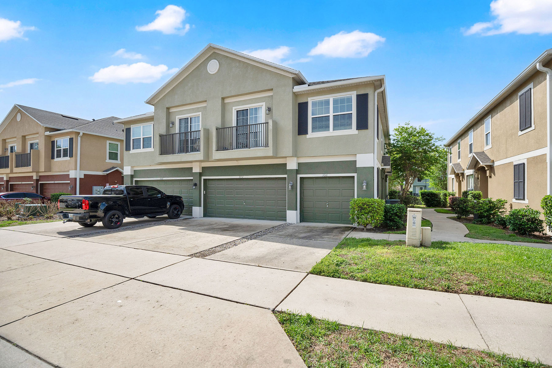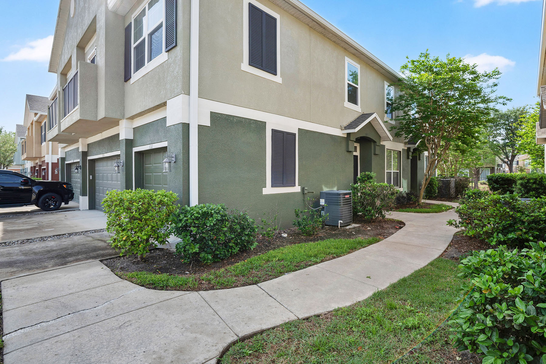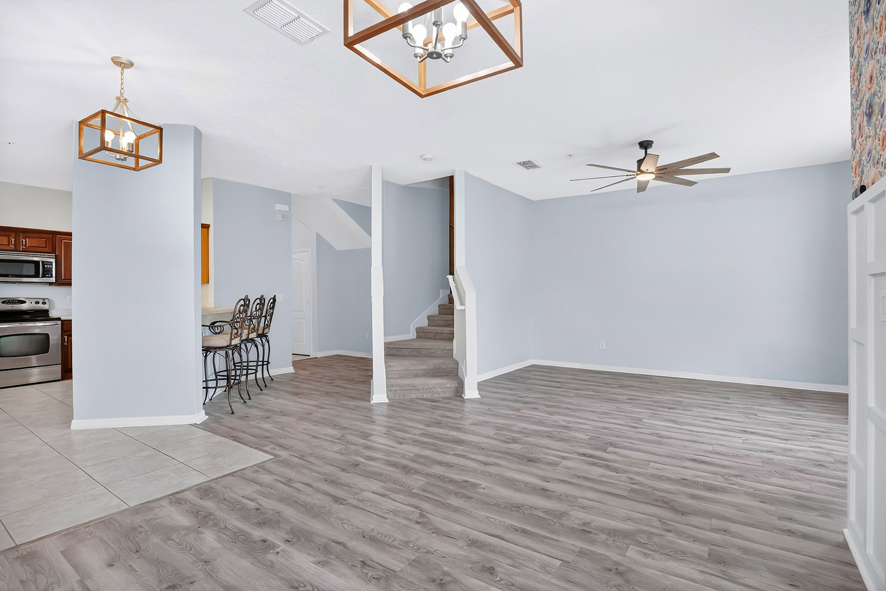Welcome to this beautifully updated townhome-style condominium in Flagship Park, located right in the heart of everything you need while still offering a quiet, private setting. This three-bedroom, 2.5-bath unit features a well-designed floor plan with a full two-car garage providing you direct private entry inside with keyless garage entry, giving it a true townhome-style layout. Inside, the home is filled with natural light, creating a bright and comfortable living space. The kitchen features stainless steel appliances (dishwasher 2022), a pantry closet to hold all your dry goods, and a convenient breakfast bar with seating. The large window brightens the open kitchen and overlooks the great room for your main living and dining room spaces. Just off the kitchen, there is a small flex space that would make a great corner work/study area or additional storage space. It could also be a great spot for all your pet's needs. The dining area features a custom board and batten accent wall with floral wallpaper and a new light fixture, giving a stylish, modern touch. Lots of updates include newer stairwell carpet, new 10-millimeter laminate wood flooring, a fully renovated primary bathroom (2022) with dual sinks set into a beautiful marble-top vanity, a newer roof (2023), updated lighting fixtures and modern ceiling fans (2023). In addition, the home is equipped with an owned security system, doorbell camera, garage camera and fire sprinklers for added safety and peace of mind. Sliding glass doors lead to an outdoor sitting area that overlooks the water, offering a serene place to kick back and relax. Enjoy a peaceful setting every day with no rear neighbors and a beautiful pond view. The home also offers ample storage with a dedicated laundry room featuring shelving and an additional nook. The community features a pool and a small picnic area. The condo fee includes water, cable, internet, lawn care, exterior pest control, sewer and trash, offering low-maintenance living. Near SR 417, Interstate 4, tons of shopping, dining and major hospitals, this community makes it so easy to get anywhere you need to go while enjoying being tucked away from it all.