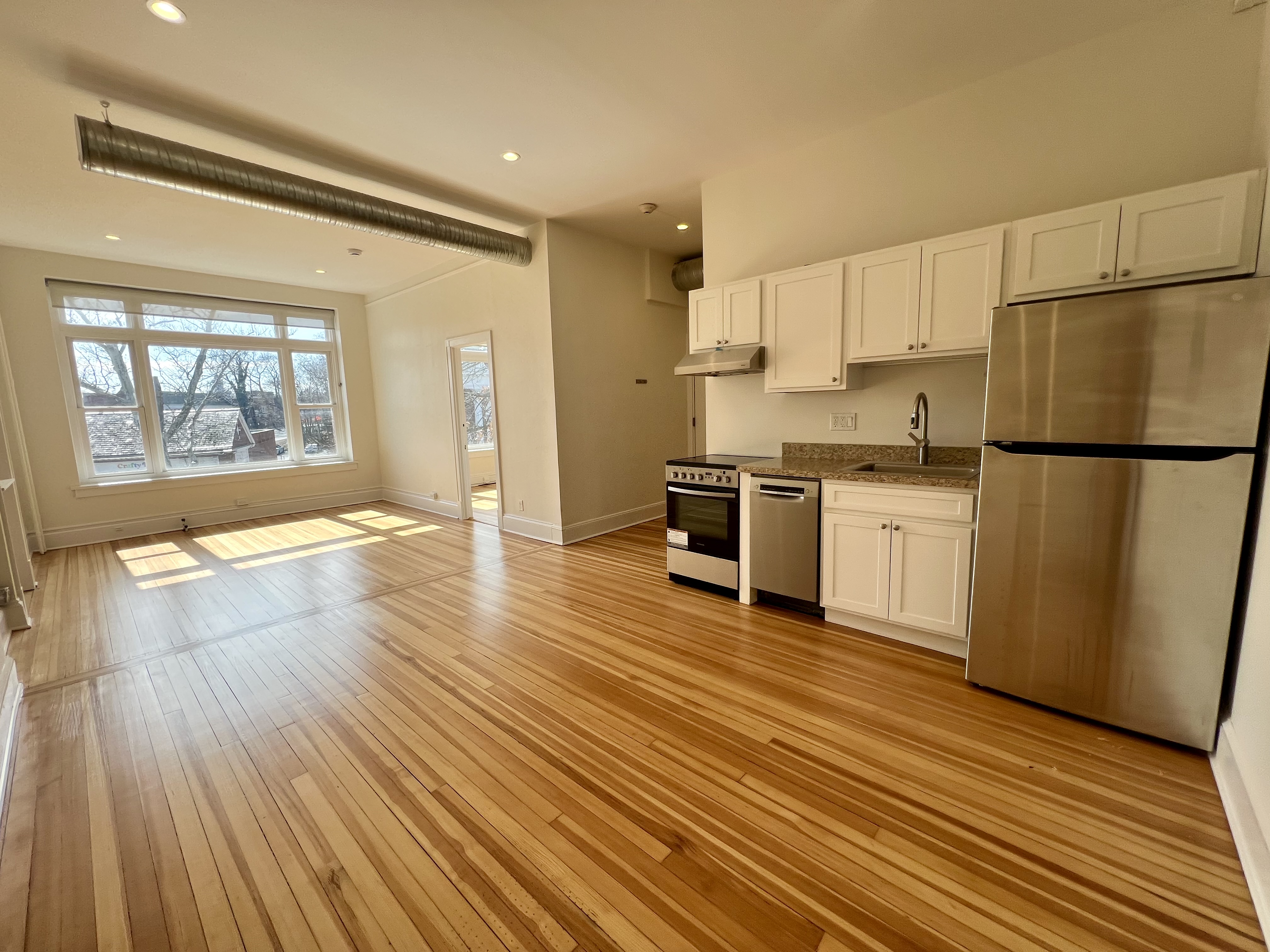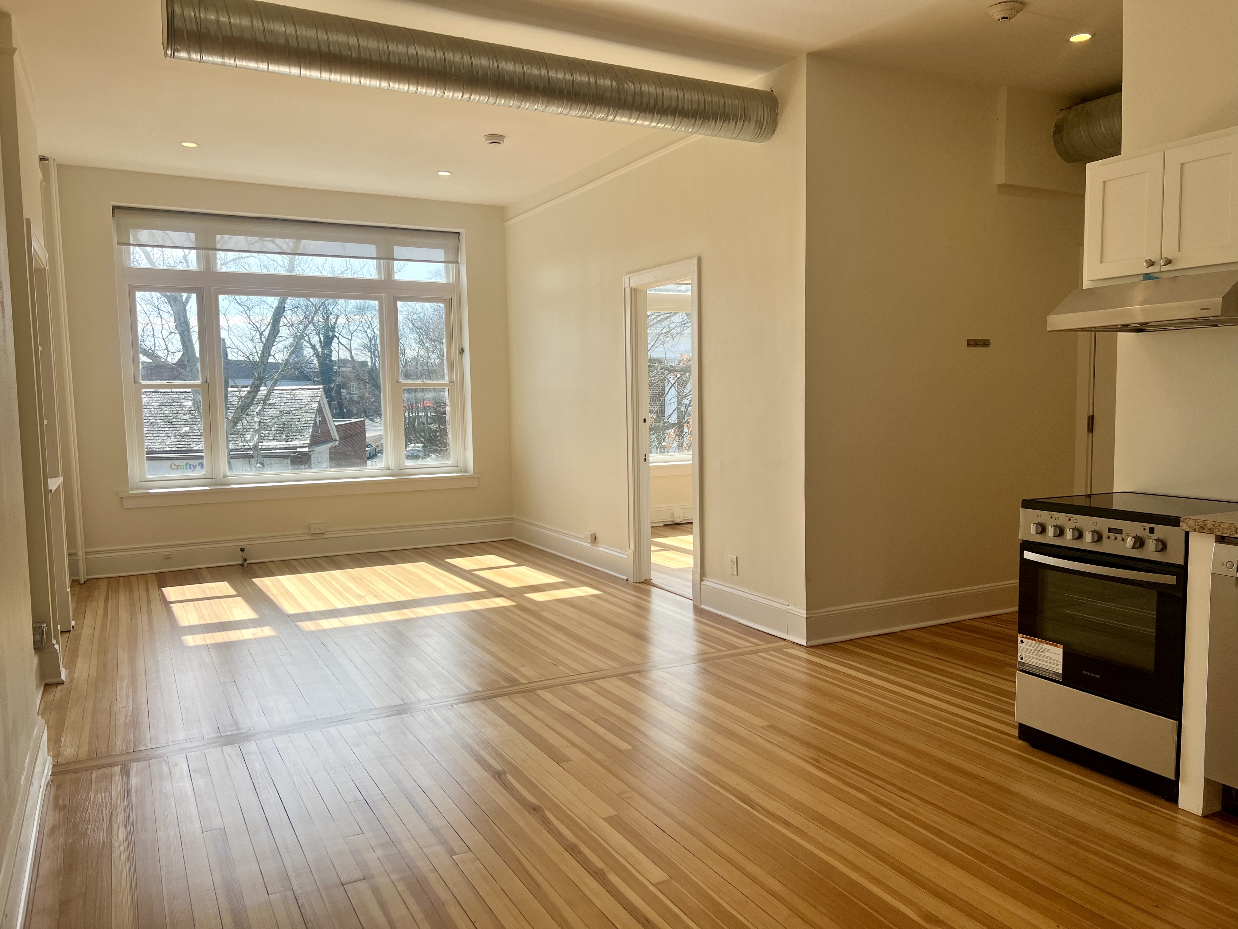 **Receive up to one month free when you lease in April** Gorgeous one-bedroom apartment on Main Street in a landmark, boutique building (one of only ten units). Located in the heart of New Canaan Village, it is ideal for a highly walkable lifestyle with easy access to shops, restaurants, and the train for a Grand Central commute. The residence blends old-world charm (1881) with luxury new construction (2023 renovation). Features include high ceilings, hardwood floors, and a modern, open-concept kitchen with new appliances (range, dishwasher, refrigerator). Enjoy new windows, a separate heating/cooling system with your own thermostat, and a spectacular common roof deck with seating and chaise lounges. No on-premise parking; street parking available, and tenants can purchase annual passes for the municipal lot one block away. Laundry room in Building to be added by May 15.