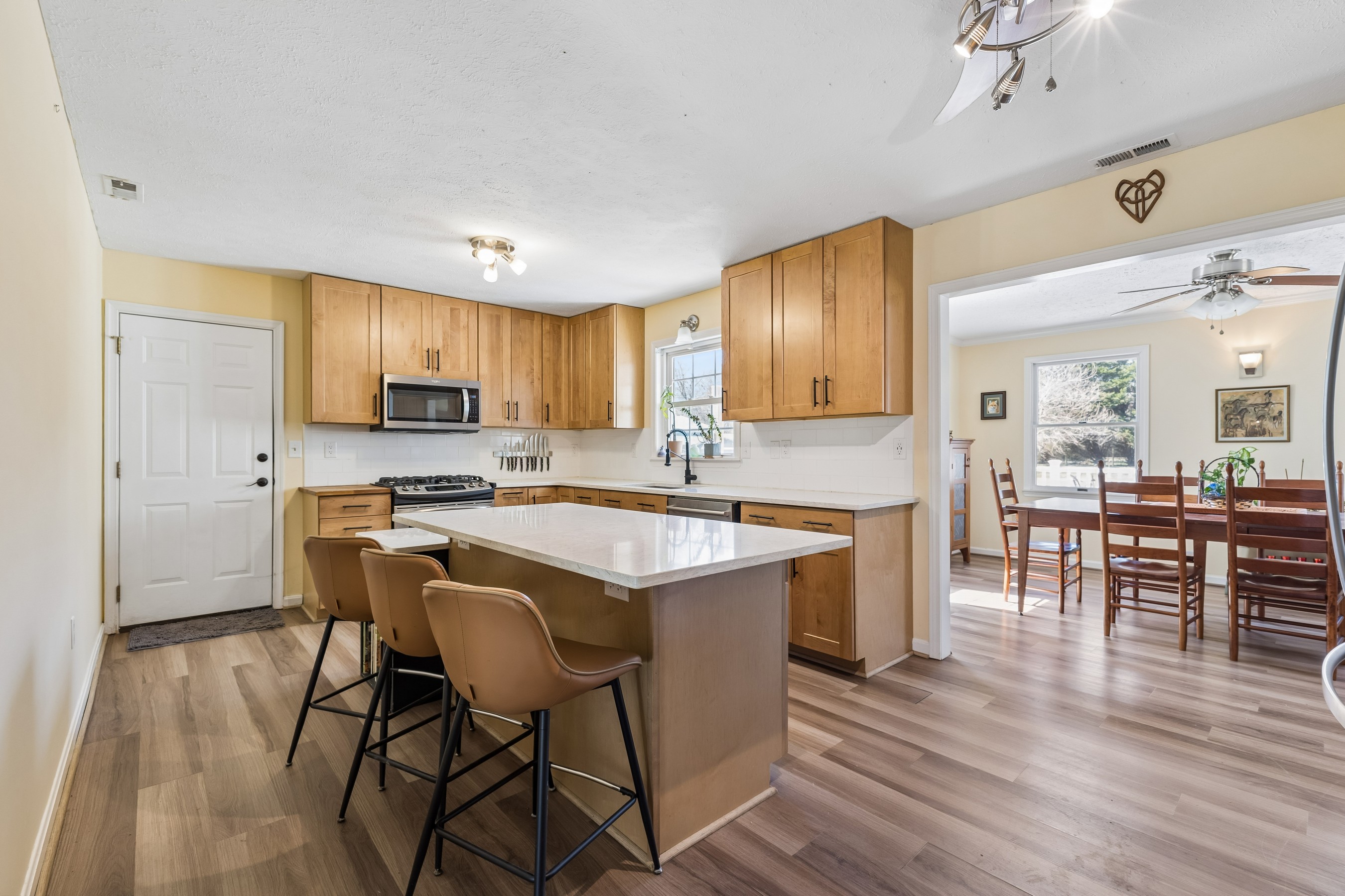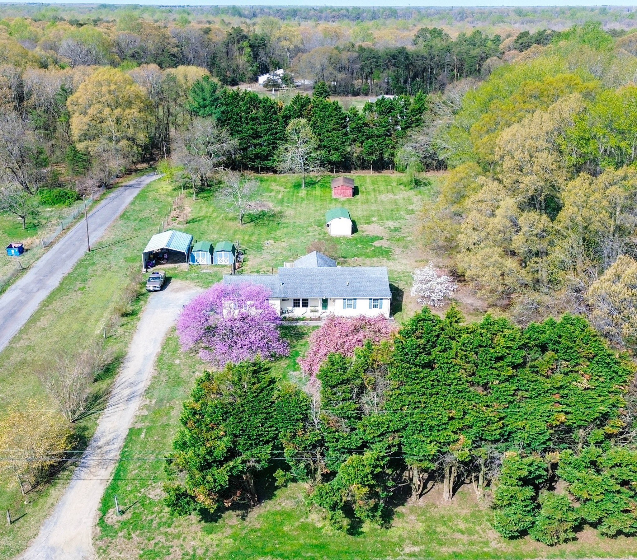 There's a feeling you get when you enter a home that is absolutely pristine, thoughtfully and intentionally updated and ready for you to move and settle in tomorrow! It's a feeling of levity...of moving into this space that feels to have been curated just for you! The improvements have been designed with timeless form and function in mind such as: handsome and durable LVP flooring throughout, beautifully updated baths and a new gorgeous, expanded gourmet kitchen specially designed for the avid home chef! This epicurean kitchen boasts ample maple cabinetry with pull-out drawers and plenty of pantry space, stainless steel appliances plus abundant countertop space for all your sous chef and baking needs (note the intentionally-designed lowered countertop for baking!) - or entertain with ease with hors d'oeuvres arranged across the large center island while your guests gather around! Additional improvements include a living room pellet stove to keep you toasty on cold winter nights, mini splits for customizable climate control in every room, tankless water heater, water filtration system and the piece de resistance - an expansive composite deck upon which you can dine, entertain or just decompress, taking in the sounds of the birds and admiring the stunning flowering trees around you! Outbuildings/sheds will hold your all gardening, outdoor sports and lawn maintenance equipment so you can actually park in the newly insulated and drywalled 2-car garage. 15204 Jarrell Rd is one of those properties that you look forward to retiring to at the end of each day - your perfect country respite!