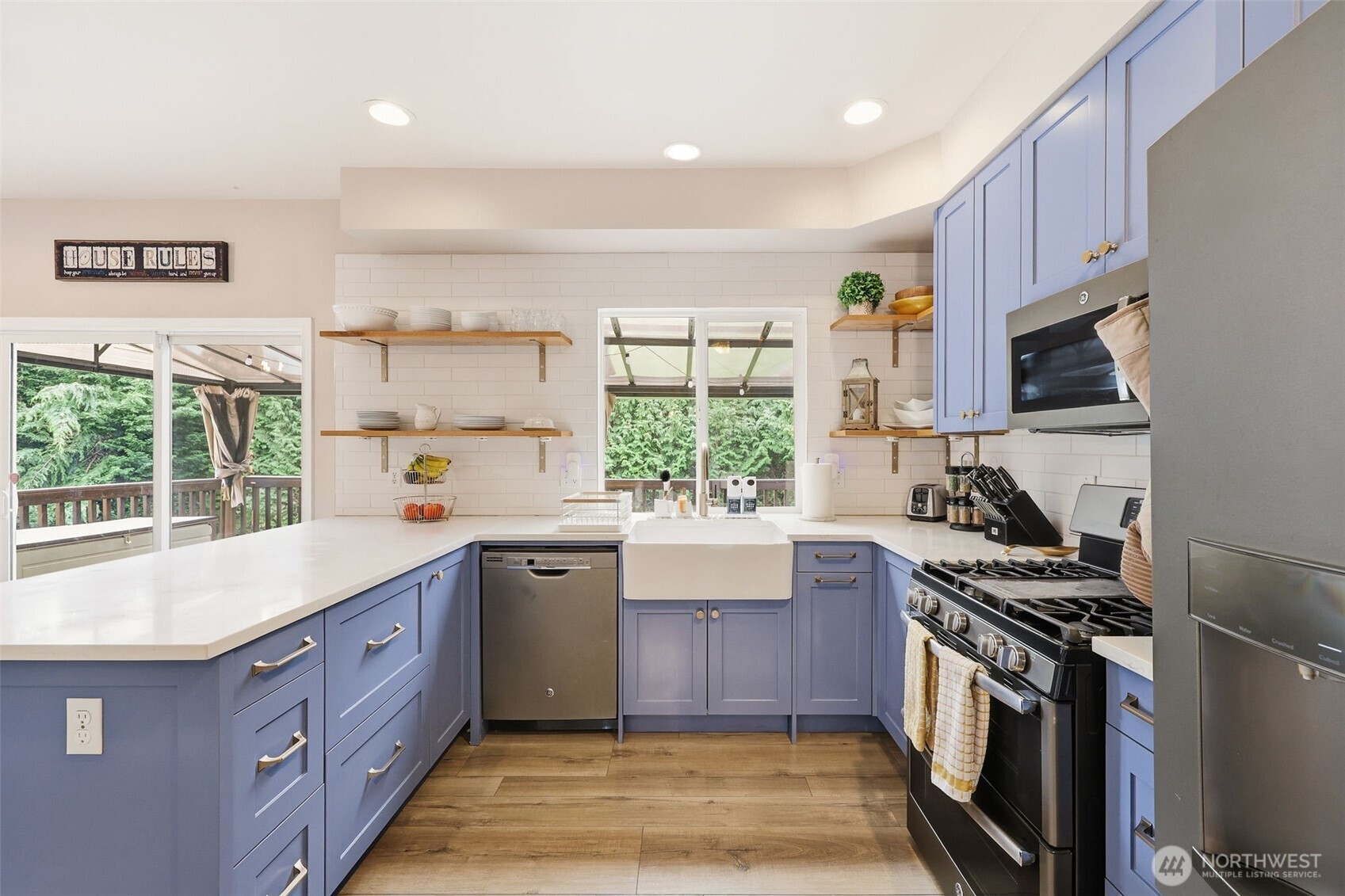 Beautifully updated home on a spacious 10,000 sq ft lot near Lake Geneva, featuring a private 1-bedroom, 1-bath mother-in-law suite with separate entrance - ideal for multi-generational living or rental income. This 5-bedroom, 3.5-bath home is thoughtfully renovated and meticulously maintained, with a recently installed new roof and designer finishes throughout. The fully remodeled kitchen offers quartz countertops, stainless steel appliances, and durable LVP flooring, flowing into a bright, open living area. An oversized deck provides the perfect space for summer BBQs and entertaining. Upstairs includes 4 bedrooms, including the primary suite, plus a convenient hallway bath. The lower-level MIL suite adds flexibility and privacy. Complete with a 2-car garage, RV parking, and a prime location just minutes to I-5 and Hwy 167.