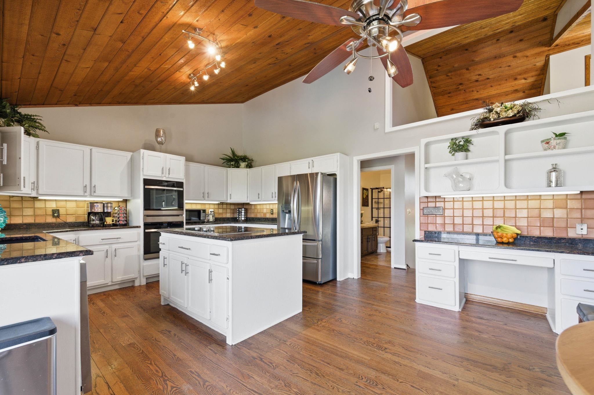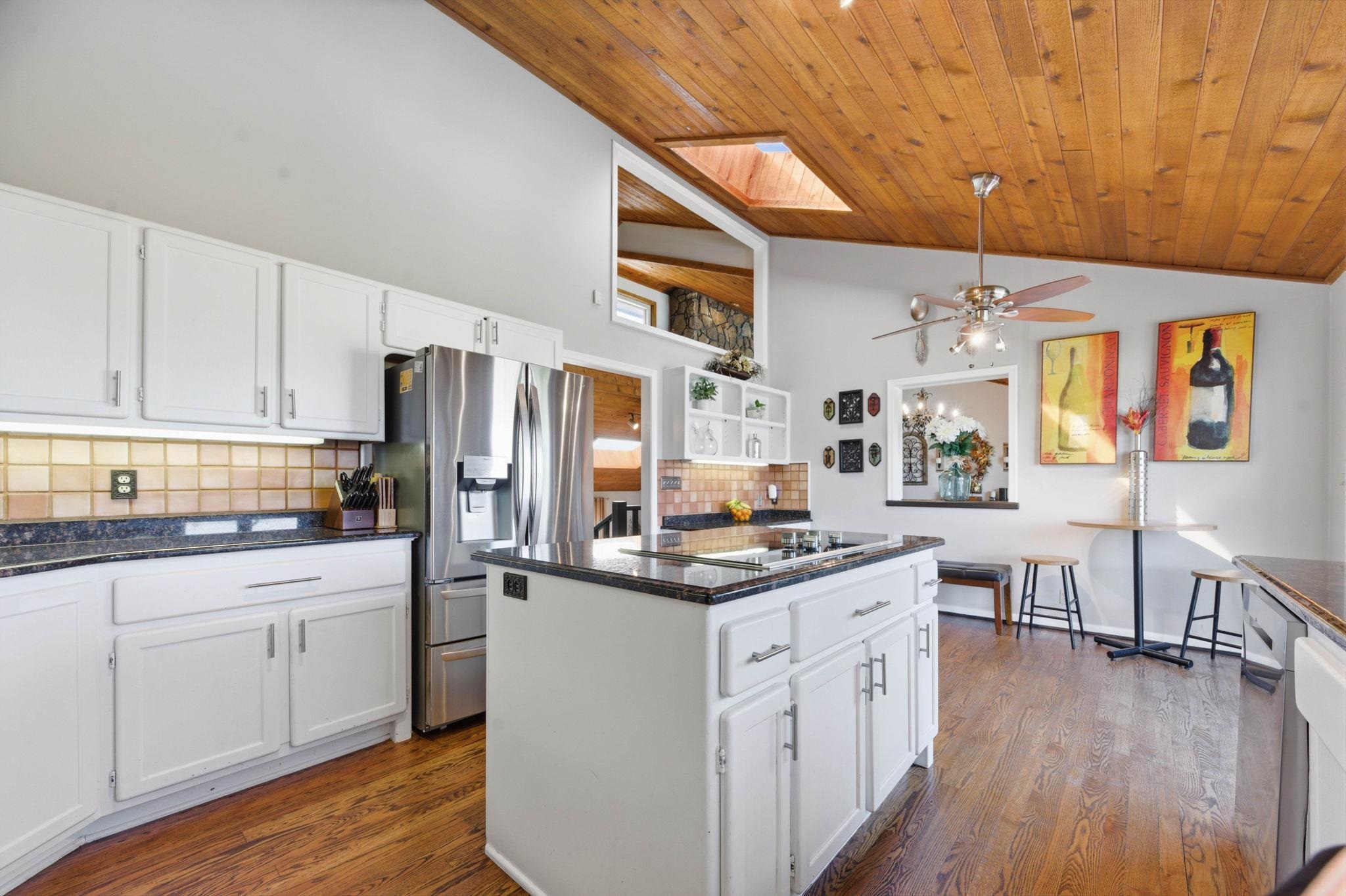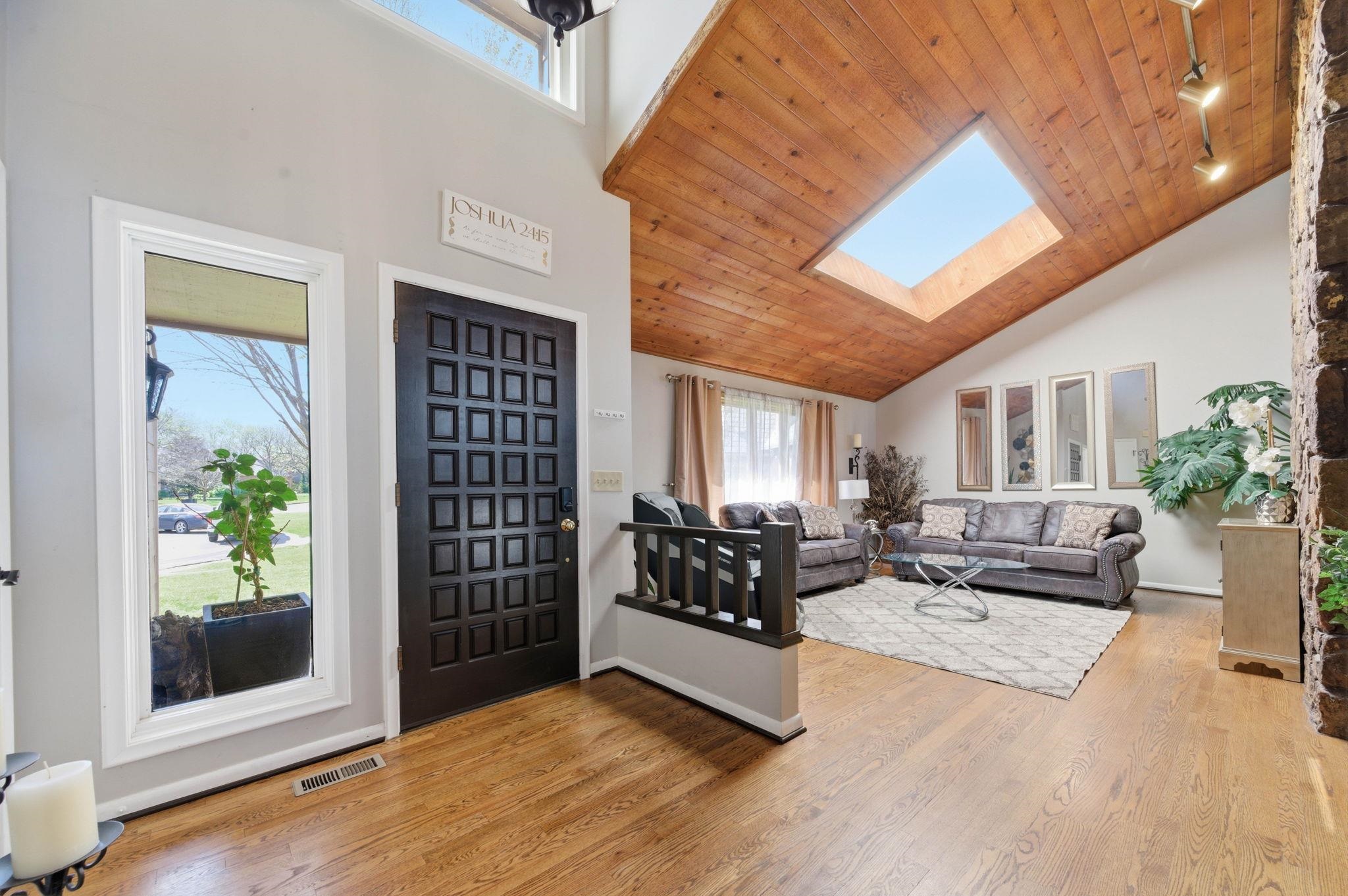 Backyard sunsets and golf course views set the tone for this standout property backing directly to Tallgrass Golf Course. Enjoy your own private retreat with an in-ground pool, raised deck, and newly fenced yard, creating a space designed for both relaxation and entertaining. Inside, the home makes an immediate impression with a dramatic floor-to-ceiling fireplace that extends from the main level to the third story, anchoring the open-concept living area. Natural light fills the space, highlighting vaulted ceilings and a layout that flows seamlessly from the living room to the kitchen and dining areas. The kitchen features granite countertops, vaulted ceilings, and an eat-in dining space, along with a separate formal dining room ideal for hosting. Just off the main living area, the deck overlooks the backyard and pool, making indoor-outdoor living effortless. The primary suite is a true retreat with vaulted ceilings, its own private sitting area, fireplace, walk-in closet, and an en suite bath complete with a separate shower and jacuzzi tub. Upstairs, you'll find 2 additional bedrooms, 1 with two closets and a spacious loft area, offering flexibility for a second living space, office, or creative area. The 4th bedroom is on the lower level. Recent updates include a freshly painted interior, new backyard fencing, tree removal to open up the lot, and professionally installed foundation piers for long-term stability. Additional highlights include abundant storage throughout and a large driveway. This home combines architectural character, functional space, and a premier golf course setting - ready for its next owner to enjoy.