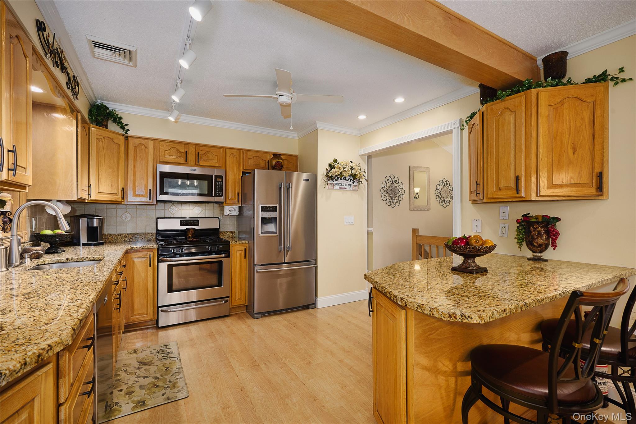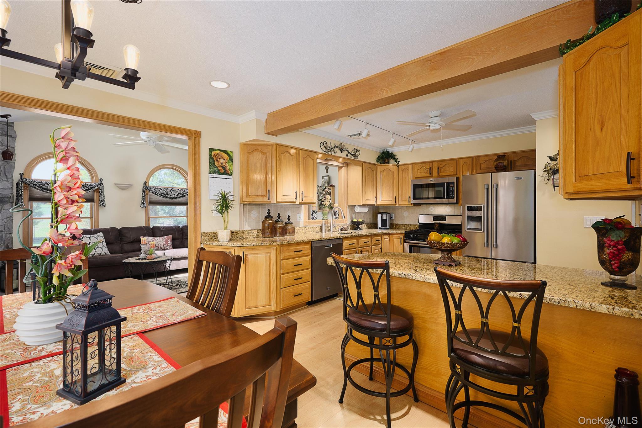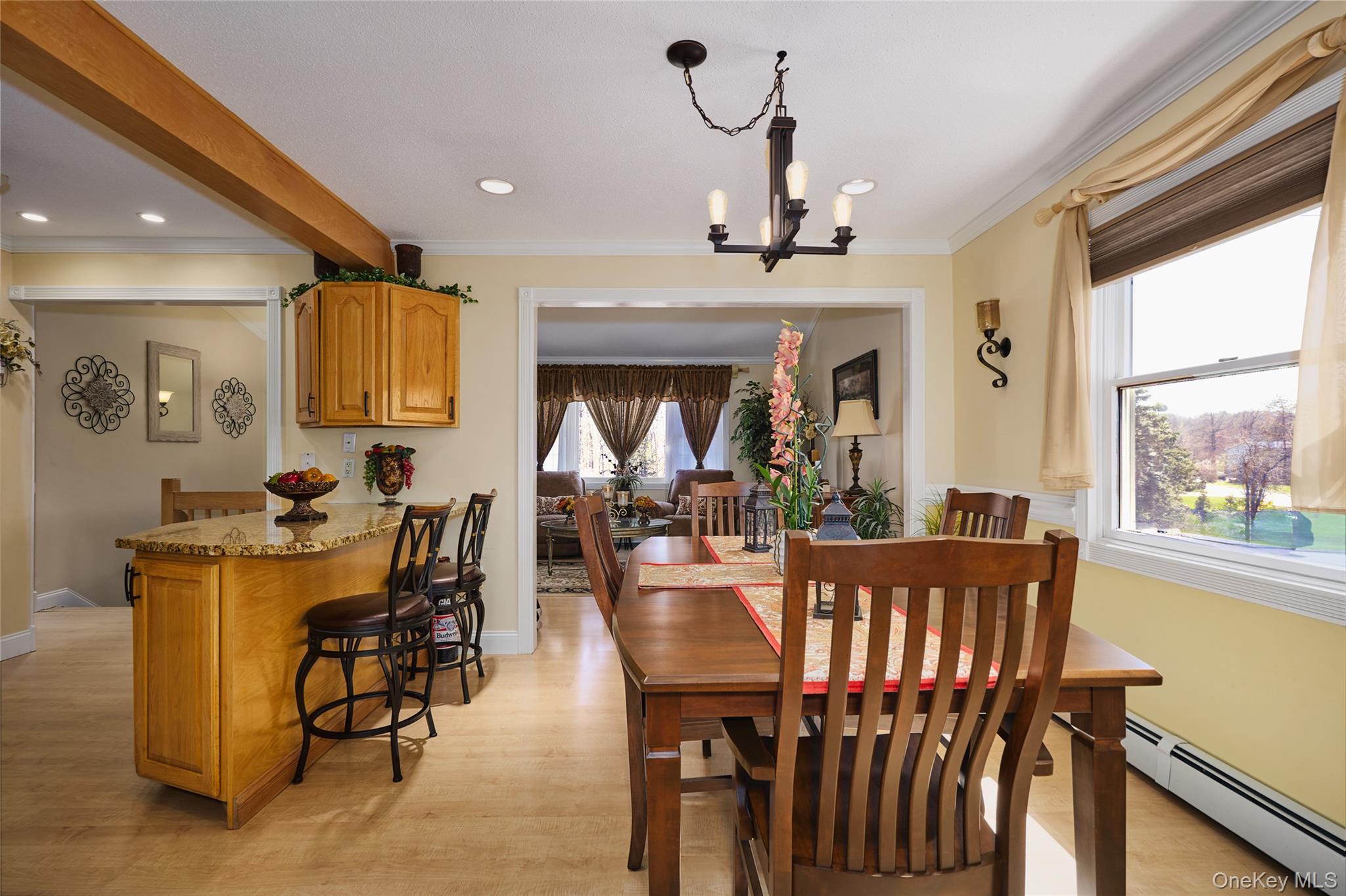 This bi-level raised ranch at 1 Nancy Aleen offers a blend of comfort and convenience with its 3 bedrooms and 2 bathrooms. The open floor plan includes a main-level family room featuring a corner fireplace. The updates enhance the home's appeal, such as a chef's kitchen equipped with stainless steel appliances and granite countertops along with both bathrooms that have been renovated, and the addition of the main-level family room with a gas fireplace. The residence also benefits from mostly new windows, a roof installed in 2022, and a new washer/dryer from the same year. Further modern amenities include central air and a hot water heater replaced in 2024. Additional features of the home include crown molding, chair rail, ceiling fans, laminate flooring, recessed lighting, and white raised panel doors. Municipal water, sewer and gas heat. The exterior provides a large, level backyard, ideal for various outdoor activities. It includes a private deck area with a gazebo and a shed for extra storage. An attached heated two-car garage with a generator hook-up and updated garage doors, complemented by driveway parking, provides ample space for vehicles. Located in a desirable subdivision called Pondview, the home offers convenient access to Route 9 for shopping and dining options. It also provides easy access to schools, the Metro North train station, I-84, and the Taconic State Parkway, facilitating commutes and travel. The property at 1 Nancy Aleen Drive in Wappingers Falls, NY, was built in 1985 and encompasses 2,029 square feet on a 0.35-acre lot. A must see!