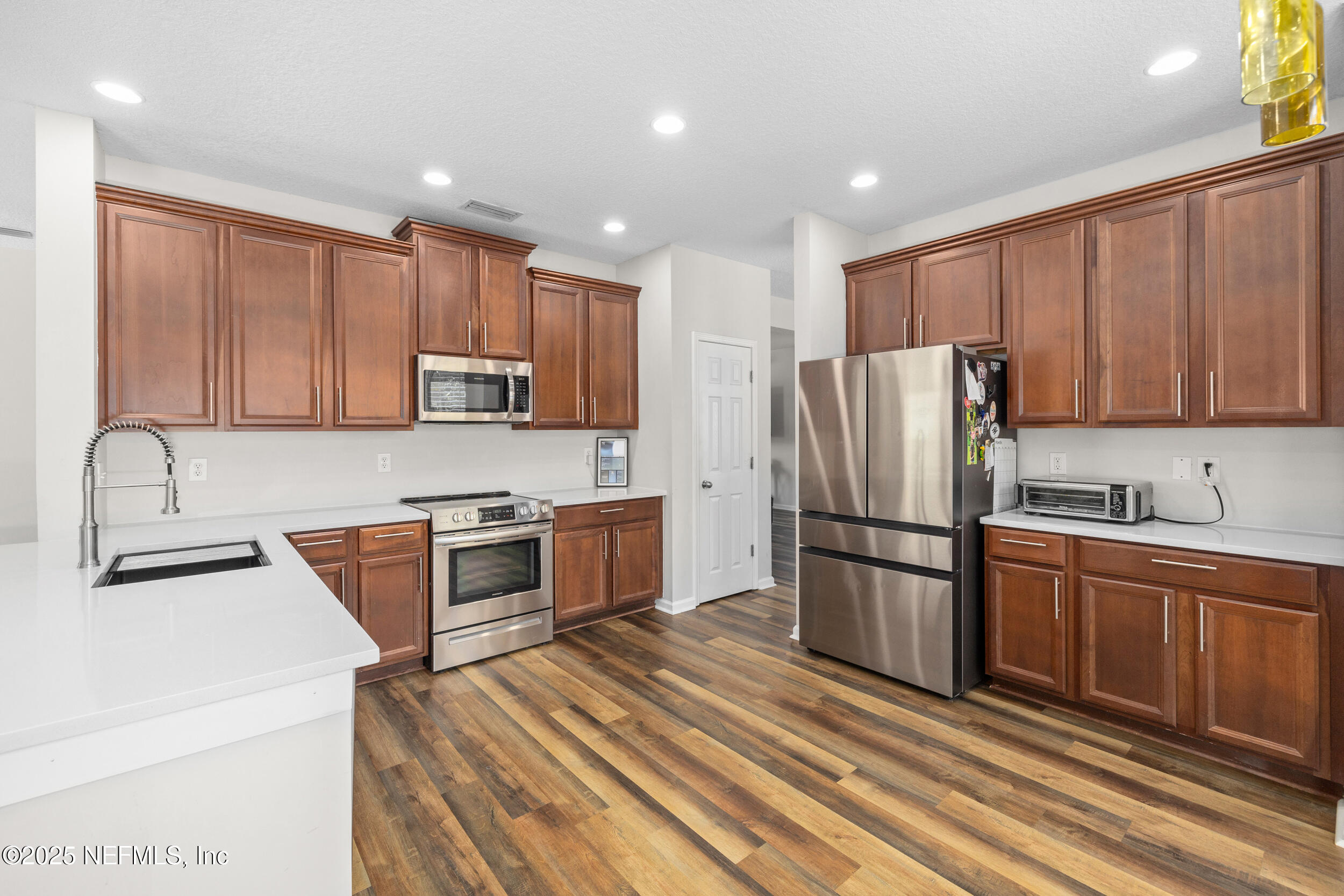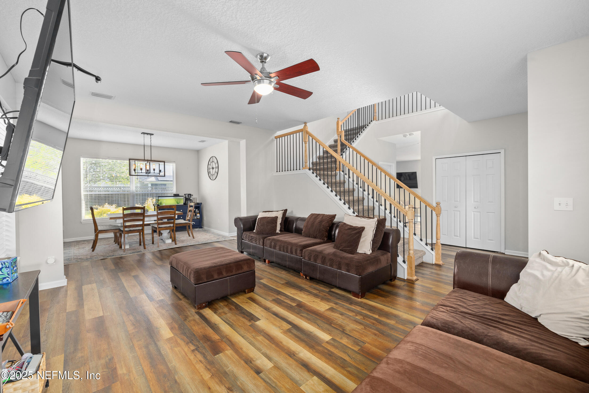 Recently refreshed and back on the market with a new price, this updated Heritage Landing home offers both lifestyle and long-term value. Previously rented at $2,750/month, it presents a compelling opportunity for both primary buyers and investors. This 4-bedroom, 2.5-bath home offers nearly 2,900 sq ft of functional living space with thoughtful updates throughout. The main level features new luxury vinyl plank flooring, complemented by fresh interior and exterior paint for a clean, move-in-ready feel. The redesigned kitchen offers improved flow, new countertops, and generous workspace, opening seamlessly to the main living areas for everyday living and entertaining. Upstairs, the spacious primary suite includes an updated bath with a tiled walk-in shower, soaking tub, and a private flex space ideal for a home office, nursery, or quiet retreat. Key system updates include a 2017 roof, 2020 water heater, and 2015 HVAC, giving buyers added confidence in long-term ownership. Out back, enjoy a fully fenced yard with mature trees, a covered lanai, and a custom fire pit area that creates a private setting for relaxing or hosting. Located in Heritage Landing, residents enjoy resort-style amenities including multiple pools, pickleball and basketball courts, RV/boat storage, and an active community environment.