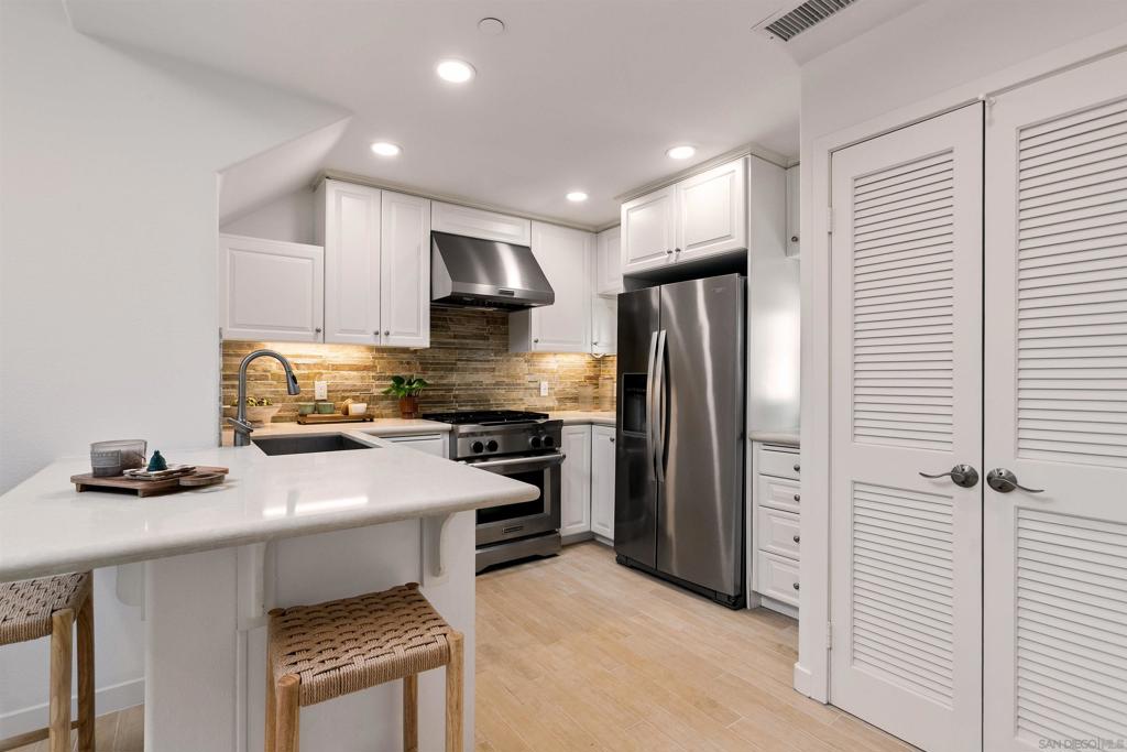 Stunning, exquisite, and ideally situated in a quiet location in the heart of the Village of La Jolla. This beautifully maintained townhouse offers an exceptional opportunity to enjoy one of Southern California's most coveted coastal lifestyles. Residences in the highly sought-after Paseo La Jolla community seldom come to market. Meticulously cared for and move-in ready, the home offers 2 bedrooms and 2.5 baths, including two ensuite bedrooms. The primary bedroom has a ceiling fan and a walk-in closet designed by California Closets. Elegant finishes and custom flooring create a warm, inviting interior, while the well-appointed kitchen includes stainless steel appliances, gas cooking, and generous counter space. Granite countertops enhance the bathrooms and a stacked washer and dryer adds to everyday convenience. The rooftop deck is a standout feature, complete with a built-in Lion barbecue, mini-fridge, and cooking island - offering Village views, peek ocean views, and colorful sunsets, an ideal setting for relaxing, al fresco dining or entertaining. Additional highlights include a private two-car garage with direct access, epoxy flooring, and built-in California Closets, a tankless water heater, recessed lighting throughout, and central air conditioning. Enjoy the ultimate Village lifestyle just moments from beautiful beaches, acclaimed restaurants, charming cafes, boutiques, art galleries, the Sunday Farmers' Market, and the La Jolla Country Club. This wonderful property offers the very best of Village living, once you see it you will want to call it home.