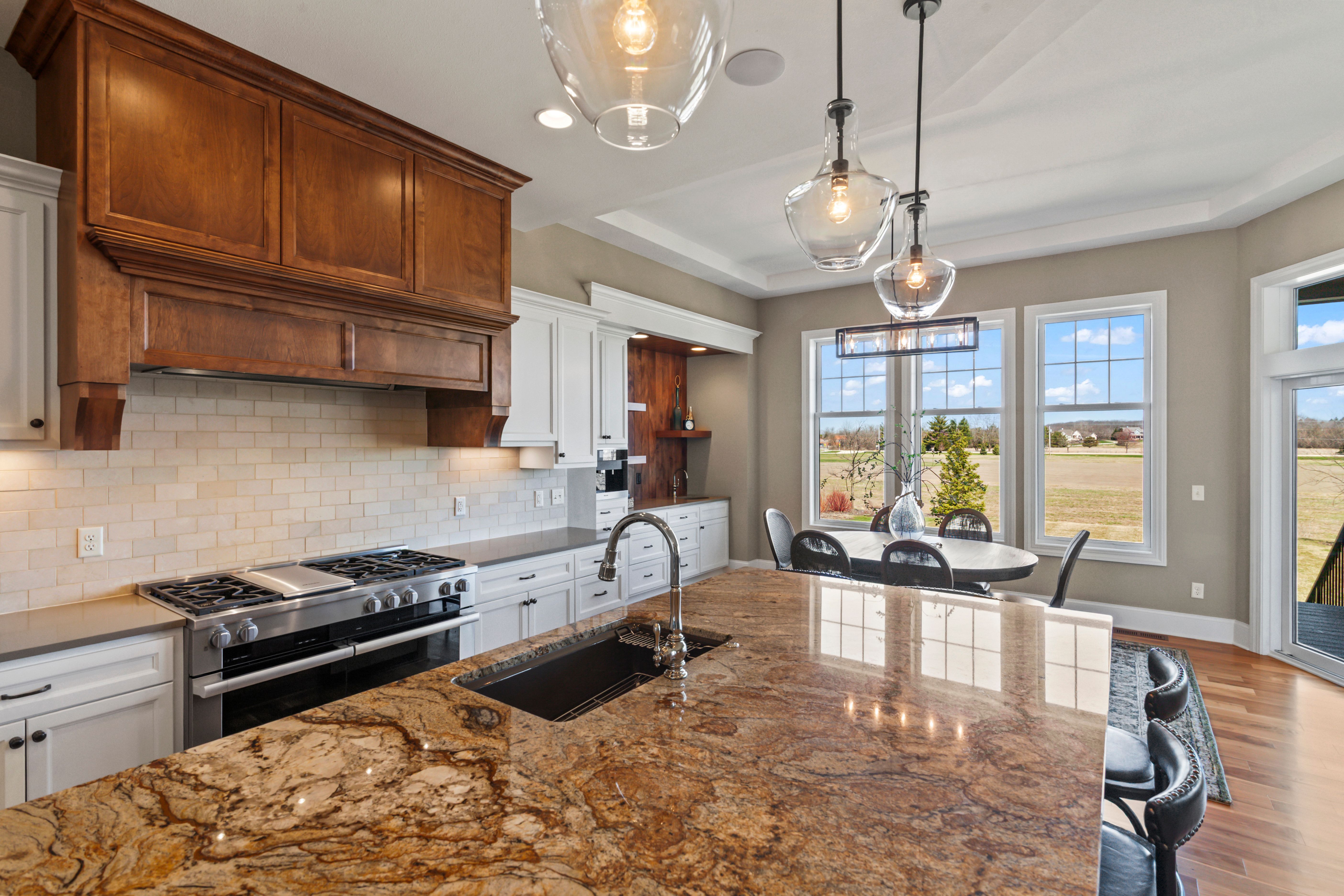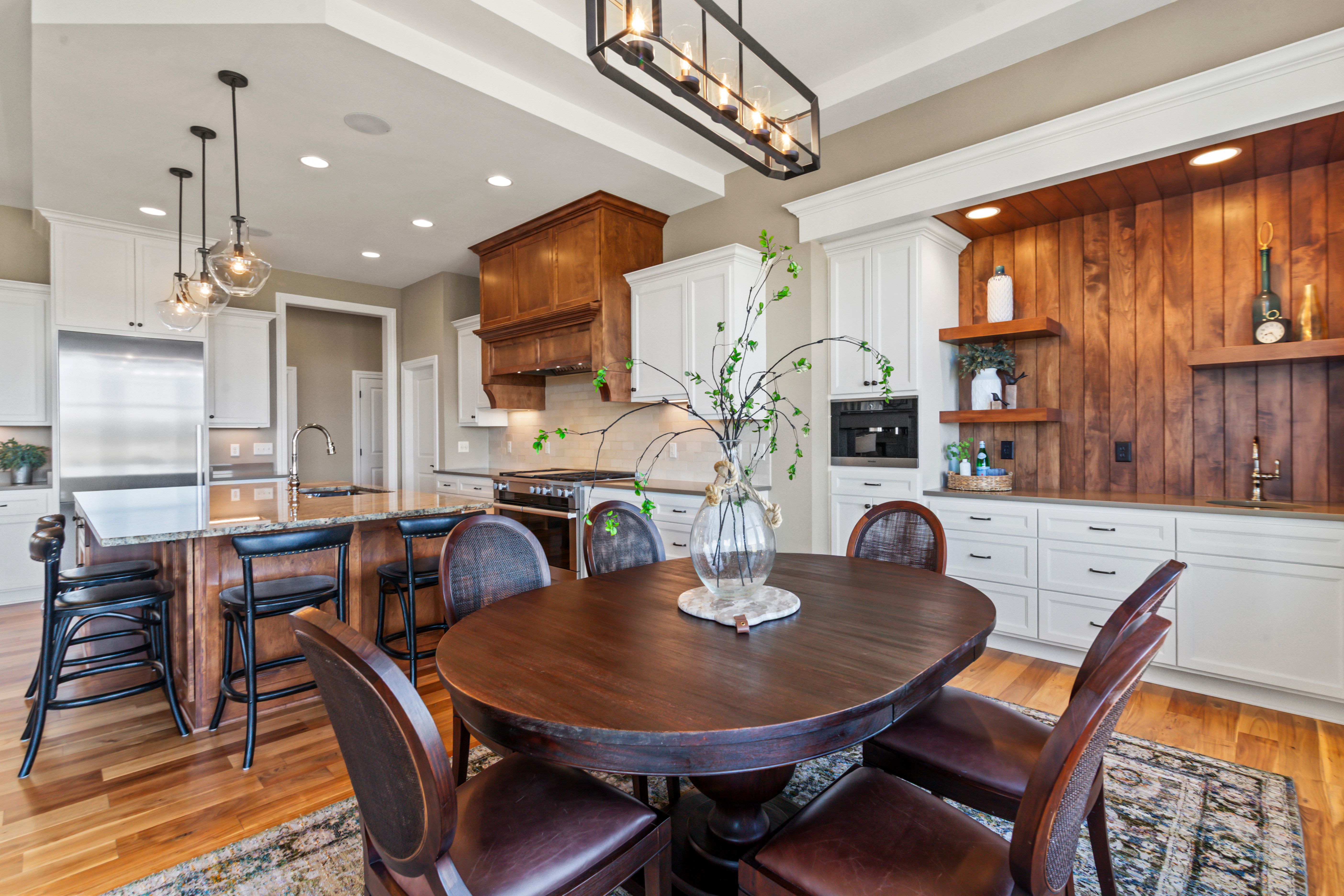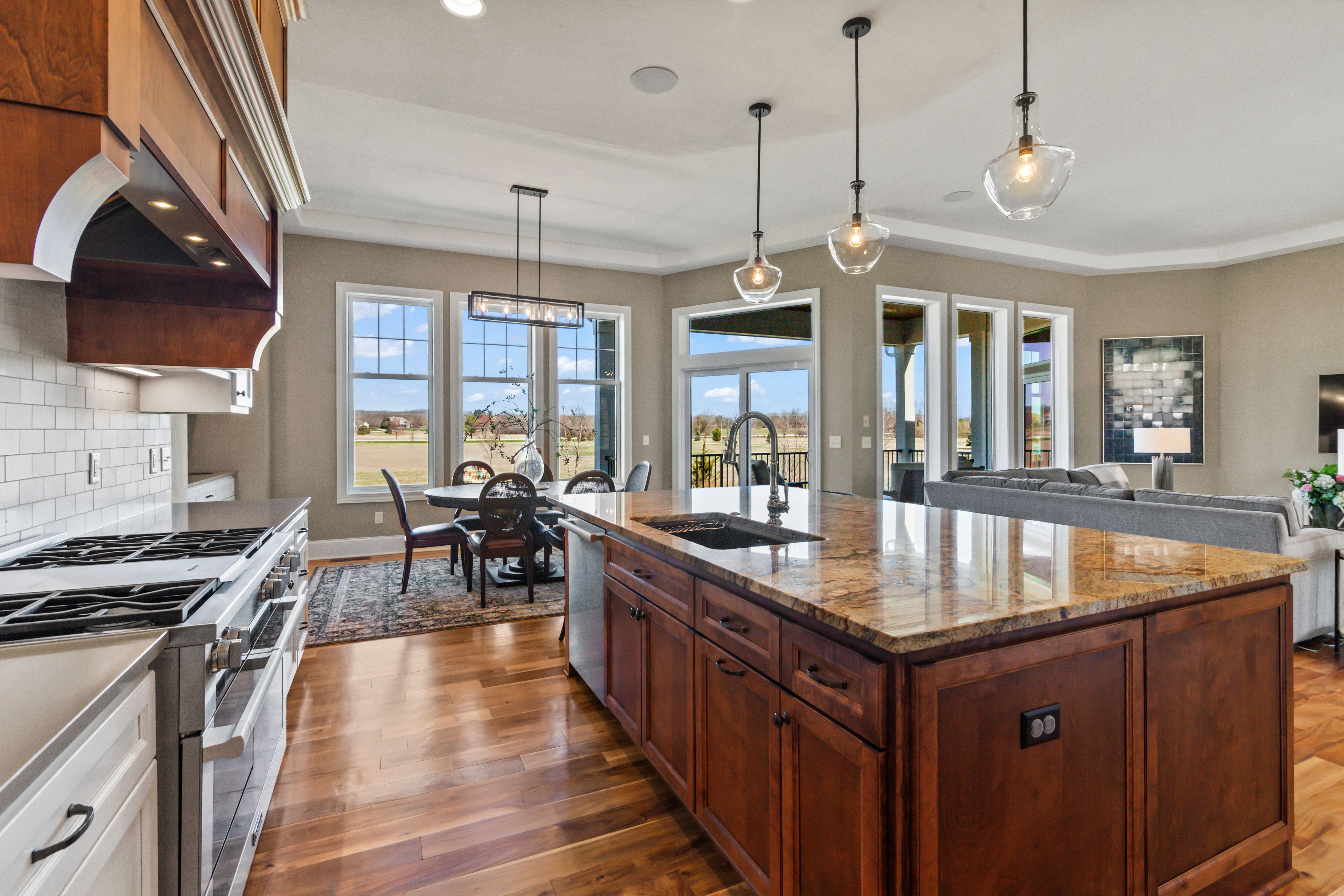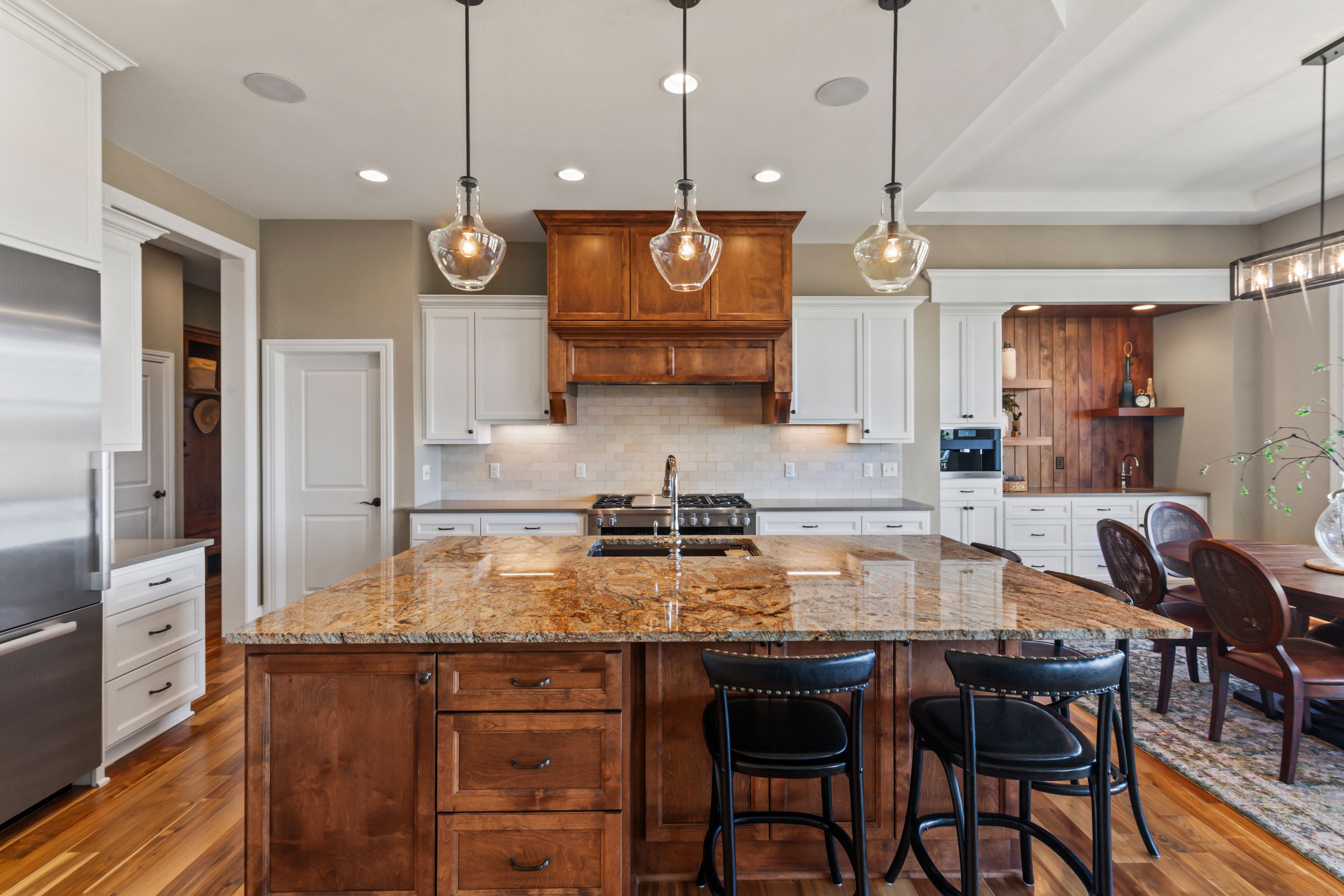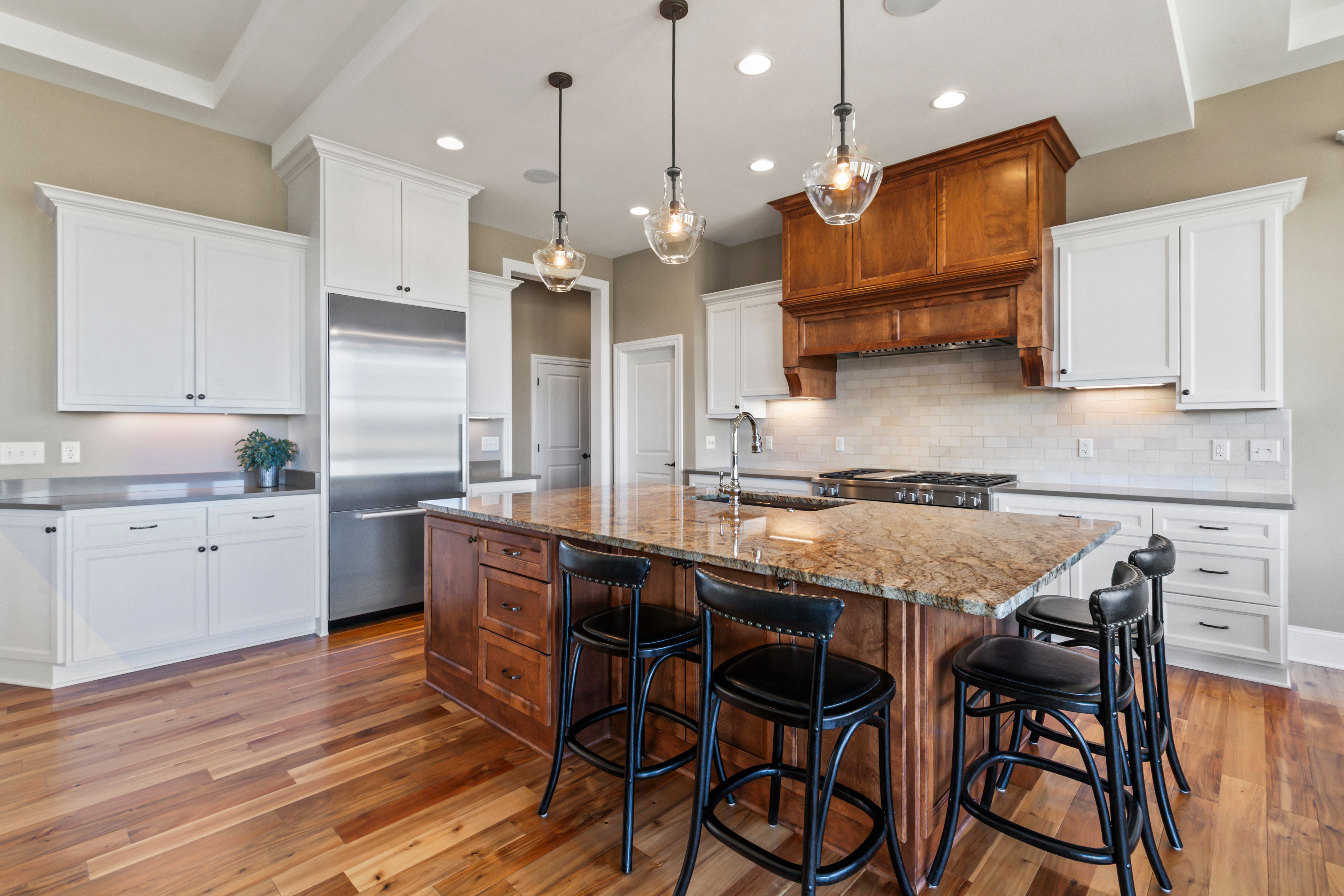 Refined finishes abound in this exquisite model home within the prestigious Hartland School District. An open-concept, split-bedroom layout showcases soaring ceilings, crown molding, and newly glossed hardwoods. The expansive great room flows into a gourmet kitchen boasting an 8.5' island, walk-in pantry, and bespoke coffee bar. Retreat to the spa-inspired primary suite with a Kohler soaking tub and custom tiled shower. The main level is completed by two bedrooms with Jack-and-Jill bath, dedicated den and mudroom/laundry. A daylight-drenched finished lower level offers a secondary kitchen, rec room, and 4th bedroom. Experience serene nature preserve views from the covered deck with dual entry from the kitchen & primary, or paver patio. Enjoy extensive community walking trails in this premier setting.
