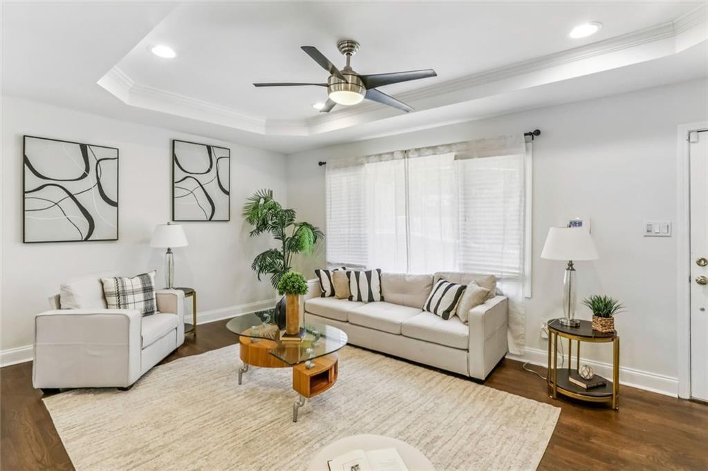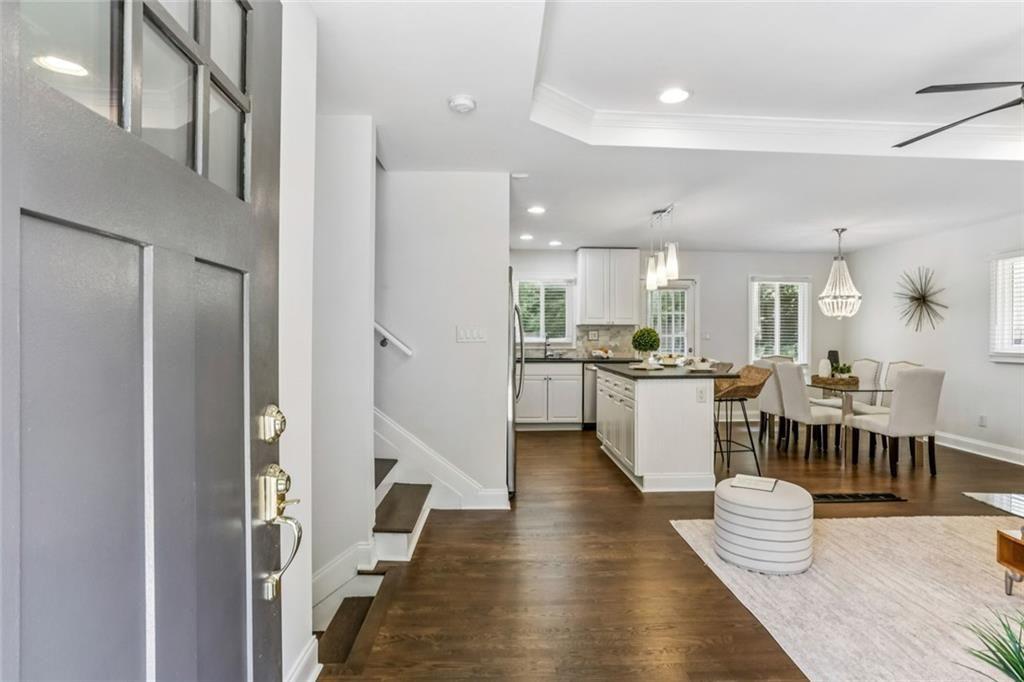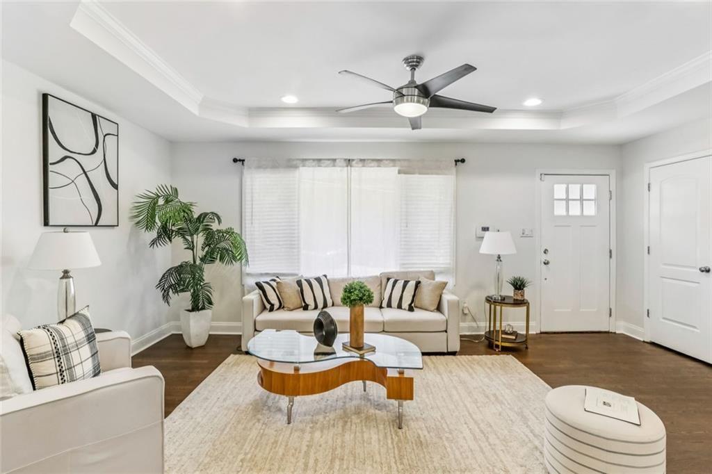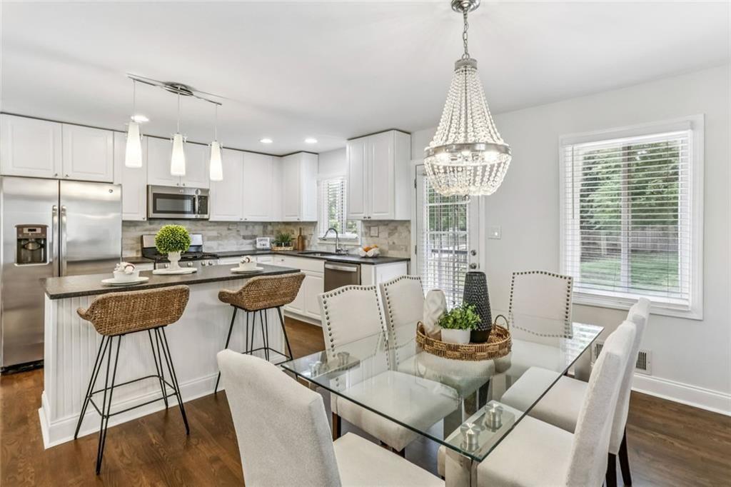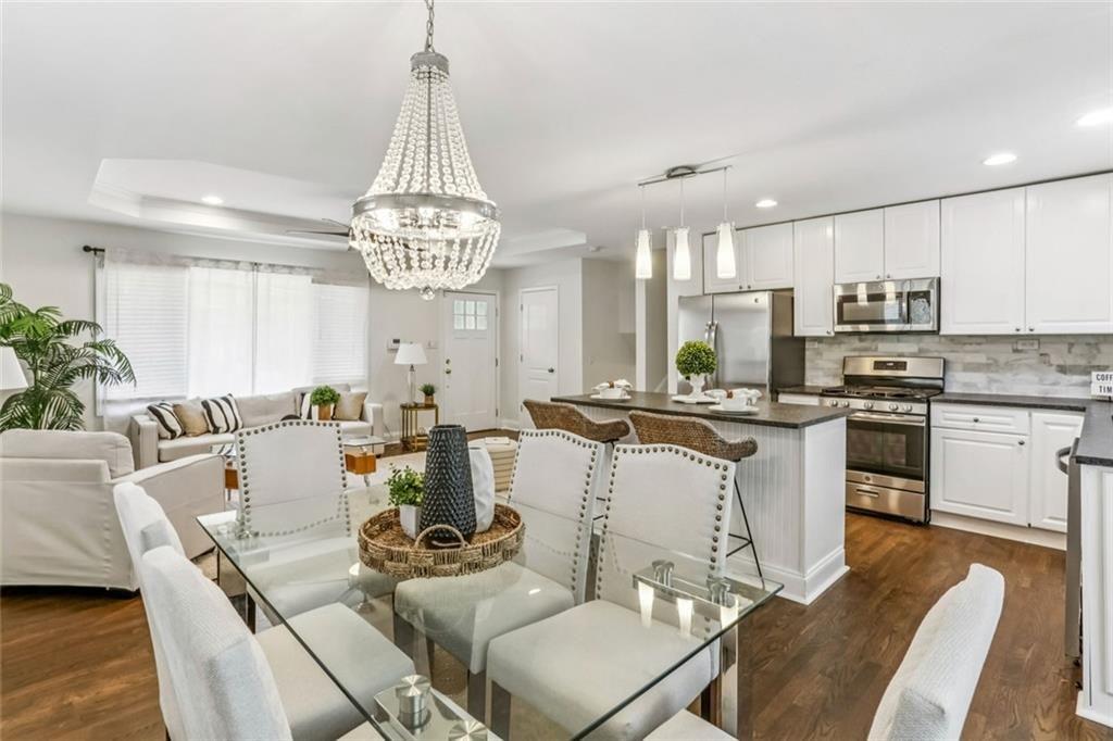 Luxury living just minutes from the heart of the city! This beautifully renovated split-level home offers the perfect blend of style, space, and convenience. Located only 15 minutes from Midtown Atlanta, moments from Downtown Decatur and the Perimeter. Step inside to an open-concept layout featuring rich hardwood floors, elegant tray ceilings, and recessed lighting that creates a warm, upscale feel throughout. The designer kitchen is a true showstopper, complete with crisp white cabinetry, granite countertops, tile backsplash, a spacious island, and stainless steel appliances, perfect for both everyday living and entertaining. The expansive primary suite is your private retreat, featuring a trey ceiling, walk-in closet, and a spa-inspired en suite bath with dual marble vanities, a soaking tub, and a beautifully tiled separate shower. Three additional bedrooms offer flexibility for guests, a home office, or growing households. Enjoy the outdoors in your large, fenced backyard with two patio areas ideal for relaxing, entertaining, or creating your own private oasis. Located in a quiet, well-maintained neighborhood, this home offers both comfort and accessibility. This is the one that checks all the boxes, come see it for yourself you will love it!