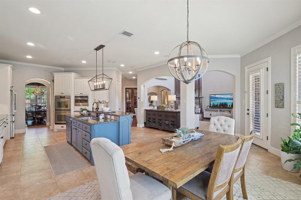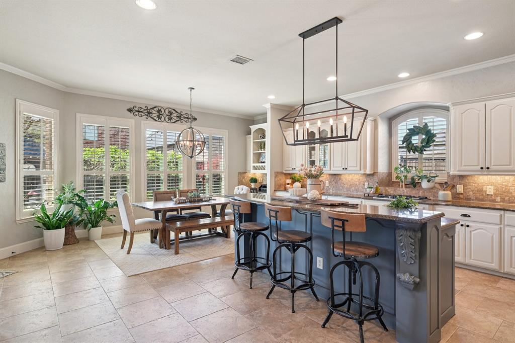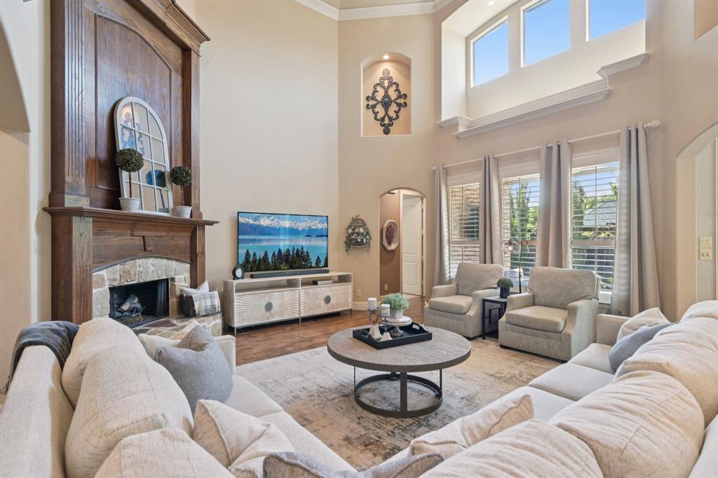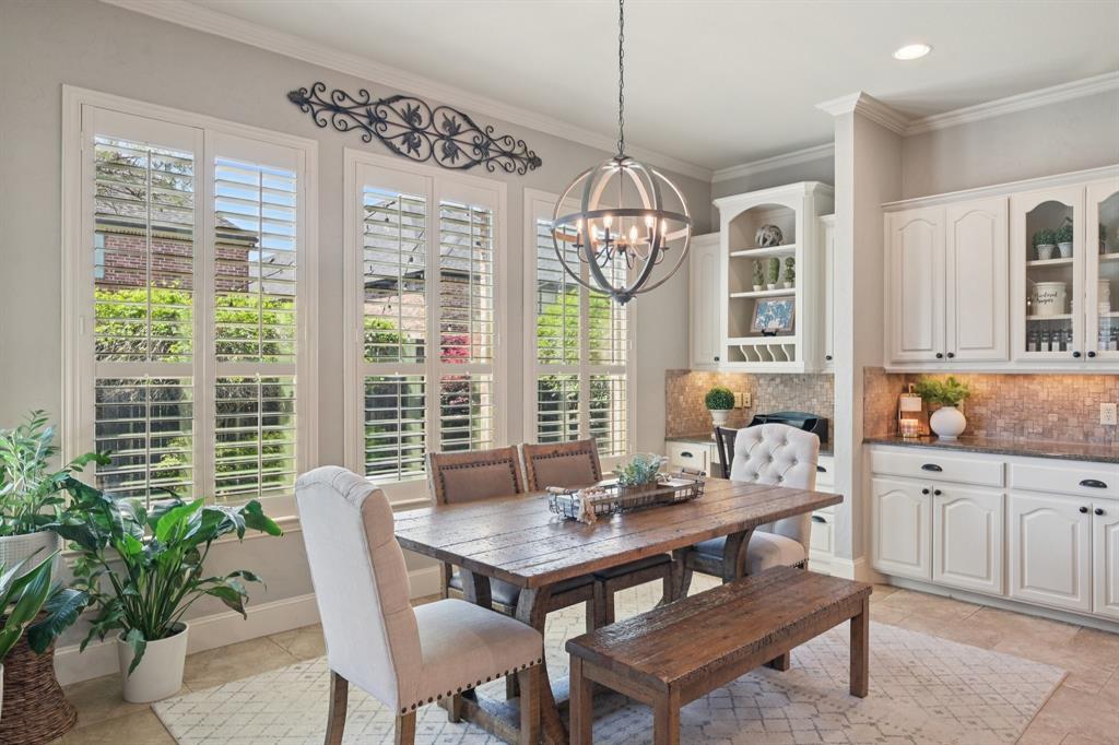 Situated in the highly sought-after community of Shaddock Creek Estates, this impressive brick-and-stone home offers exceptional space, comfort, and entertaining amenities in a prime Frisco location. A grand arched entry welcomes you into a light-filled floor plan with spacious living areas and timeless architectural appeal. Just off the foyer, a private study provides the ideal work-from-home space, while the formal dining room is perfect for hosting holidays and special occasions. The expansive living room features abundant natural light and a striking fireplace, opening seamlessly to the kitchen and breakfast nook for easy everyday living. The well-appointed kitchen offers extensive cabinetry, generous counter space, a large center island, double ovens, pantry access, and a nearby wet bar, creating a functional layout for both casual dining and entertaining. The first-floor primary suite is a peaceful retreat with a spacious bedroom, large bath, and walk-in closet. A secondary bedroom and full bath on the main level provide flexibility for guests. Upstairs, you'll find 3 additional bedrooms, a large game room, and a dedicated theatre room with wet bar, offering endless options for recreation and relaxation. Step outside to enjoy the covered patio and sparkling backyard pool with slide, surrounded by mature landscaping for a private outdoor escape. With 5 bedrooms, multiple living areas, a study, formal dining, game room, theatre room, wet bars on both levels, and a resort-style backyard, this home delivers the perfect blend of luxury, function, and lifestyle. Residents of Shaddock Creek Estates enjoy winding trails, a community pool, and a playground, all within the highly acclaimed Frisco ISD and just minutes from shopping, dining, entertainment, and major commuter routes.