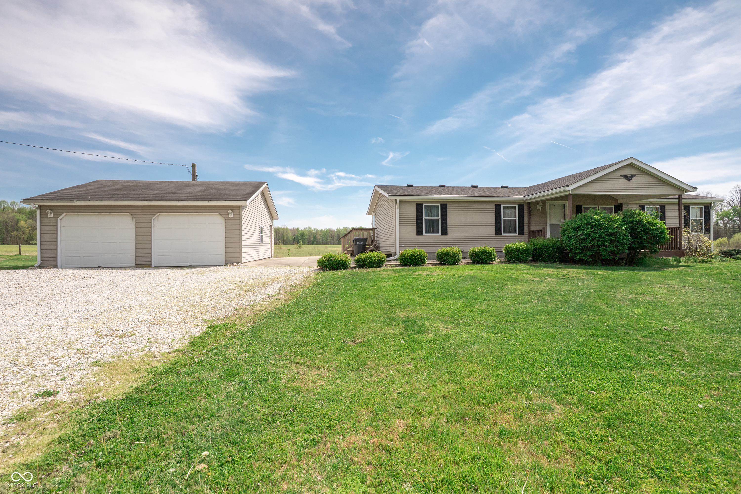 Welcome to peaceful country living in the Hayden Area, Country Side Estates! This one-owner manufactured home sits on a spacious 1-acre lot, offering privacy and scenic views with farm crops bordering two sides and an open field just across the street. The home features 3 bedrooms and 2 full baths, providing a comfortable layout ready for your personal touch. The primary suite offers a walk-in closet and a nicely upgraded walk-in shower, creating a private space to relax and unwind. A covered front porch invites you to enjoy the quiet surroundings, while a large concrete patio creates the perfect connection between the home and the 24x28 detached 2-car garage, ideal for entertaining or everyday convenience. Additional highlights include two storage sheds that will remain with the property, giving you plenty of extra space for tools, hobbies, or equipment. Major updates have already been taken care of, with a new roof and HVAC system installed in 2023, offering peace of mind for years to come. The property is serviced by Hayden Water and Jackson County REMC. If you've been searching for a place to call home, this property is full of opportunity. With its quiet setting and permanent foundation, it's ready to become your dream place!