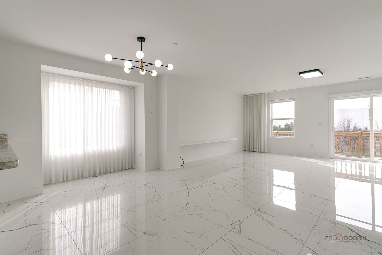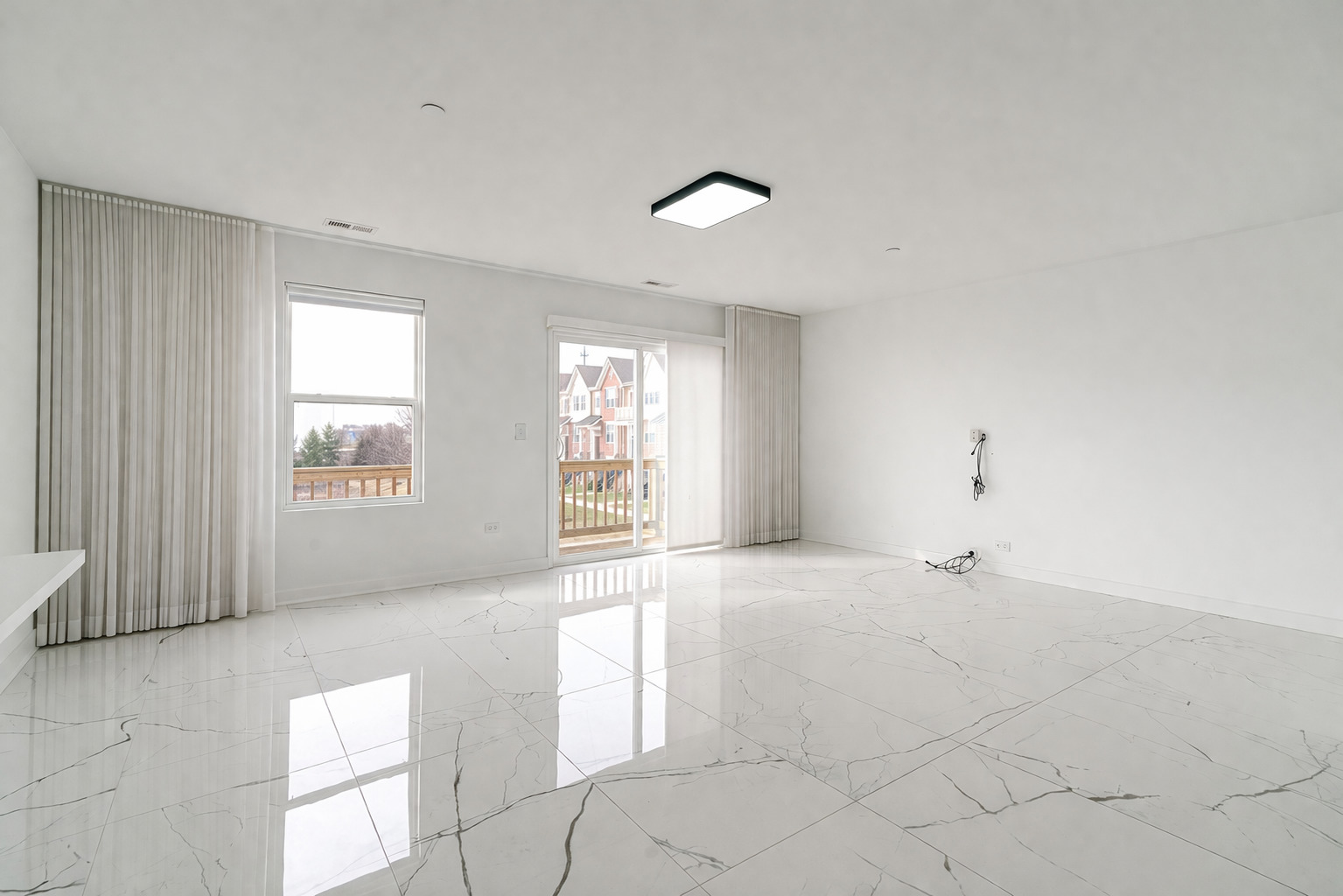 This stunning three-bedroom, two-and-a-half-bathroom, three-story, end-unit townhome in the desirable Lake Ridge Townhome subdivision of Mundelein offers a sleek, contemporary design throughout. The main level features an open-concept layout highlighted by a modern kitchen with gray Shaker cabinetry, stainless steel appliances, and a breakfast bar overlooking the dining area. The dining room flows seamlessly into the living room, creating an ideal space for both everyday living and entertaining. Gleaming, heated tile flooring enhances the home's clean, contemporary aesthetic. A sliding glass door off the living room leads to a private deck with pond views. Upstairs, you are welcomed by illuminated stair treads and hardwood flooring throughout the bedroom level. The spacious primary suite includes a walk-in closet and an ensuite bathroom with gray Shaker cabinetry and a walk-in shower with clear glass doors. Two additional bedrooms, a full hall bathroom, and a convenient laundry closet with a front-load washer and dryer complete this level. The lower level offers a versatile space, perfect for a home office, featuring built-in shelving. The attached two-car garage includes an electric vehicle charger. Ideally located near restaurants and shopping, this property is available for immediate occupancy with a one-year lease.
