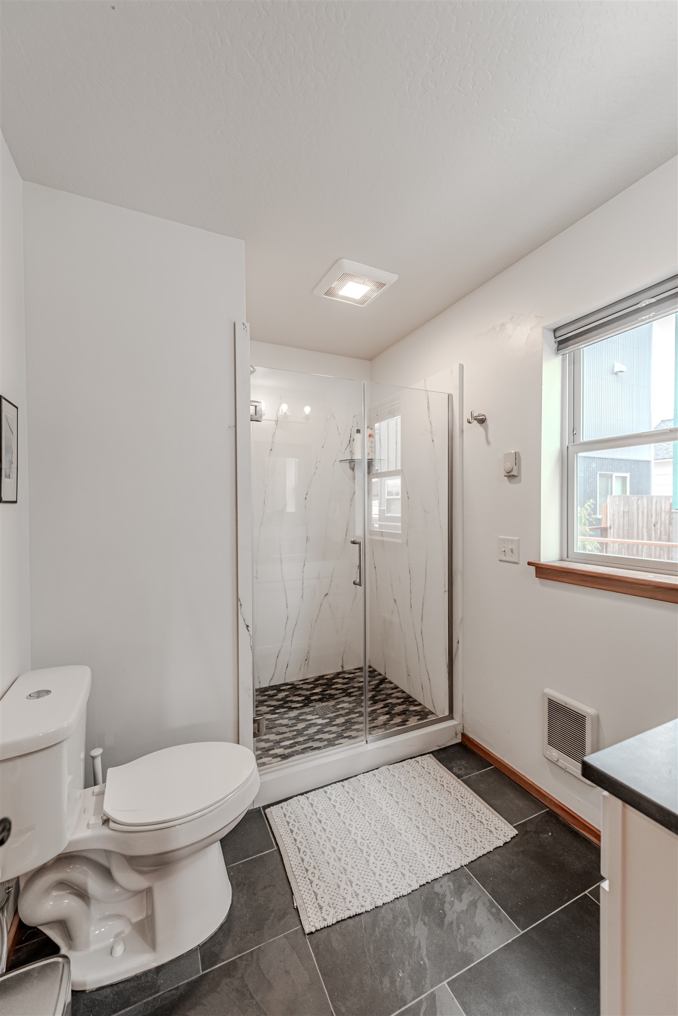 Nestled in the heart of Missoula, this contemporary three-story home boasts stunning panoramic views from Mount Jumbo and Sentinel to the Bitterroot Valley and Frenchtown. Designed with modern elegance and functionality, it's truly one of a kind. Inside, natural stone countertops enhance the sophisticated design. The first-floor bath features a seamless porcelain shower, while the upstairs bath offers a freestanding tub, solid natural stone shower enclosure, and vanity for a clean, modern look. Both upstairs bedrooms include walk-in closets. Slate flooring on the first level, tile in the baths, and luxury flooring throughout add durability and style. Efficient mini-split heating and in-wall Cadet heaters ensure year-round comfort. Custom Bali up/down blinds maximize privacy and light. A short walk to downtown, enjoy access to local favorites like Break Espresso, Sushi Hana, and The Wilma. Blending efficiency, high-end finishes, and unbeatable views, this home is a rare find.