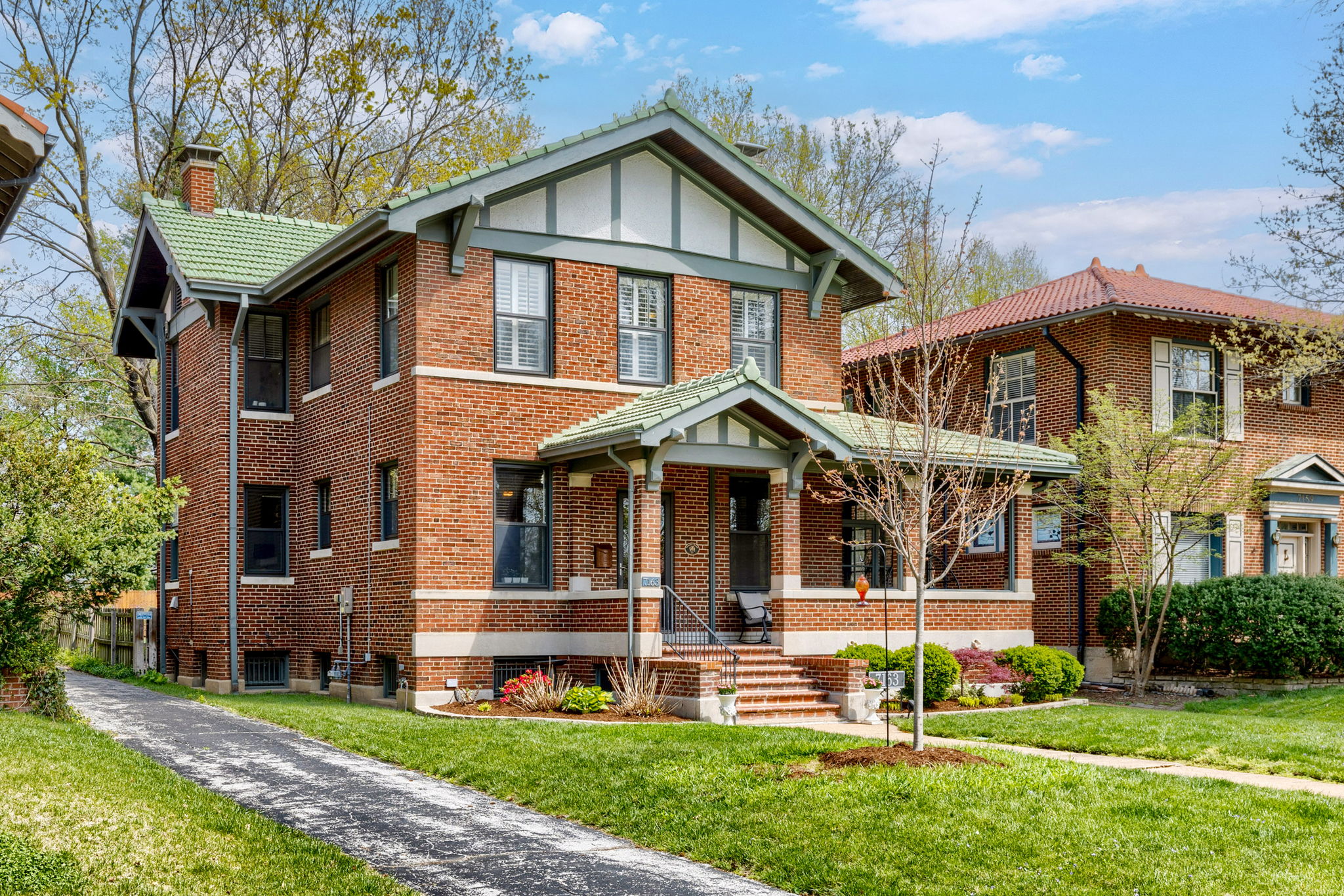 Exceptional U-City home with charming curb appeal, featuring a pillared front porch and distinctive green tile roof. Inside, you’ll find a flexible floor plan with a spacious living area large enough to accommodate both living and dining spaces, as currently arranged. Highlights include oversized windows, hardwood floors, built-in cabinetry, a gas fireplace, and elegant moldings. The original dining room, now used as a family room, offers generous space with hardwood flooring, a bow window with transoms, and windows overlooking the backyard. This room connects to an enclosed side porch with brick flooring and original leaded glass windows. The kitchen is beautifully updated with features today’s buyers seek, including gas cooking, a large center island with breakfast bar, and a walk-in pantry—rare finds in U-City. Additional highlights include large-format ceramic tile flooring, quality appliances, and direct access to the backyard. A discreet half bath off the kitchen completes the main level. Upstairs, the second floor includes three bedrooms, including a primary suite with a spacious walk-in closet. Two additional well-sized bedrooms and a large bathroom accessible from both the hallway and the primary closet. Completing this house is a finished rec room in the lower level that also provides tremendous storage space and a separate laundry room. Additional features include a two-car garage, a large deck, a fenced yard, gardens, an irrigation system with an app, and a motorized driveway gate. Ideally located on a wide street ending at walkways to Flynn Park Elementary, Flynn Park, tennis courts, and Winslow’s Table—a community gathering spot. Convenient to Washington University, Forest Park, MetroLink, and more, this is a wonderful place to call home.