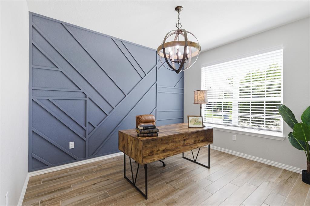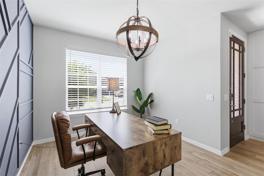 Beautiful home in master-planned Wildridge area! Just down the street from the community pool, playground, and pond is this like-new, thoughtfully designed home with a great layout. A bright entry opens into a spacious foyer with a dedicated front office both areas including custom board and batten wall details. The open concept living, kitchen, and dining space is perfect for comfortable daily living and entertaining. White kitchen cabinetry is complemented by light quartz counters, marble hex tile backsplash, decorative island lighting, and a stainless farm sink. The extra dry bar counter-space with lower cabinetry promises even more room for kitchen prep. Primary bedroom and ensuite bath is tucked away on the first floor and incorporates two large walk-in closets. A powder bath, laundry room, and mudroom drop zone with storage and bench seating are added first floor conveniences. Three secondary bedrooms with walk-in closets, a full bath with separate wet and dry areas, game room, and media room are upstairs. An unexpected 7x8 foot storage closet upstairs is sure to come in super handy! Relax outside on the covered patio with newly sealed concrete that includes connected paths leading around both sides of the home. A large storage outbuilding with AC, electric, and a finished interior is another great comfortable place to work or play. An additional small shed outside is included as well. The two car garage features epoxy flooring and sturdy shelving. With the lake and trails so close, everything you want is at your fingertips here!