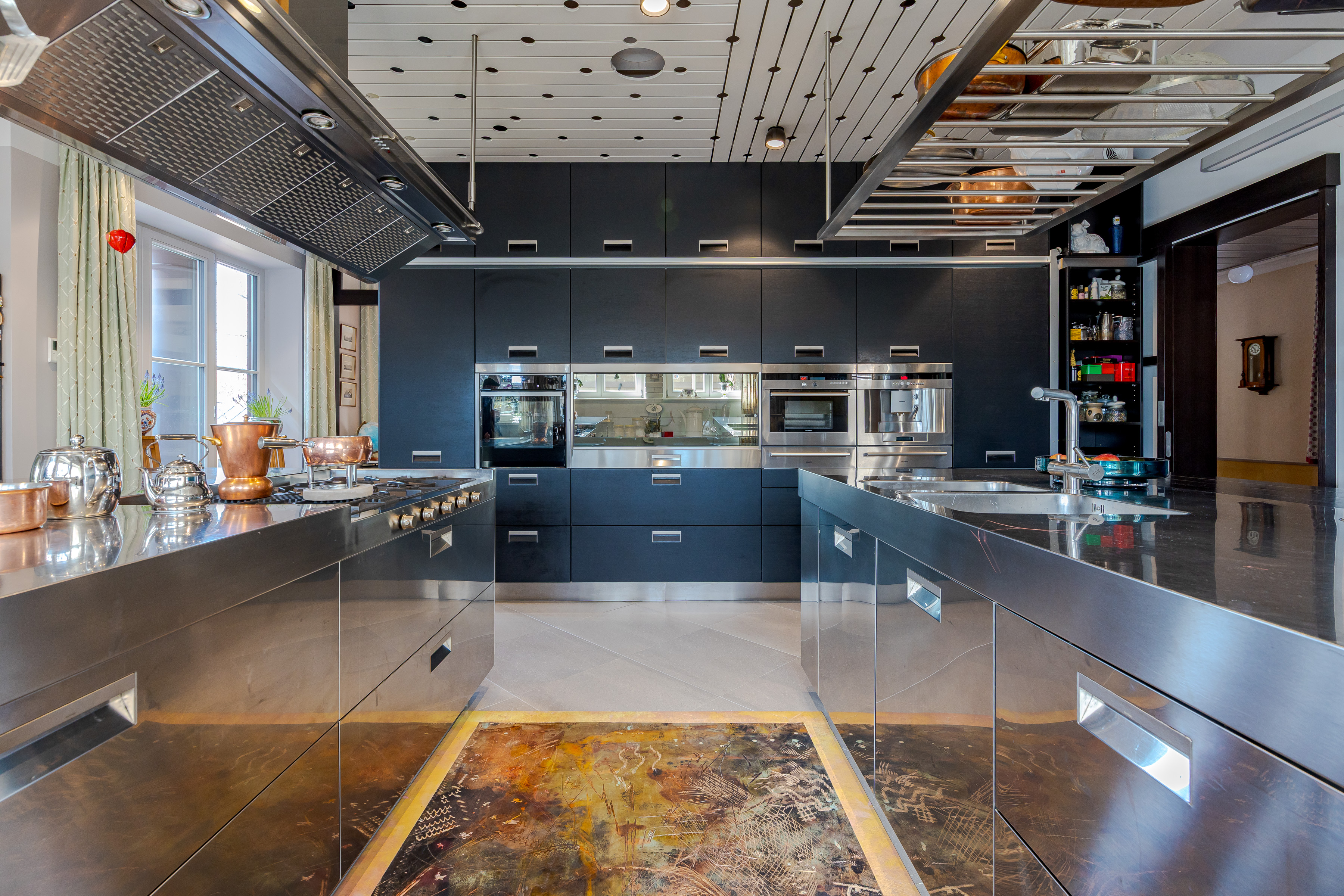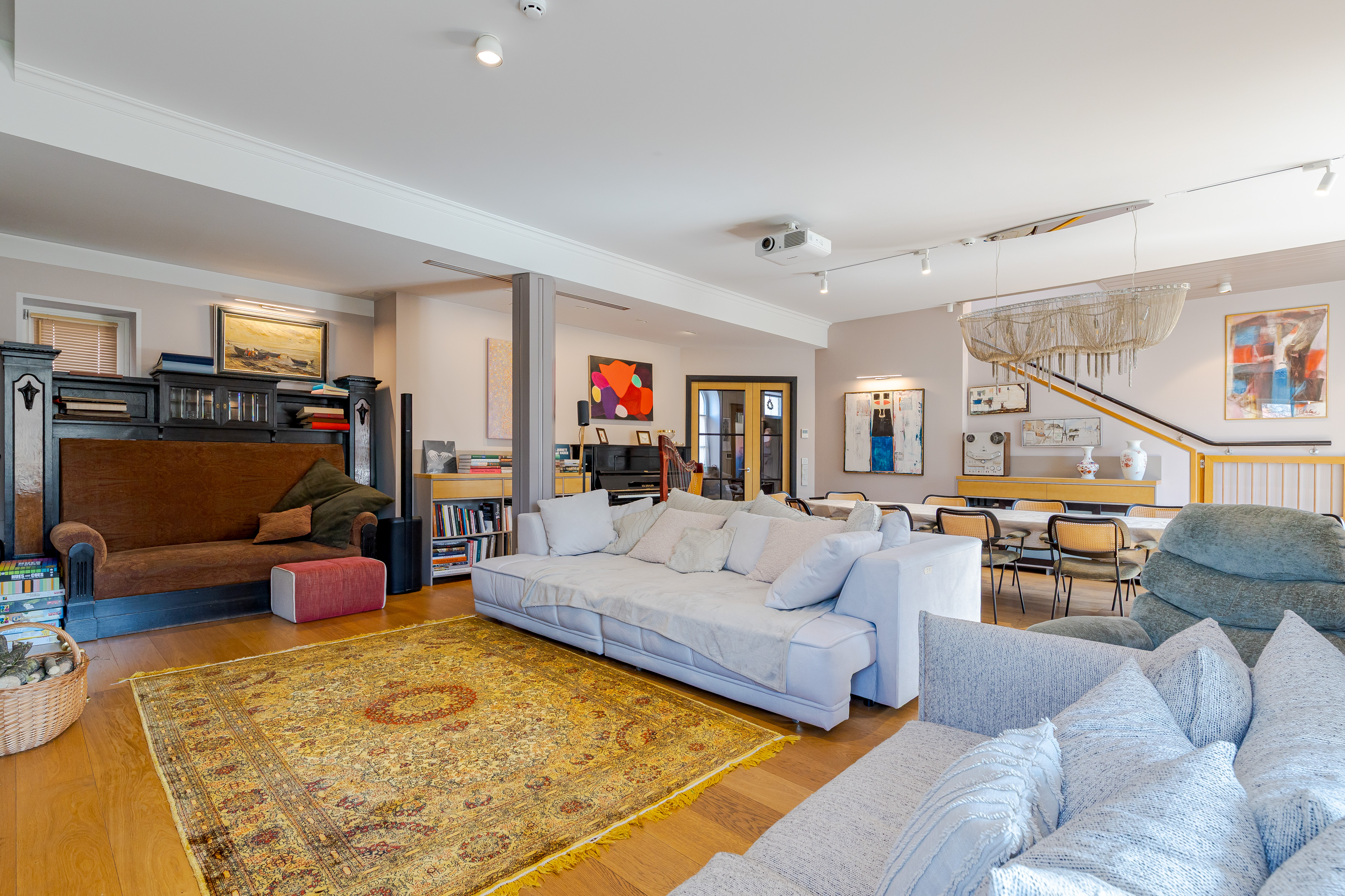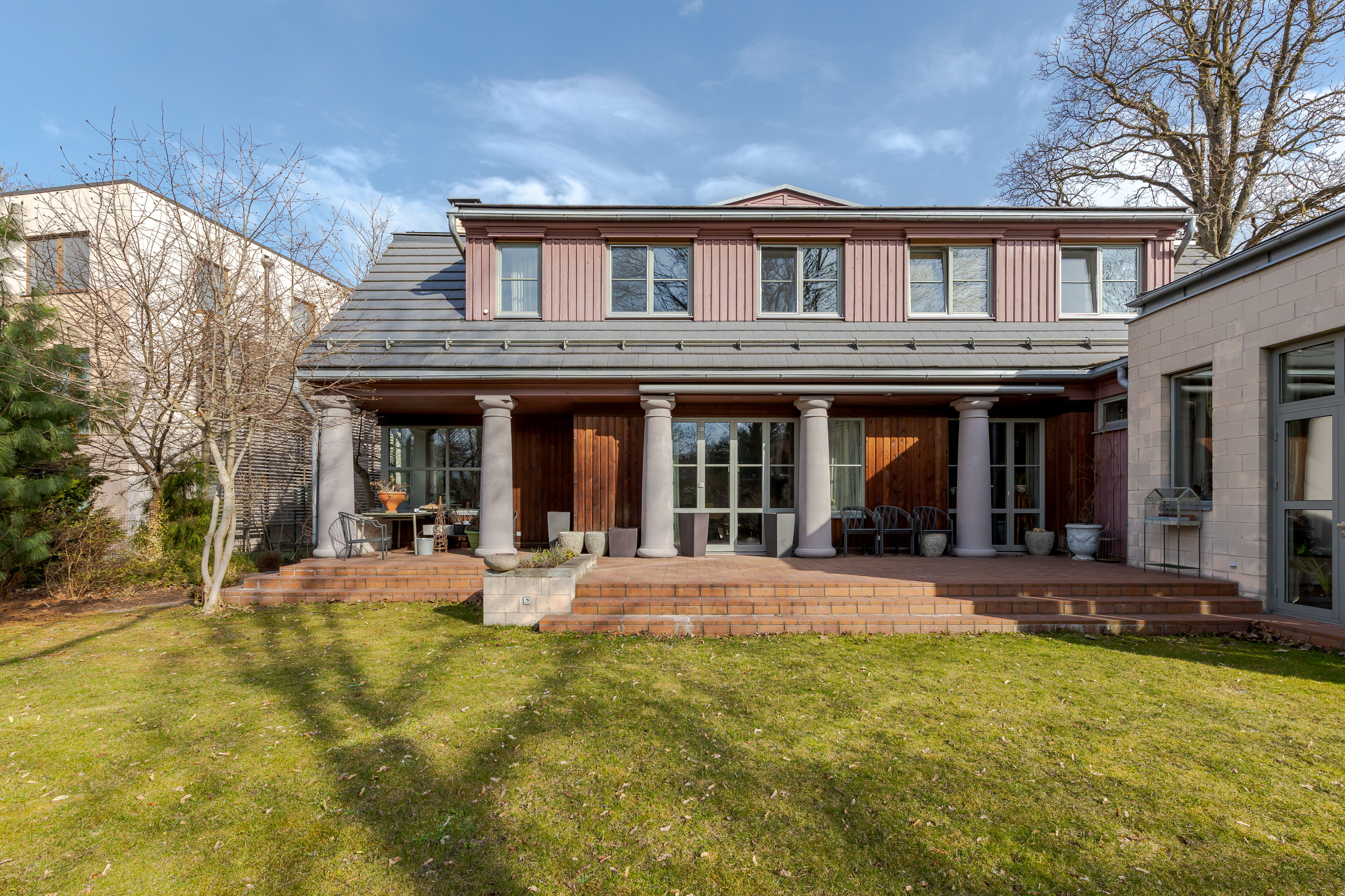 The property also includes a well-organized basement and a beautifully landscaped garden with a terrace and a summer kitchen.