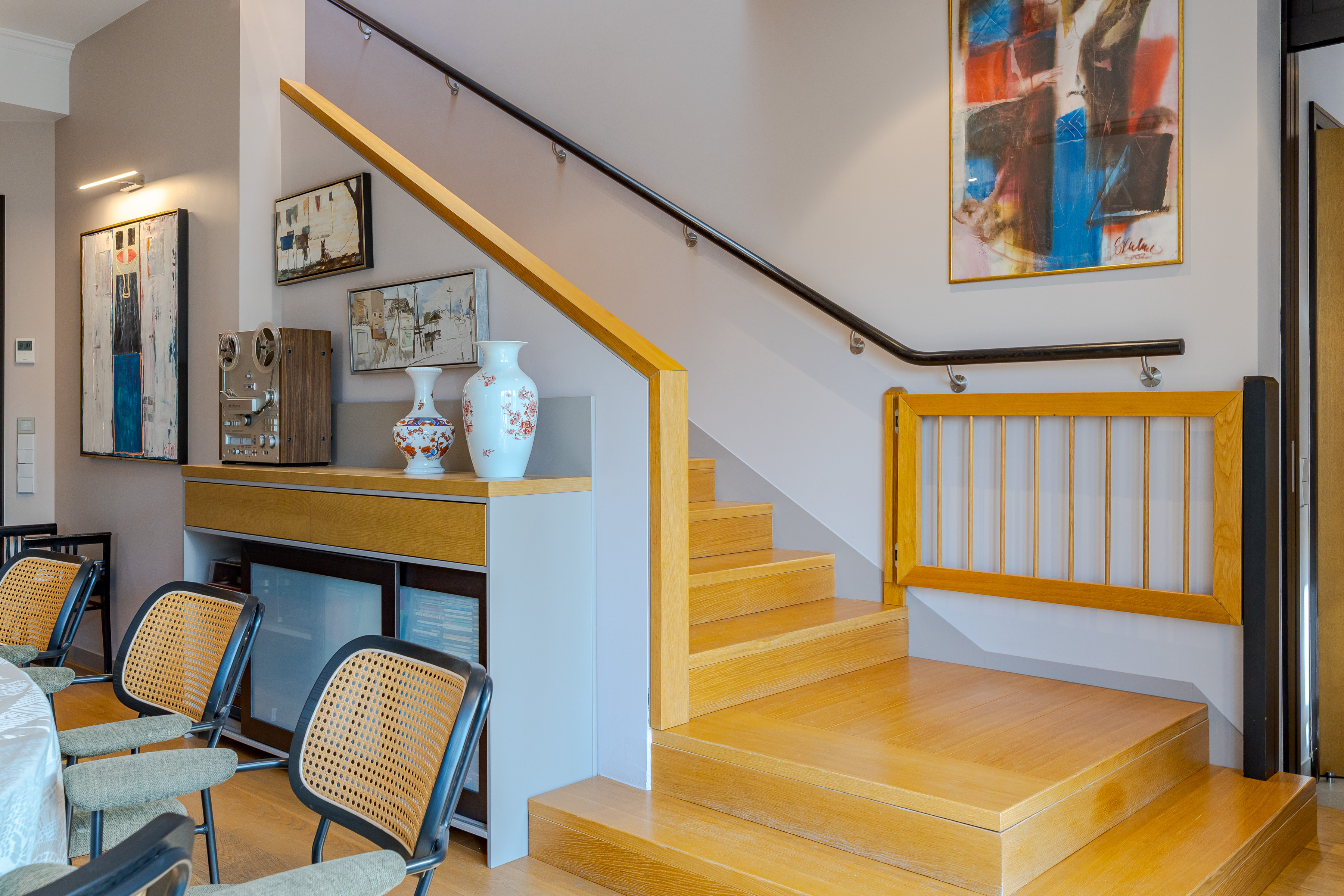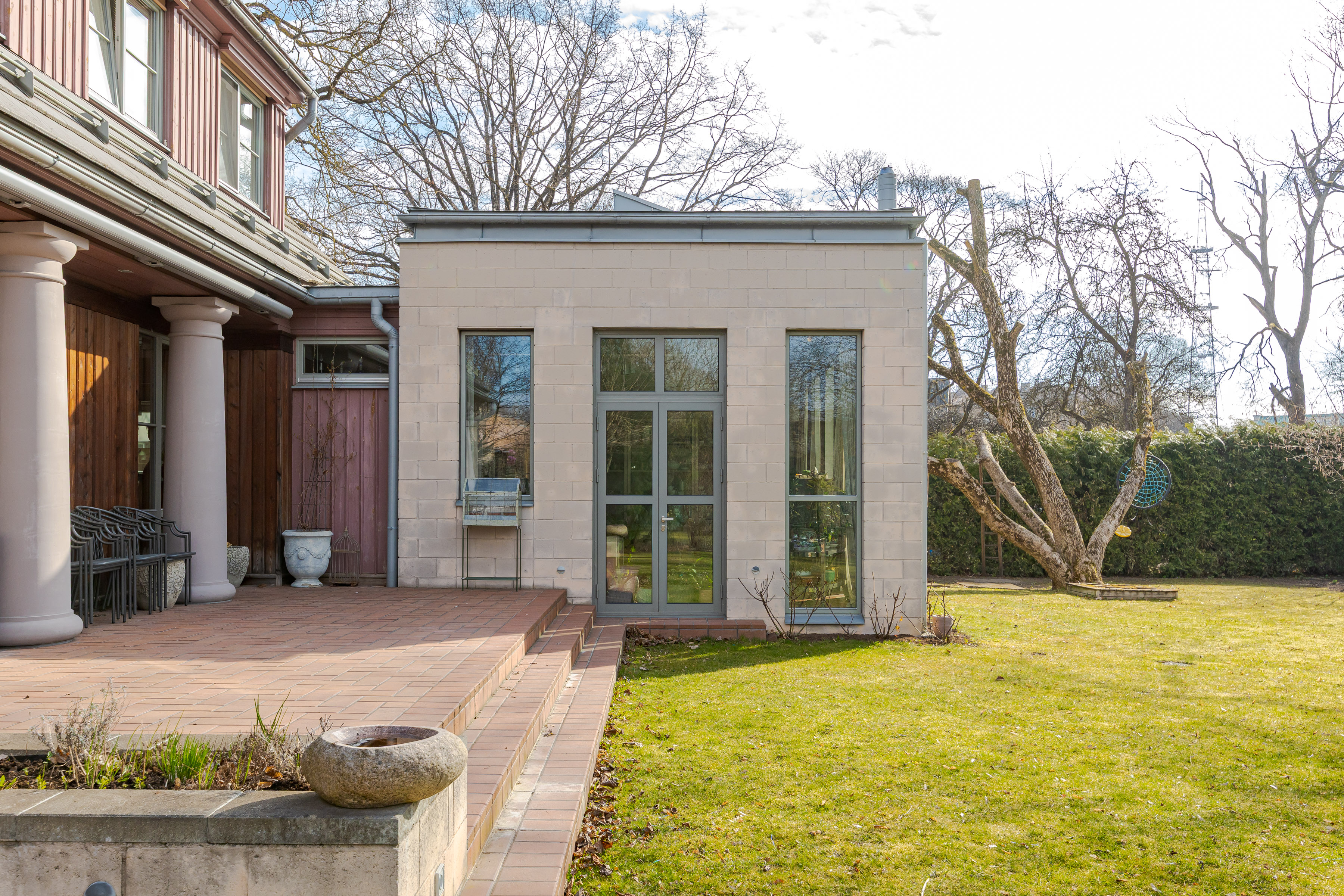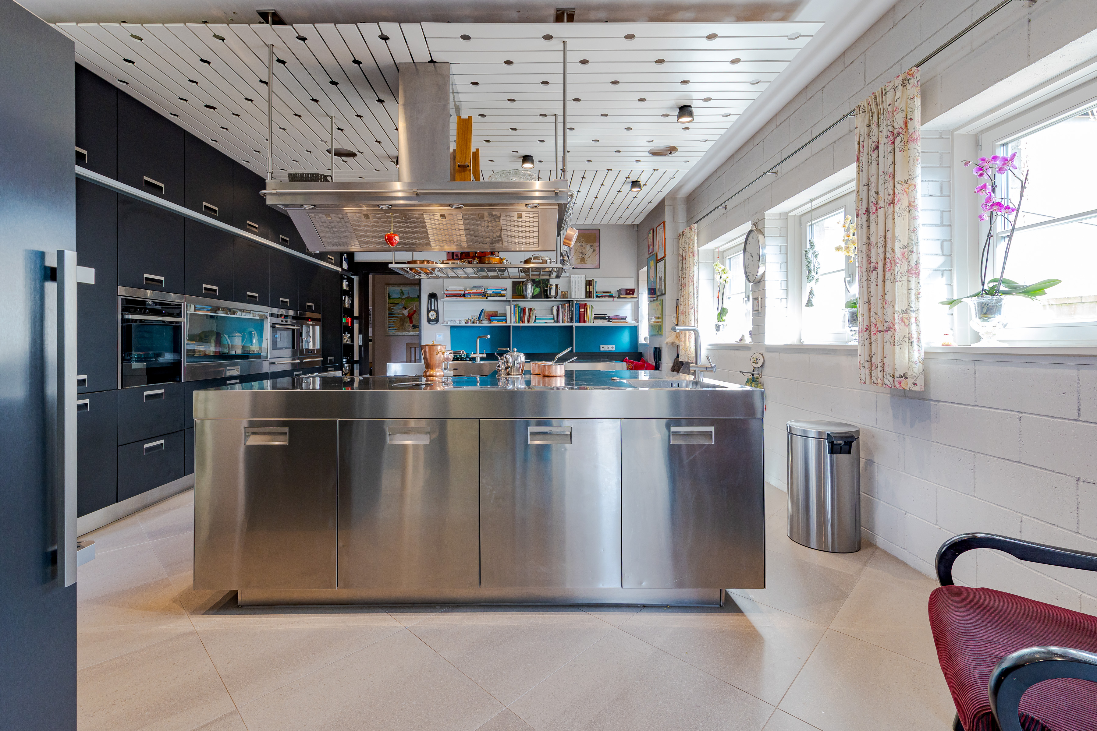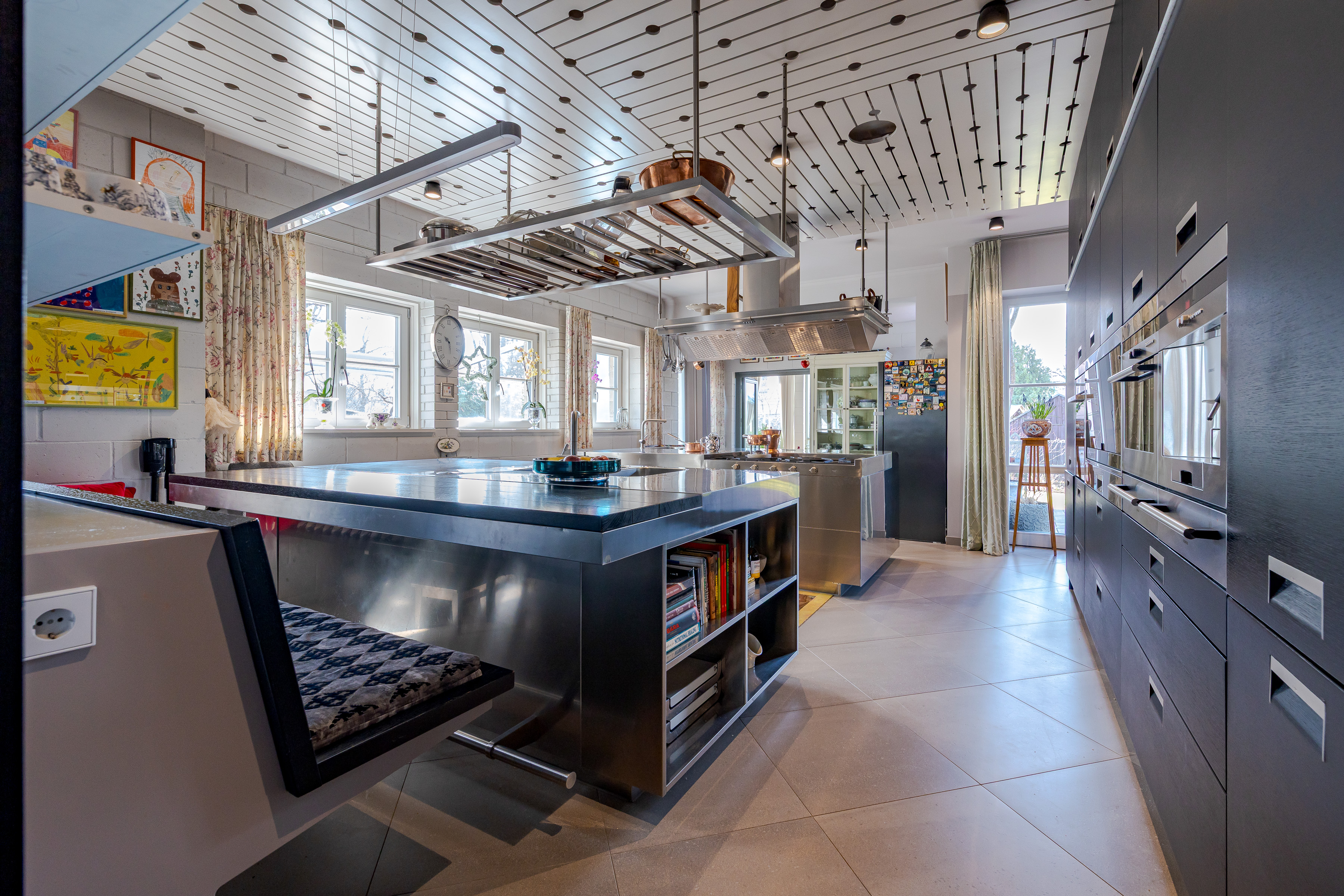 The house is created for those who value quality, privacy, and attention to detail. The first floor features a spacious, light-filled living room with a fireplace, connected to the dining area and kitchen. From the living room, you can step out onto the terrace, while the kitchen leads to a glazed orangery, allowing you to enjoy the garden all year round.