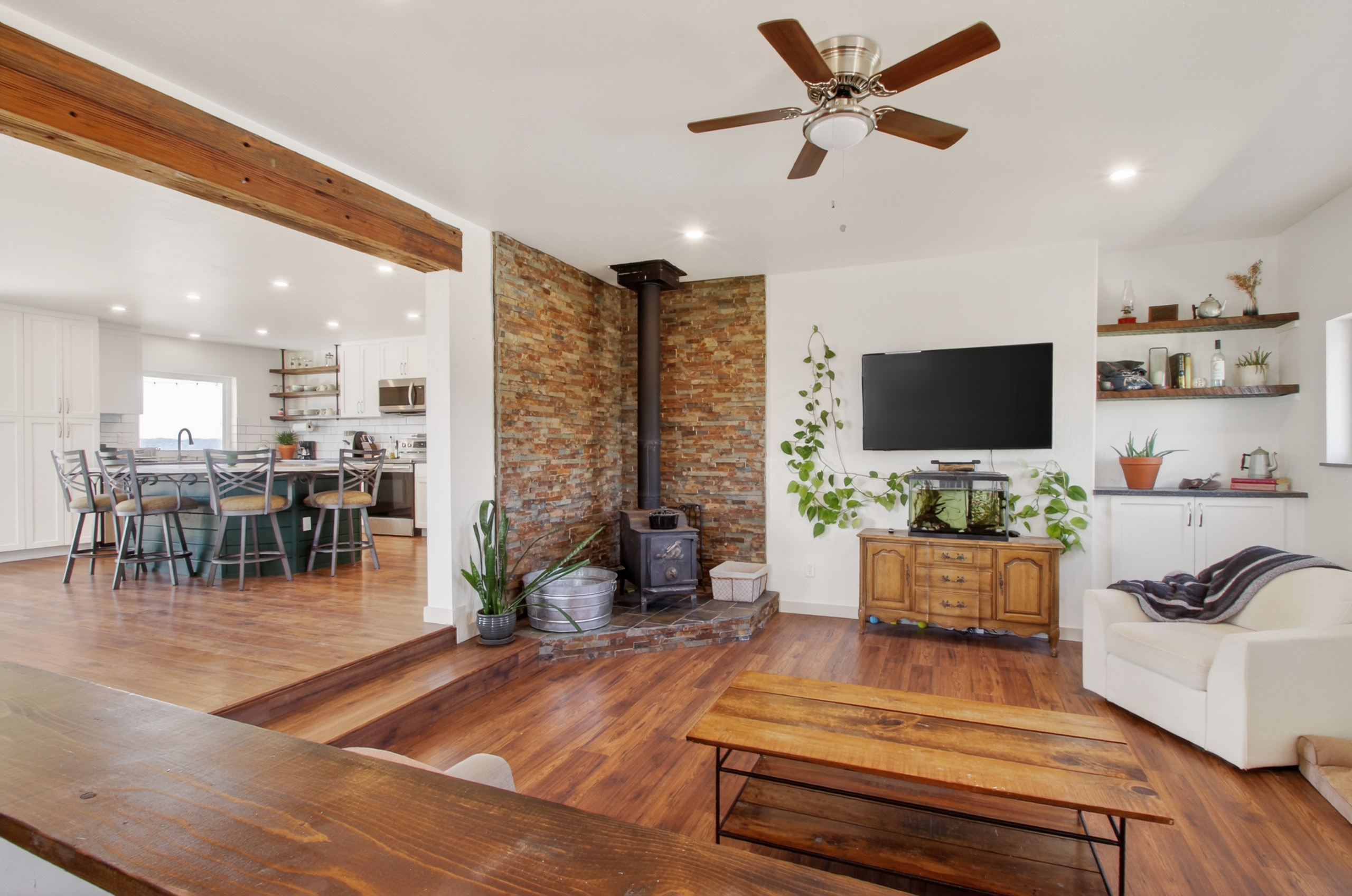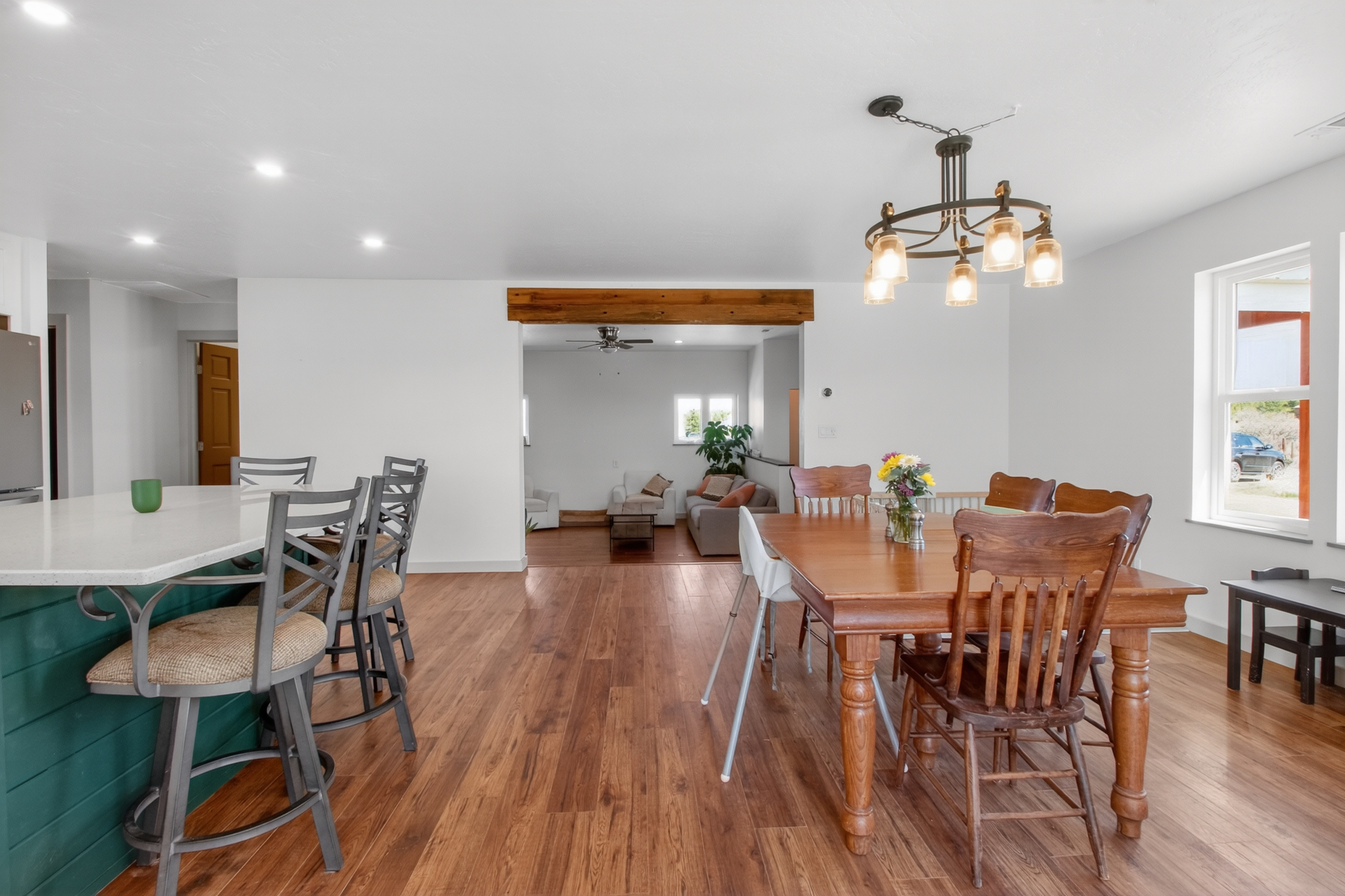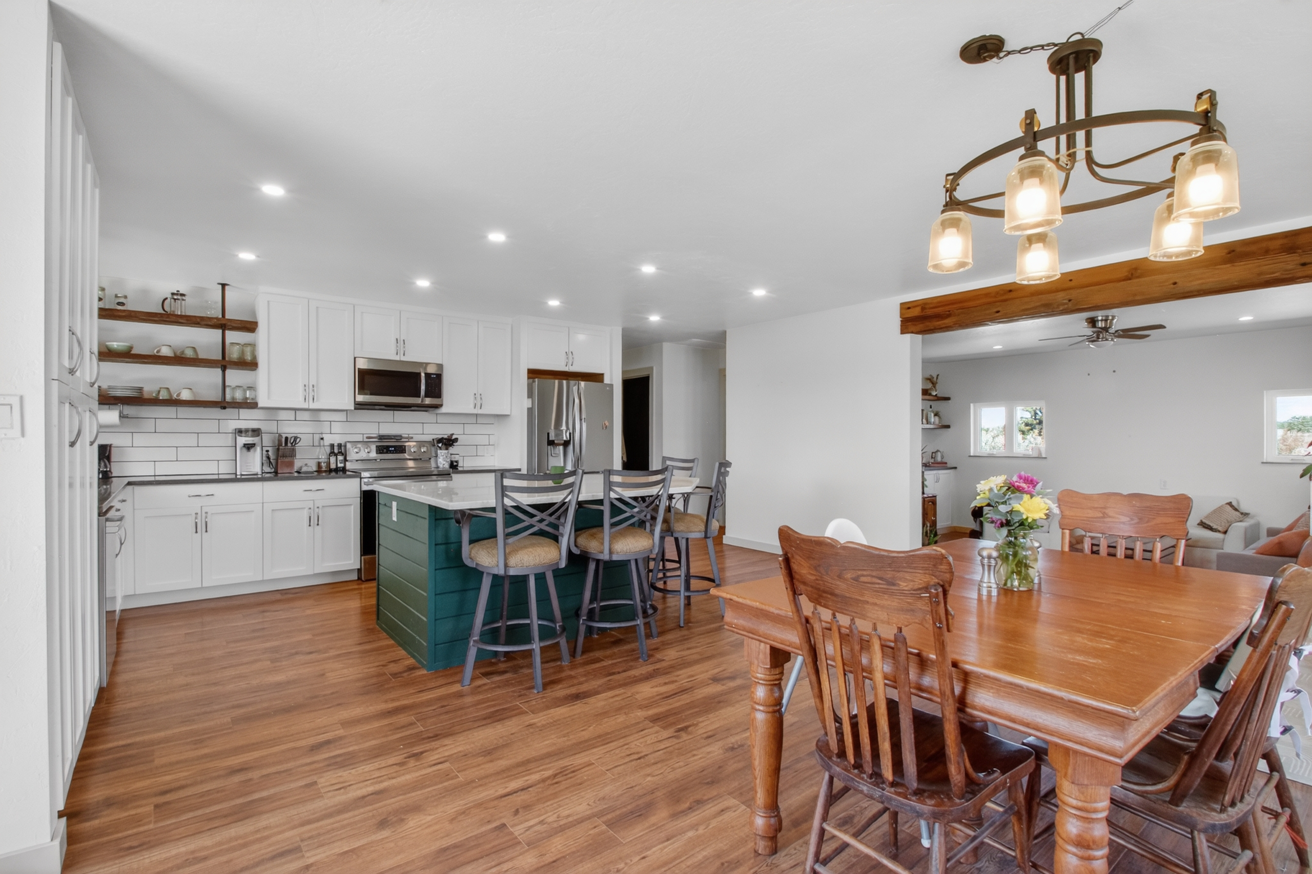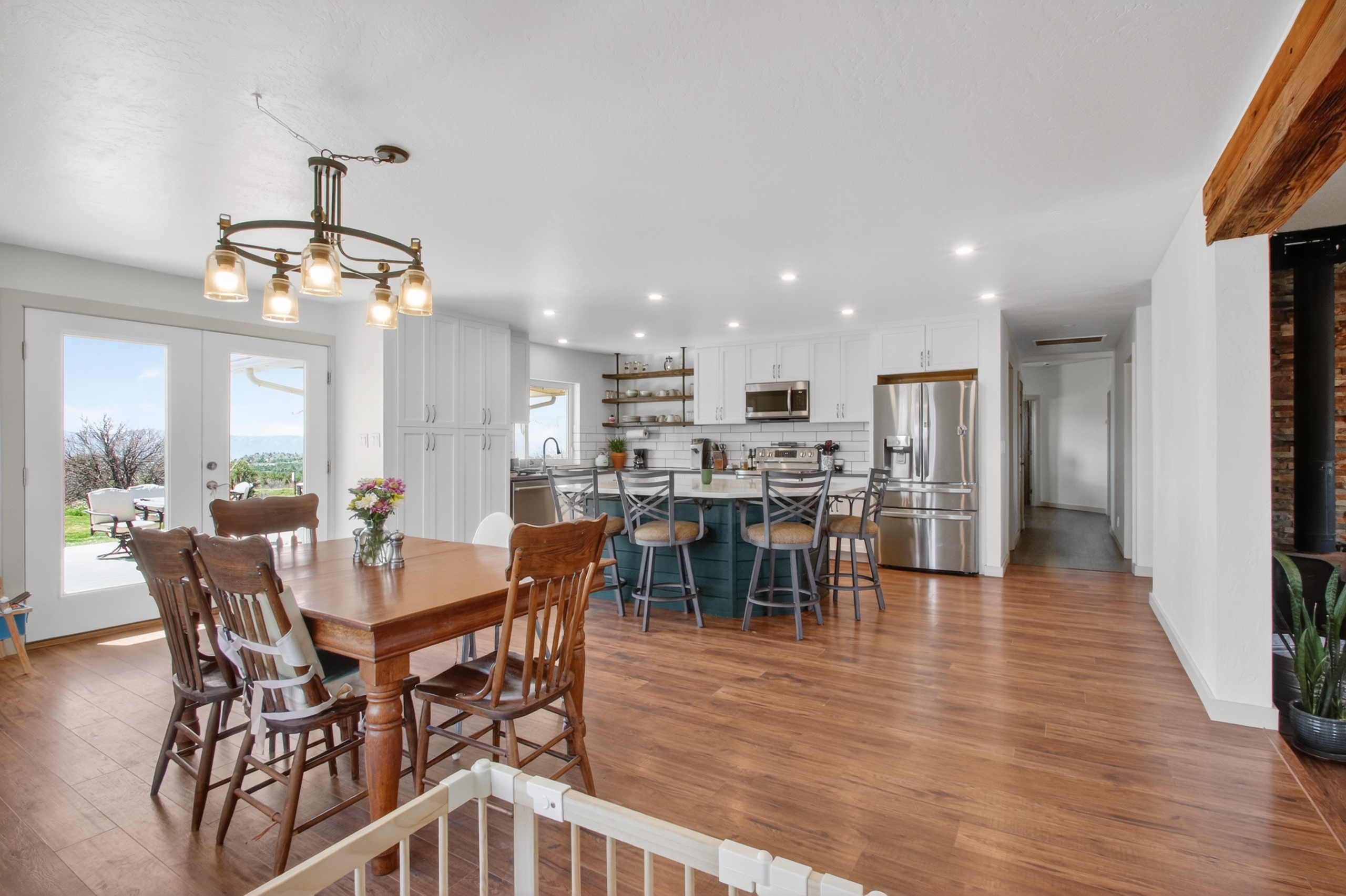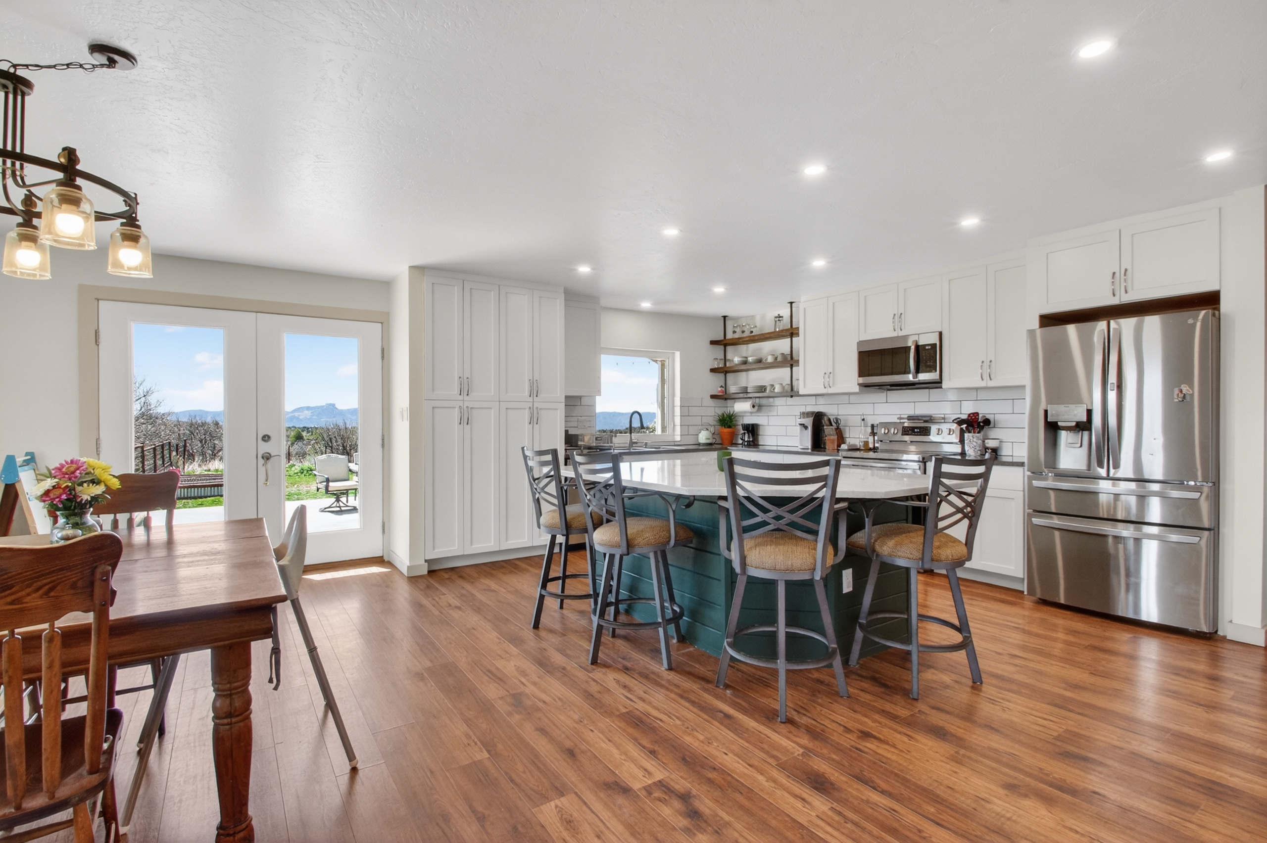OPEN HOUSE SATURDAY, APRIL 18, 11AM-1PM. Lying under the watchful eye of Sleeping Ute Mountain, this open, sunny, fully renovated home lives equally beautifully inside and out. Artfully placed windows let the views in, and 5 acres of land allow the living spaces to spill outdoors. Extending from the stunning kitchen, dining and living areas are three bedrooms--including a spectacular primary suite--a bonus flex area, two full baths, and a laundry room that will not disappoint! The 625sf workshop/garage is waiting to house your sports gear, hobby equipment or vehicles, while the full RV hook-up is ready for guests. With no HOA and plenty of land to play on, the possibilities here are endless. You can ponder them from the hot tub or while gathered around the fire pit. Located in between Mancos, Dolores and Cortez, Summit and McPhee Reservoirs, and vast amounts of public lands, this home is perfectly situated to be your Adventure Headquarters.