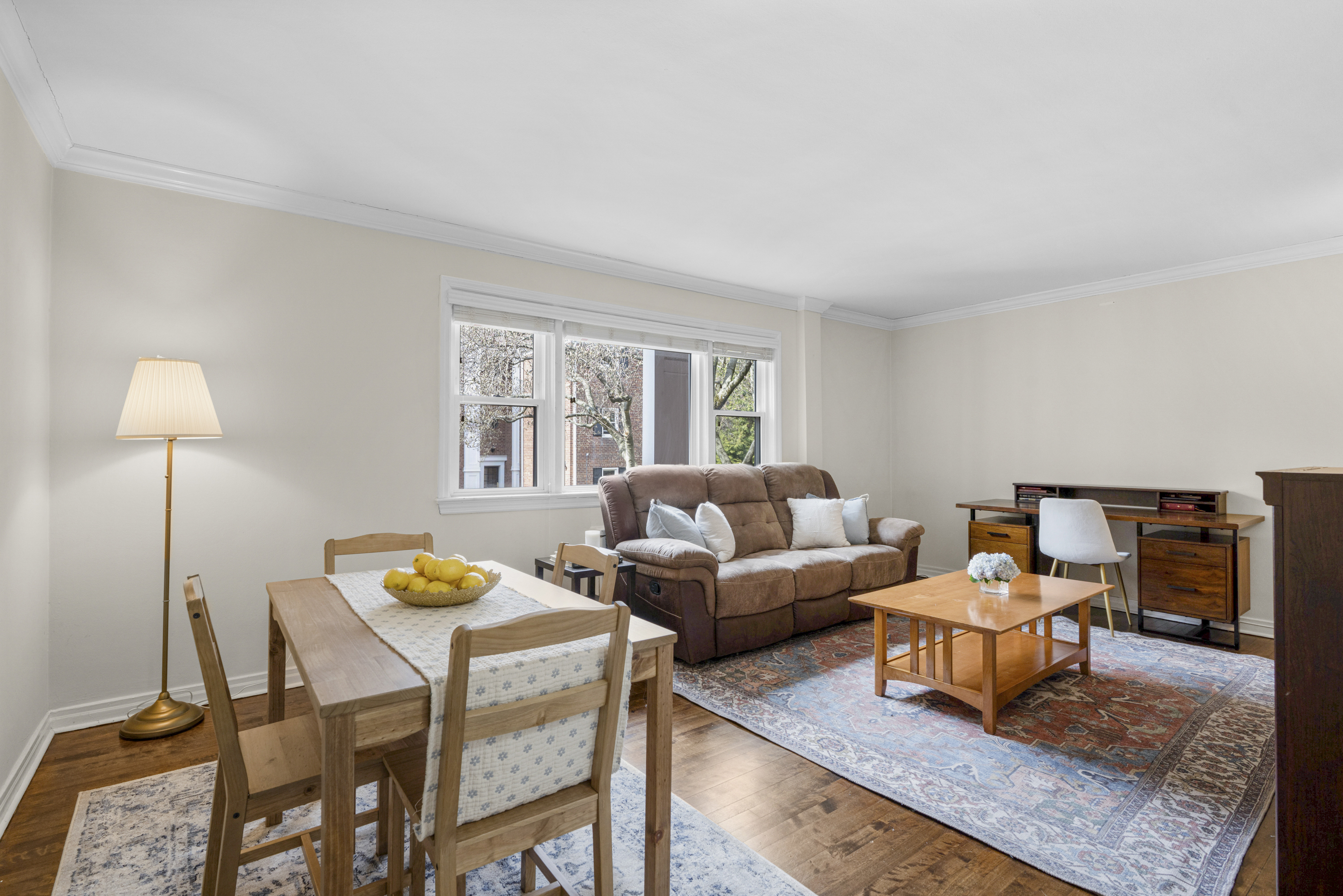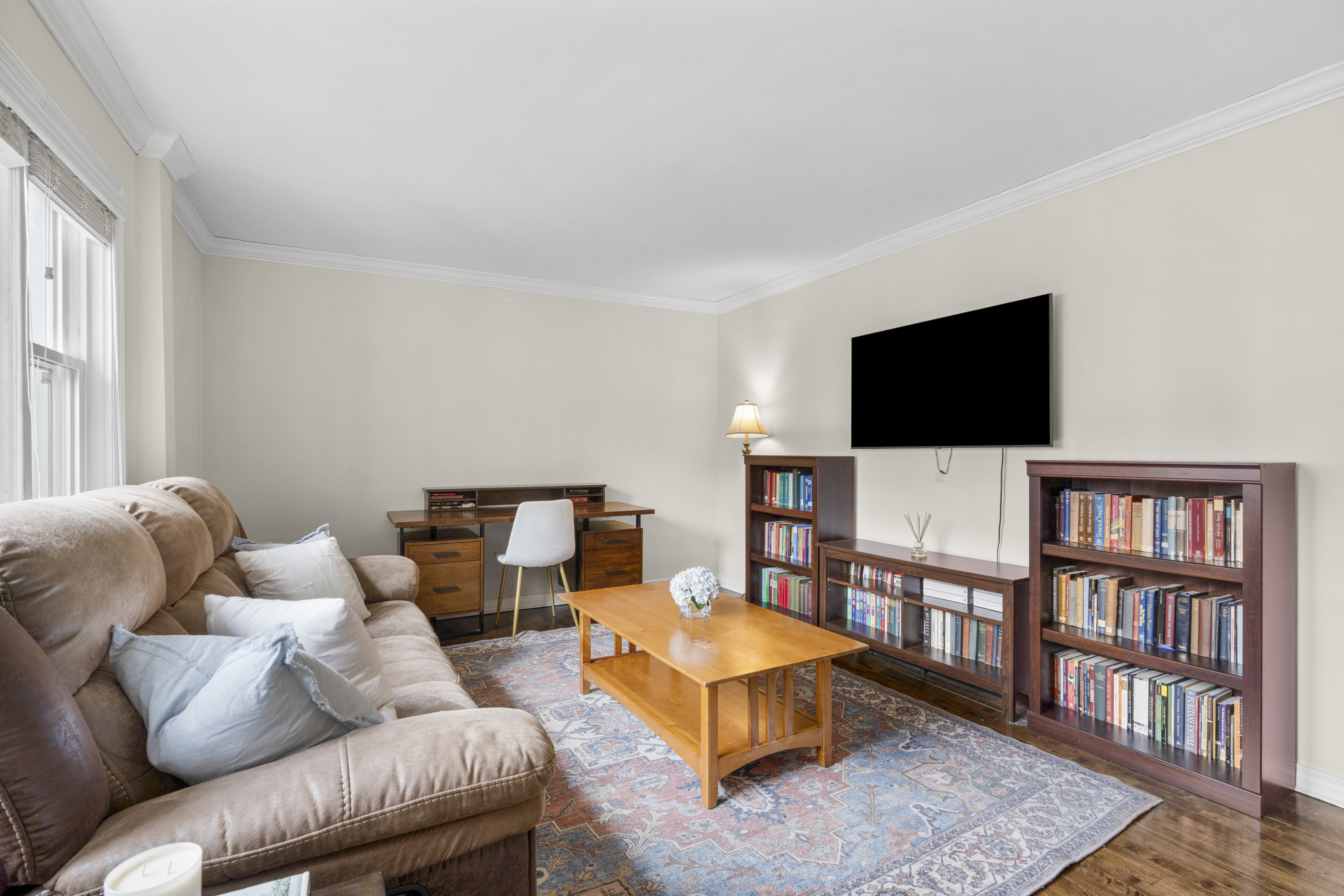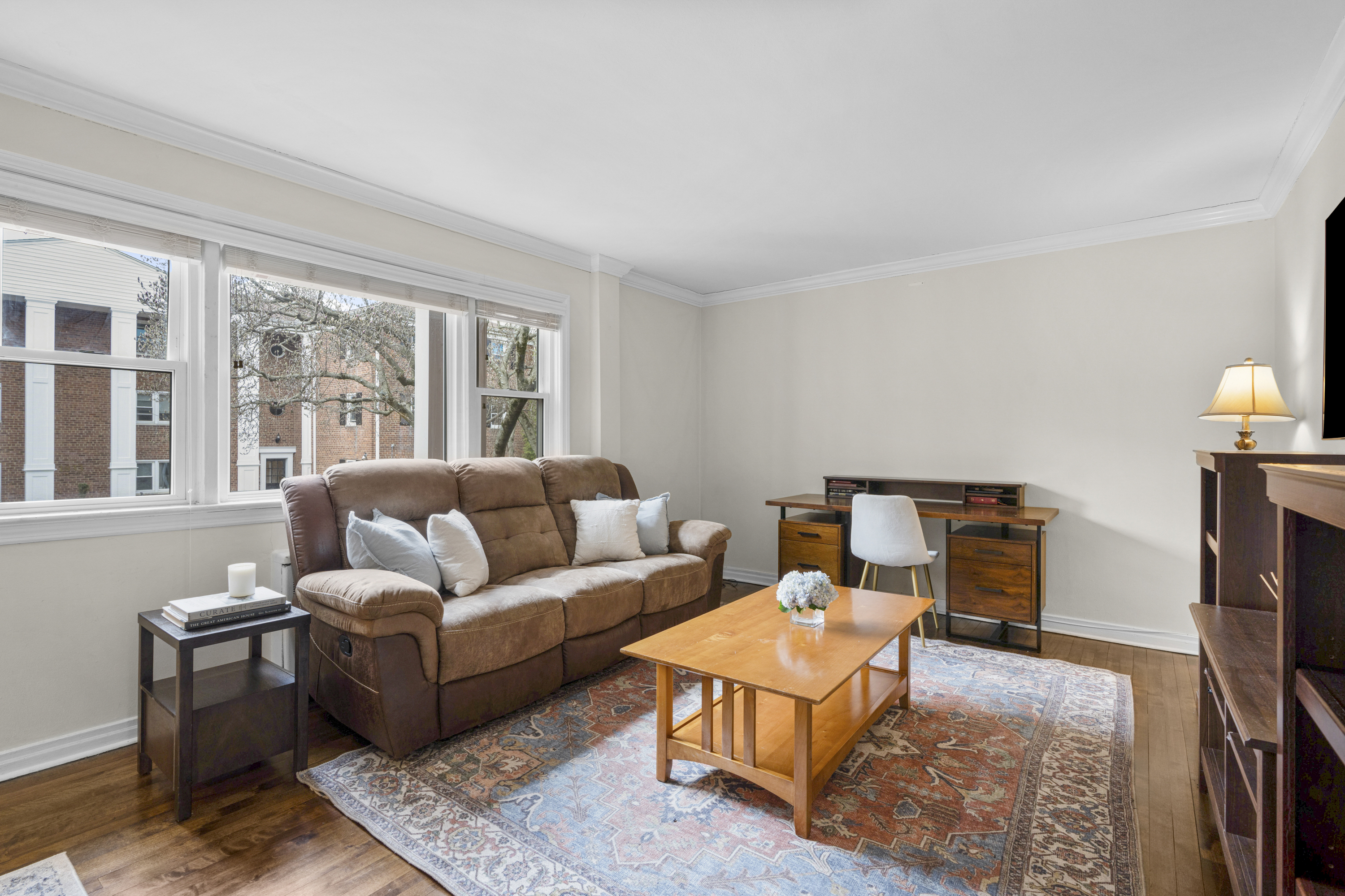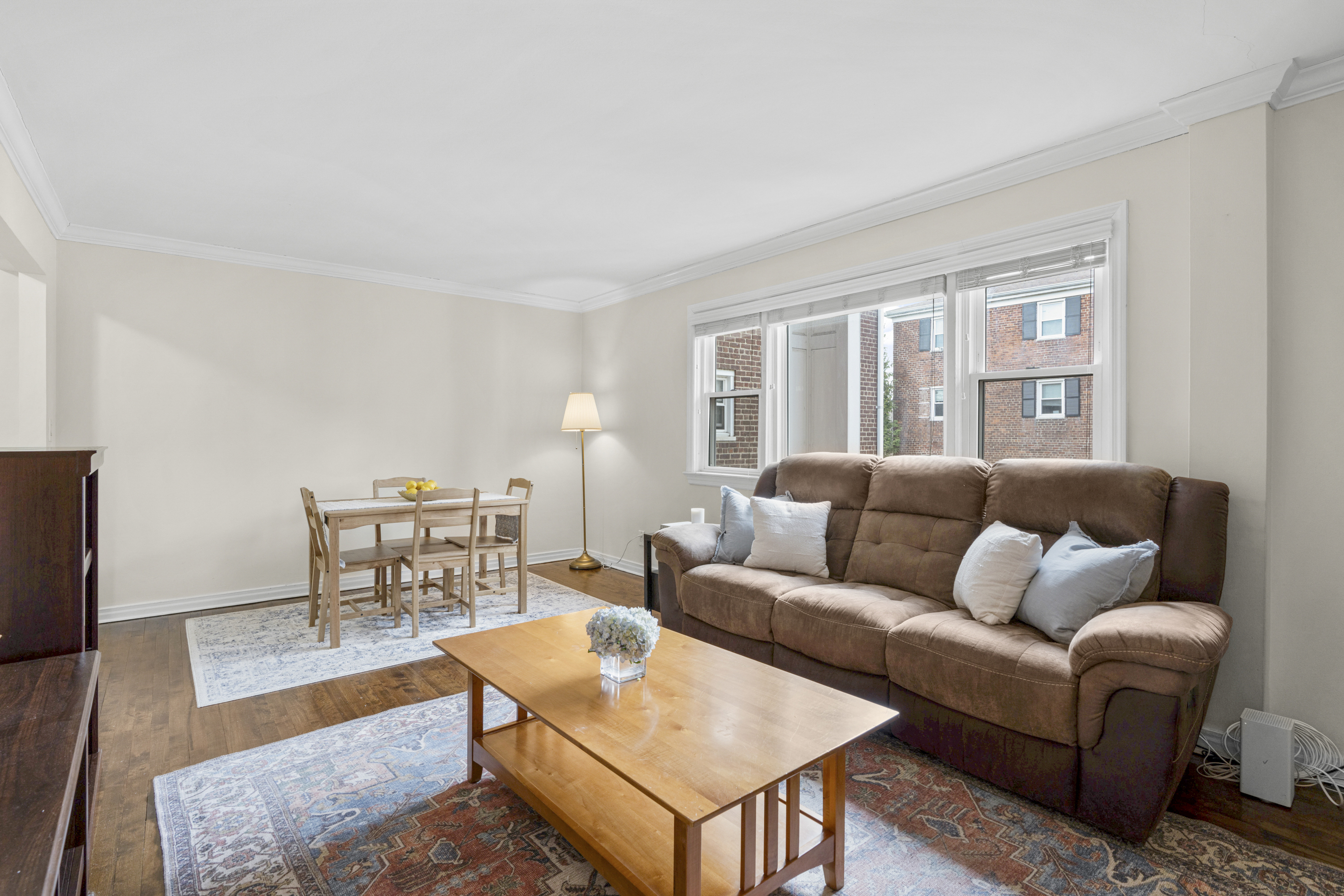 This sun-filled residence is ideally located in the heart of Larchmont, offering a gracious layout with an updated kitchen, a beautifully renovated bath, and a spacious living and dining area. Thoughtful details throughout include great closet space—two in the bedroom, along with linen and entry closets—custom moldings, and hardwood floors in excellent condition. Well maintained and truly move-in ready, the co-op is just moments from village shops, restaurants, parks, and the train, offering a convenient and easy lifestyle. Monthly maintenance includes heat and hot water.