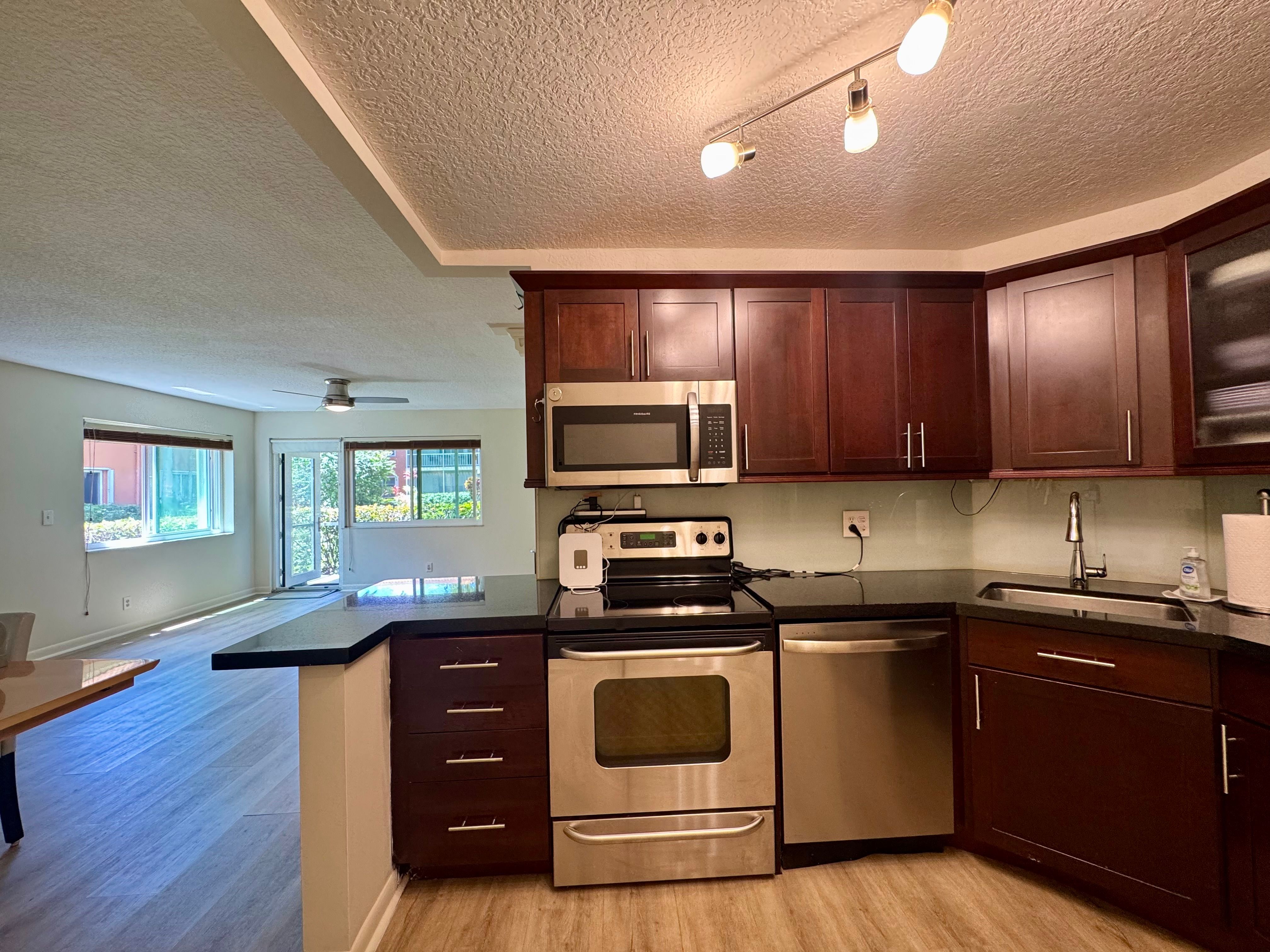 Corner Unit Beauty - Light, Bright & Just Right! Welcome to this spacious 2-bed, 2-bath first-floor corner unit with a beautiful garden view. Enjoy impact windows and doors that fill the home with natural light. It's the BEST PRICED unit with the lowest HOA fees in the entire complex, making it an incredible value! Washer and dryer are allowed, giving you the flexibility to install your own and add convenience. Ideally located just minutes from the beach, major roads, top restaurants, shopping, and vibrant nightlife. The community has been recently updated with fresh paint and new carpets, creating a clean, modern feel. Great opportunity for homeowners or investors—schedule your showing today before it's gone!