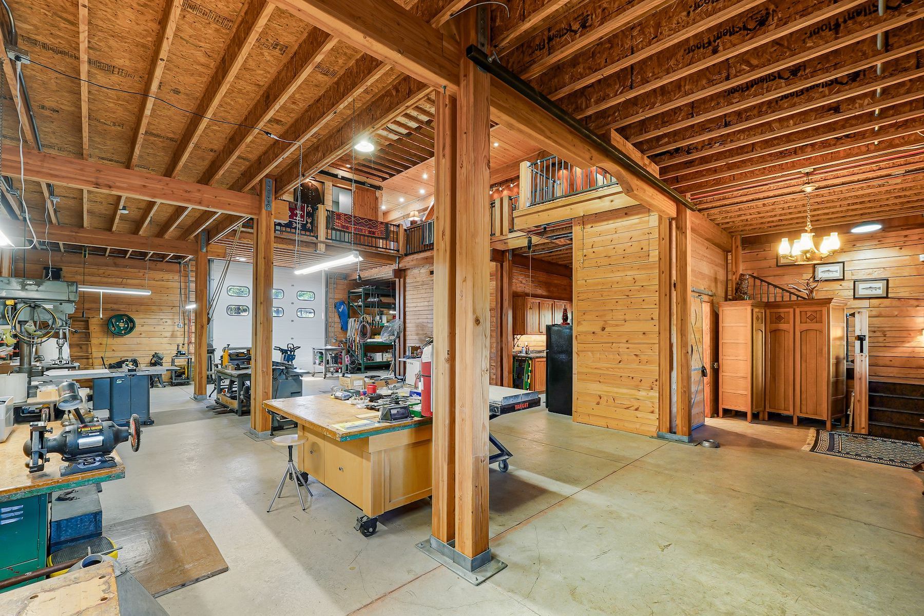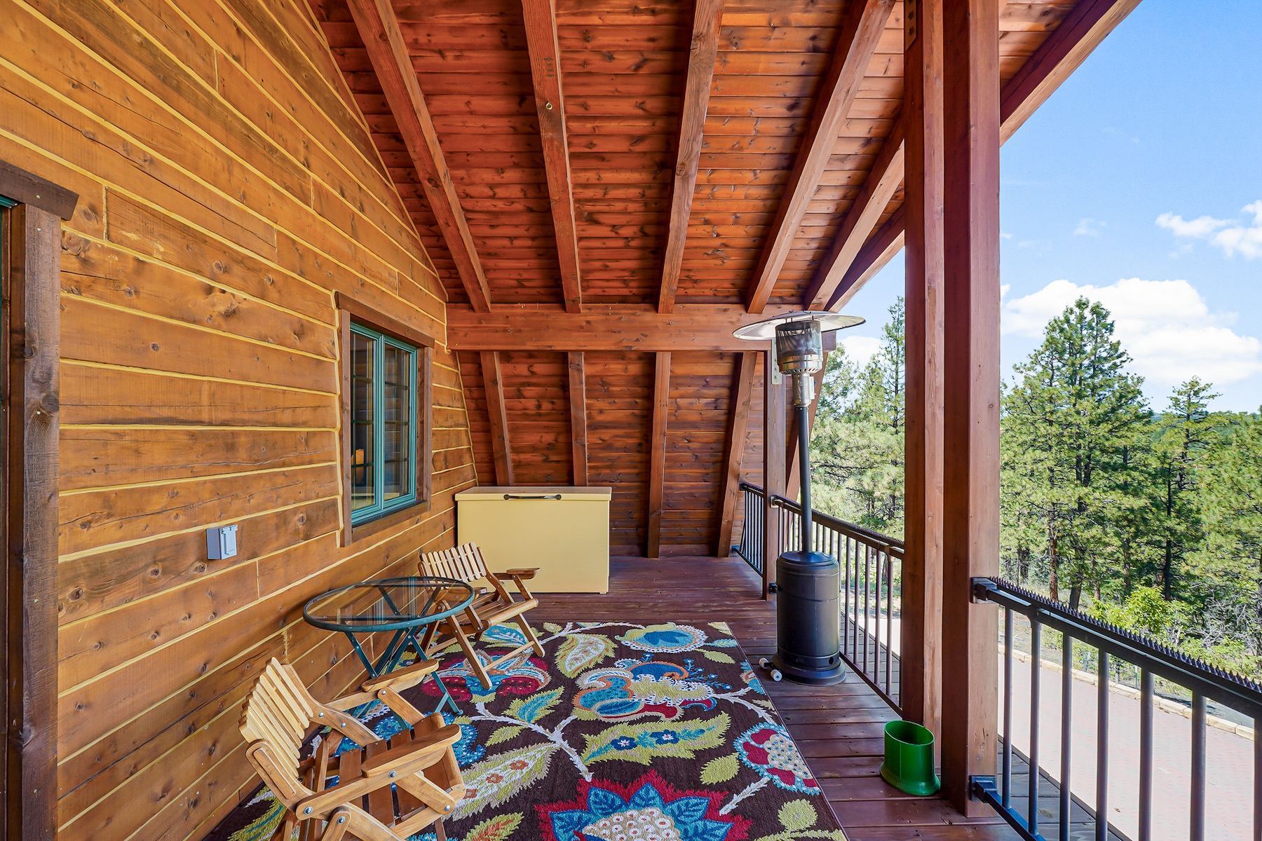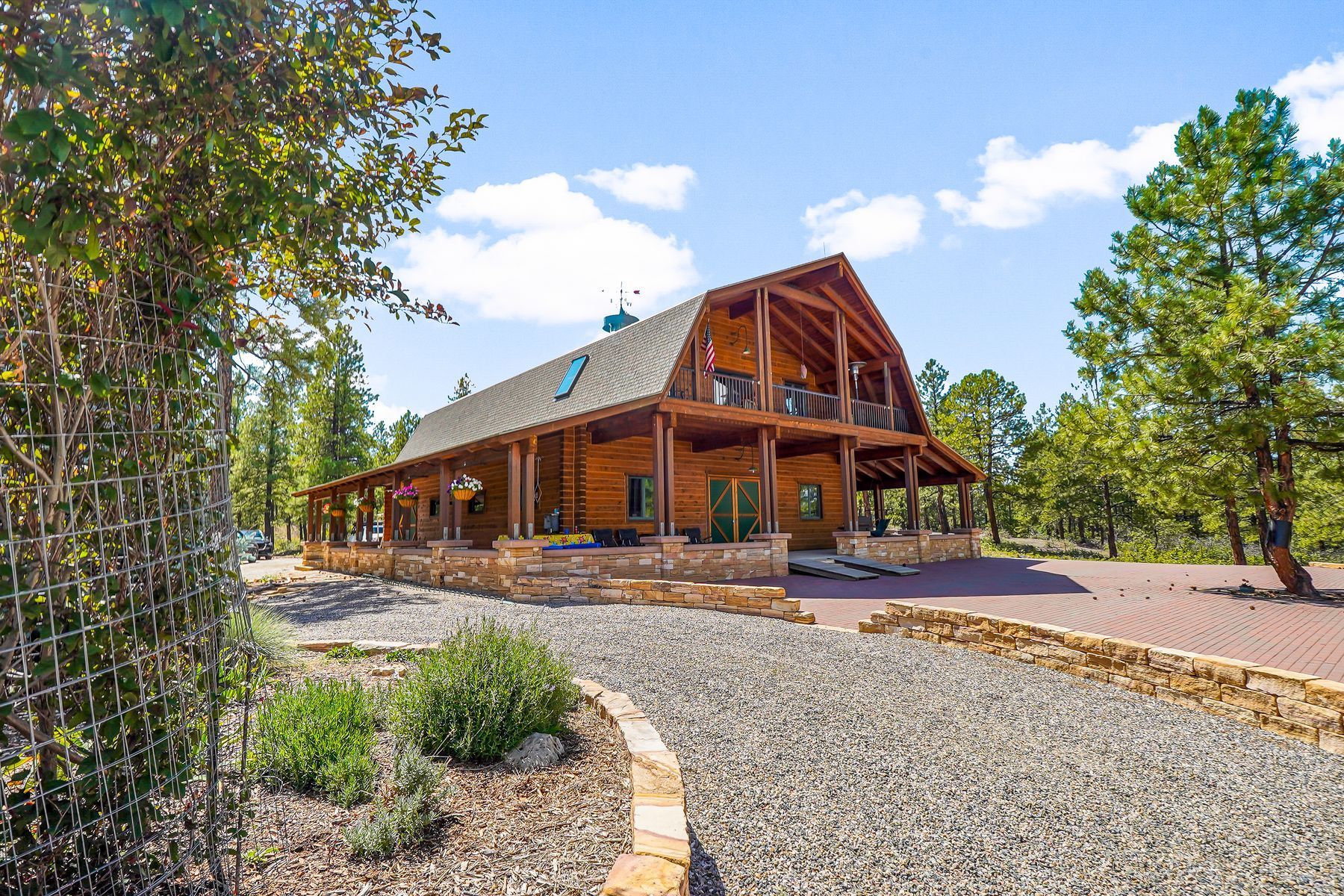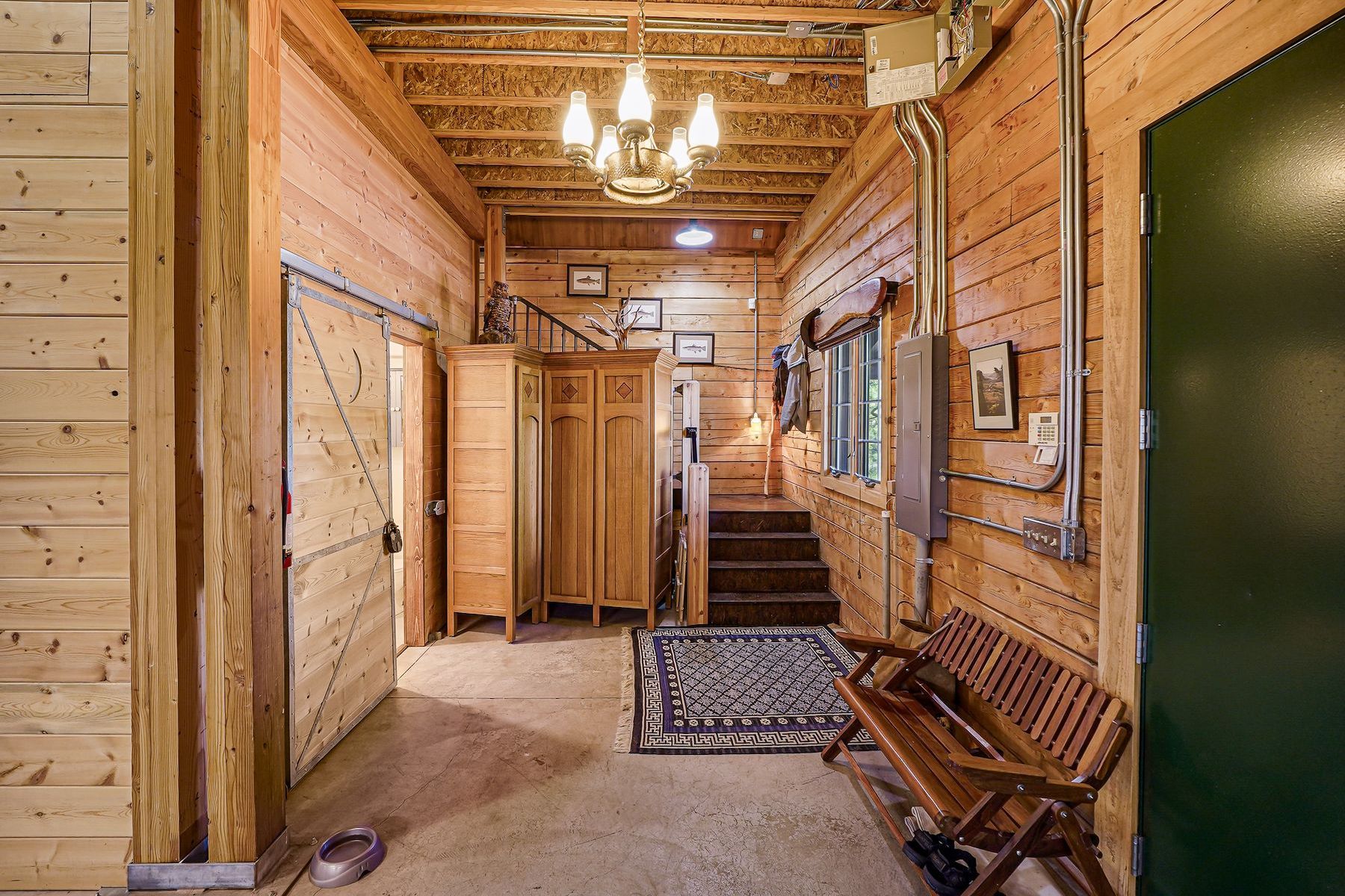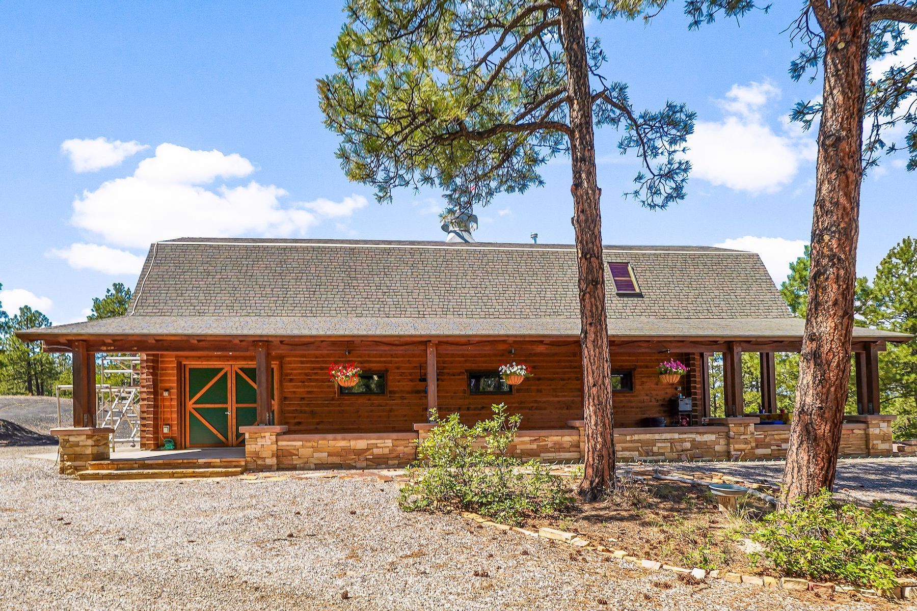 Perched on a hilltop in a secluded meadow with 270-degree mountain views, this 36-acre barndominium estate in Knolls Ranch is a true labor of love, showcasing the artistry and devotion of its master craftsman builder. Constructed with 7"x7" Spruce log and timber frame design, it is one of only seven ranches in a gated community just minutes from Highway 160 and Stevens Field Airport. Inside, every detail is custom: handmade light fixtures, hardwood floors, and handcrafted barn doors. The loft apartment includes ingenious built-ins such as cabinets on rollers and a motorized TV. The galley kitchen is finished with live-edge granite countertops, custom cabinetry. Antique Great Western 1910 gas fired parlor stove adds rustic warmth, while furnishings are included for a true turn-key experience. The barn is equally functional and impressive, with soaring 14’ garage door, radiant in-floor radiant heating, and a whole-house fan. It can easily house up to four vehicles, all kinds of toys or a large motorcoach in the shop space. 3 maple work benches, wood and metal working equipment can be included for a hobbyist or artist. Lower level has a cute bunk room and bath as well as laundry area. 240V and 120V receptacles thoughtfully located around the ceiling perimeter of the shop space. Outdoor living is highlighted by 2000 SF of covered decks on three sides that capture sweeping views of Pagosa Peak and the Continental Divide, along with a spacious paver patio large enough to host weddings, barn dances, or family gatherings. The xeriscaped grounds are supported by a 3 zone irrigation system for effortless care. A second prepped home site with gas, water, phone and electric invites the option of building a main residence while keeping the barndominium as a guest retreat. Perfect spot for a private pilot residence with the close proximity to the airport. With artisan finishes, thoughtful craftsmanship, and a setting that takes full advantage of Colorado’s mountain beauty, this property is one-of-a-kind in Pagosa Springs.