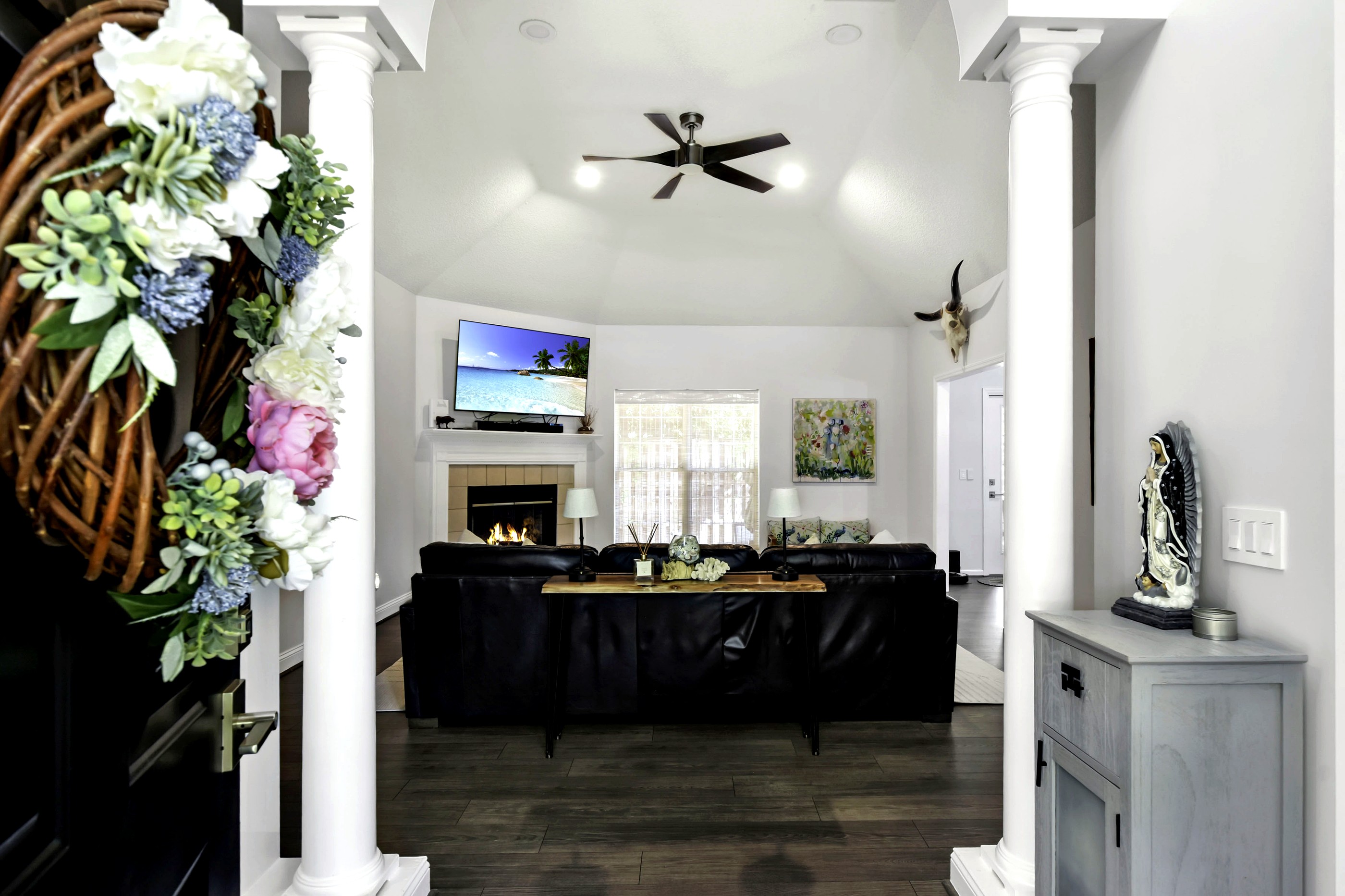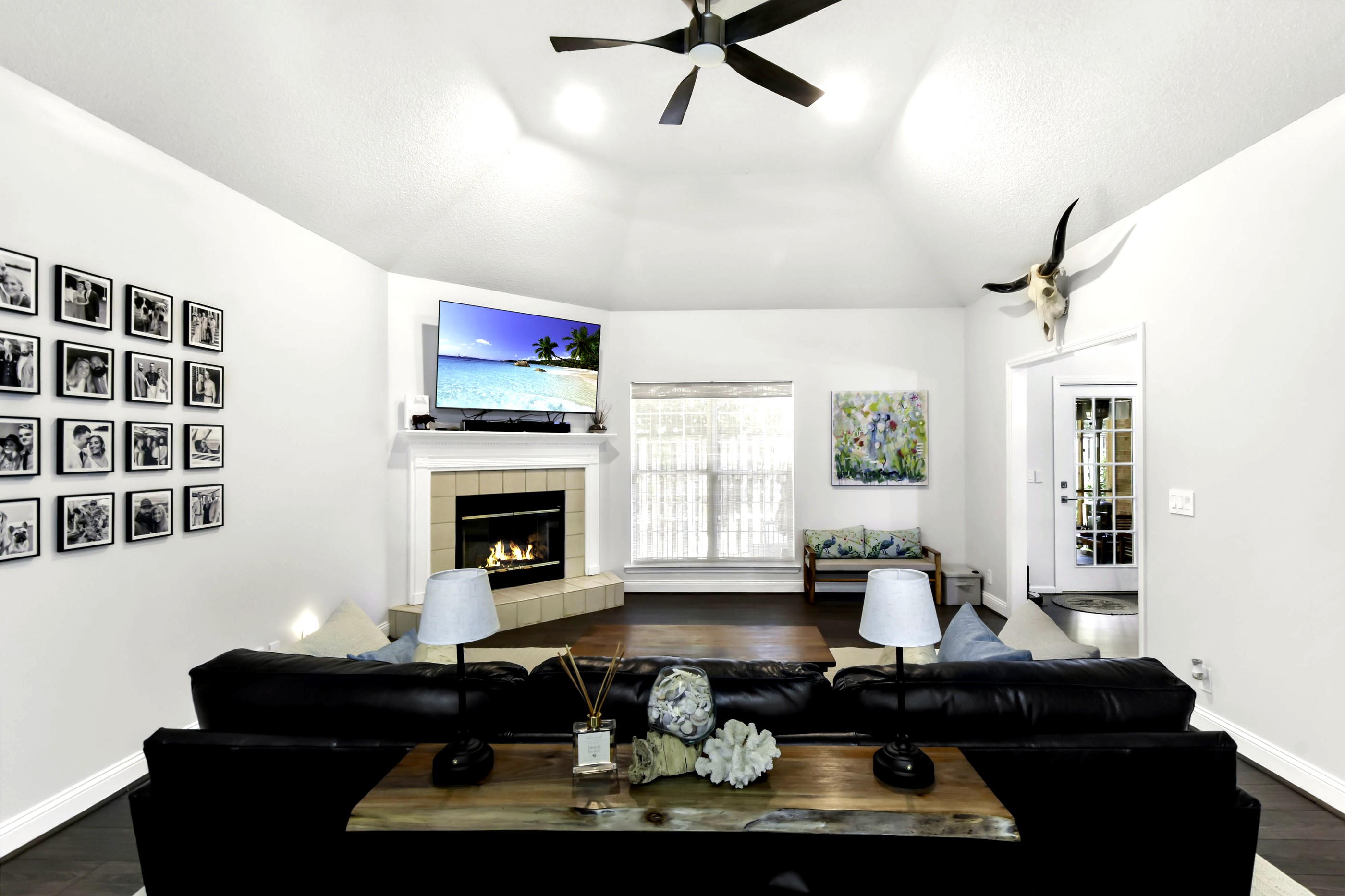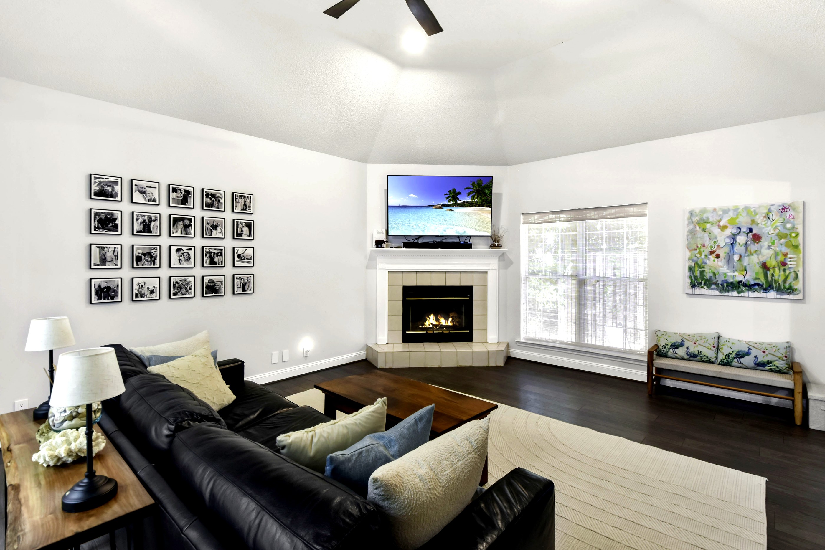 Located on the south end of St. Simons Island, this all-brick ranch has been thoughtfully updated and is move-in ready. The roof is approximately 5 years old, and the interior has been freshly painted. The home features a split bedroom floor plan, welcoming foyer with coat closet, vaulted dining room, and a spacious den with vaulted ceiling and wood-burning fireplace. The kitchen offers quartz countertops, a deep stainless sink, stainless steel appliances, and a bright breakfast room. The primary bath has been beautifully renovated, and additional updates include new flooring, light fixtures, switches, and receptacles throughout. Enjoy the screened porch, rear patio, side yard with space for a small pool, storage building, and a 2-car garage with Shark Coating and added overhead storage.