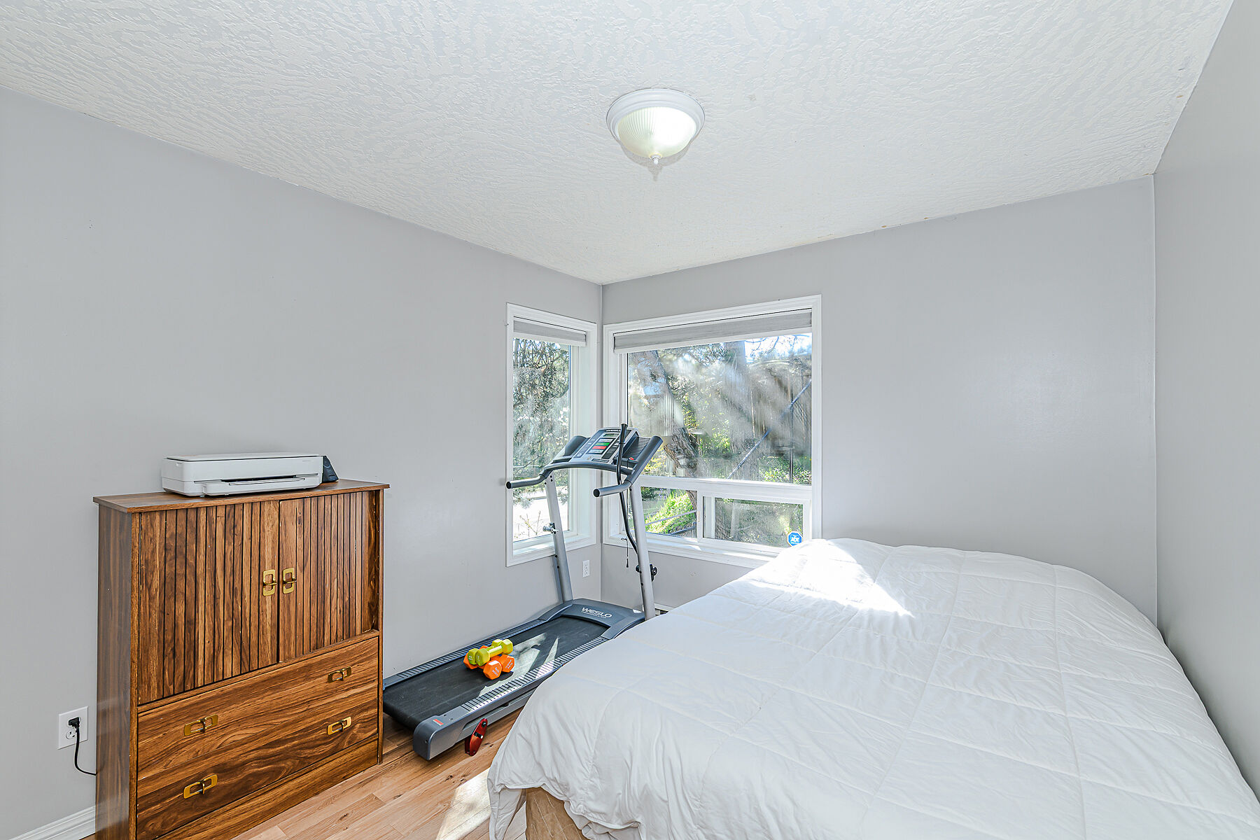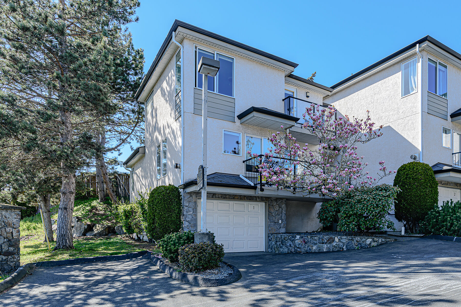 Sunny end-unit townhome offers three bedrooms plus media or hobby space and two full bathrooms. The bright main level featuring vaulted ceilings in the spacious kitchen and breakfast nook, a dining room opening to the BBQ deck, and a cozy living room with a gas fireplace. The sunny primary suite boasts a large ensuite and private deck, while the oversized garage and workshop are perfect for car enthusiasts, hobbyists, or extra storage—accommodating multiple vehicles and providing additional exterior parking. The unfinished basement is ideal for a rec room, media room, or home gym. Enjoy unbeatable location steps from Thetis Lake, the Galloping Goose Trail, and Juan de Fuca Rec Centre, with easy access to Victoria General Hospital, downtown Victoria, Langford, and top schools.