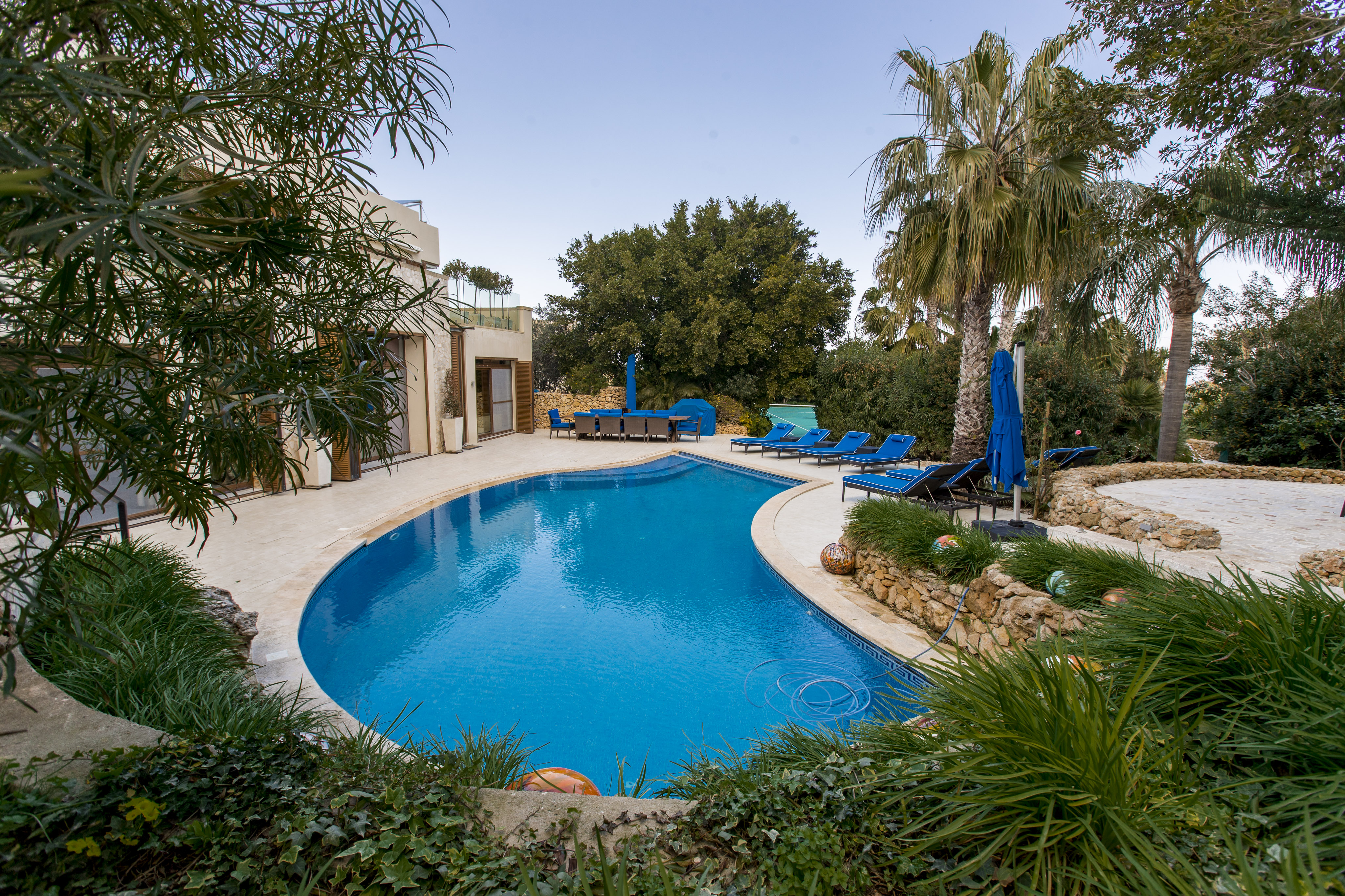 Superb! This one of a kind 400-year-old meticulously converted House of Character is located in the north eastern traditional town of Xaghra in Gozo, Malta's smaller sister island. Beyond a typical unassuming timber door, this 3123 sqm resplendent property opens onto a lovely entrance which gives out onto a bright and spacious private courtyard, one of three courtyards bathing the stately rooms in natural light. With an exquisite blend of old and new, with the property having been extended further in recent years, a gorgeous lounge leads out to what makes this home a veritable gem. A massive chlorine-free swimming pool with an exceptional sundeck, external guest toilet and shower amidst extensive lounging areas, all snuggled in between landscaped mature gardens, an amazing tennis court and a kitchen garden that is highly maintained to produce vegetables and fruit throughout the year, lend to make this residence truly a rare find. At ground floor level one is also met with a dining room with a massive table, which can be transformed into a billiards table, a fully equipped kitchen breakfast room, both of which lead to the swimming pool area, a great library with an ensuite bathroom and a small private patio, a wellness room, and a full bathroom, which can be converted to two guest bedrooms, a separate cinema room together with a guest WC. The sleeping quarters on the first level are accessible from an old traditional stone stairwell in the entrance hall together with a second stairwell leading from the lounge. The master bedroom with its own lavish terrace overlooking the pool and gardens is complimented with an adjoining bedroom/office together with a walk-in closet and bathroom, which from its elevated position, enjoys views all the way to Sicily throughout the day and night. The master suite is also accessed through a hidden circular stairwell which leads to the kitchen. The themed India and China bedrooms both enjoy en-suite bathrooms with the India room having a Juliet balcony and walk-in wardrobe. Across the landing overlooking the main courtyard, is a fully equipped laundry with access to the Sunshine Bedroom and en-suite bathroom at the top of the house which is surrounded by the largest private patio and sundeck. This Residence is being offered exquisitely furnished, together with stunning artefacts and so much more. Traditional features include thick walls, wooden beams, arches, niches and a well. A registered borehole and access to the gardens from a back entrance, a separate parcel of land, and two perpetually leased garages housing four cars, fifty metres away from the home complete this freehold property. Moreover, this residential property offers infinite possibilities for conversion into a mixed-use commercial entity. The property currently features a vegetable garden that, subject to permits, can be developed and extended to the main residence, transforming it into a lavish BnB, Boutique Hotel, or a versatile commercial abode. The property's potential and viability are best understood by viewing it in person, which additionally, may have tax incentives available for establishing and operating such a business concern.