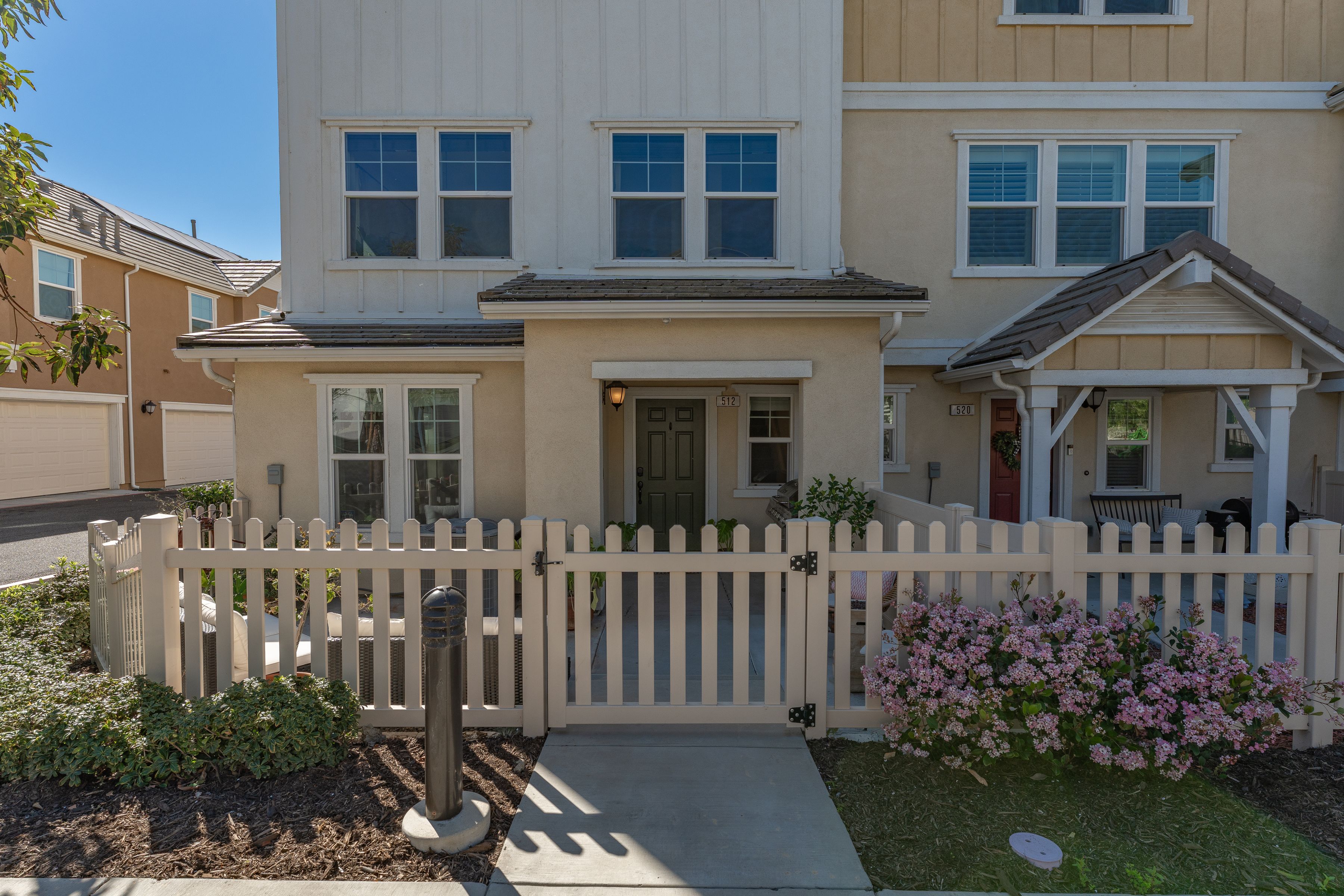 Welcome to 512 Mulberry Lane, an exceptional corner unit townhome offering elevated living across three thoughtfully designed levels. Completely renovated and in pristine condition, this home blends modern style with everyday functionality. Step inside to discover new flooring throughout and a versatile first-floor space currently used as a bedroom, perfect for guests, a home office, or flex living. The second level showcases the heart of the home, where an open concept living area flows seamlessly into a beautifully updated kitchen featuring a large center island with seating and an expansive walk-in pantry. Upstairs has three spacious bedrooms including a serene primary suite with an ensuite bathroom. The laundry is thoughtfully located on the second level. The property has paid-off solar and a tankless water heater. Enjoy sweeping views from multiple vantage points and the added privacy that comes with a premium corner location. Residents also benefit from HOA amenities including a pool and park. A rare opportunity to own a turnkey property that truly has it all- style, space, and an unbeatable layout.