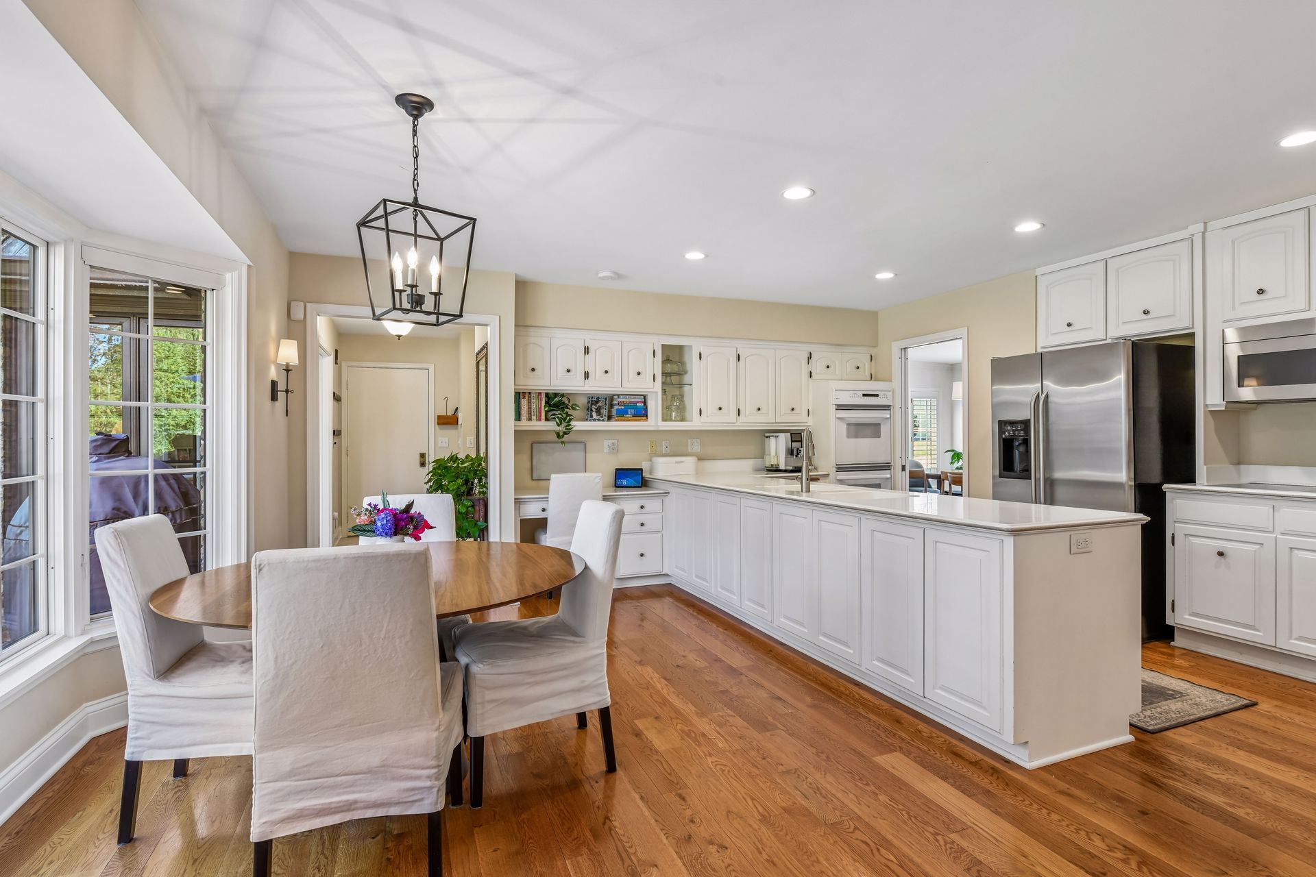 Welcome to Parkwood Knolls! This stunning home exudes warmth and character from the moment you enter inside the double front doors and are welcomed by the curved staircase to the upper-level. The main floor features hardwood floors throughout, an enormous kitchen space, powder room, comfortable and inviting office with fireplace and an amazing four-season porch amongst other expected areas (mud, living and dining rooms). Upstairs features a primary suite and two beds and bath. The lower-level has great storage, a guest bed and bath and fabulous entertaining spaces, including a full wet bar. Out back, you'll find a beautiful perennial garden. The neighborhood features parks, tennis courts, skating rinks and ponds and is just minutes from EHS, Crosstown and Interlachen Country Club. Turn key and perfectly maintained, this home is not to be missed. Welcome to Parkwood Knolls!