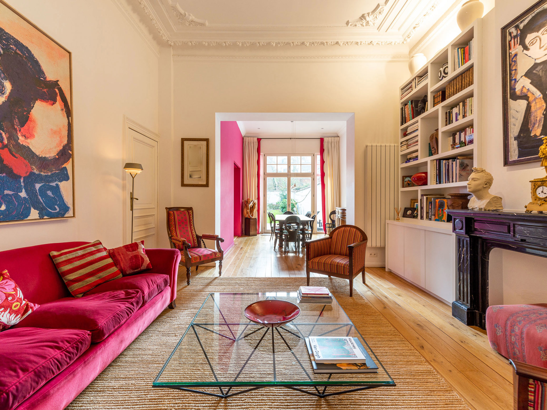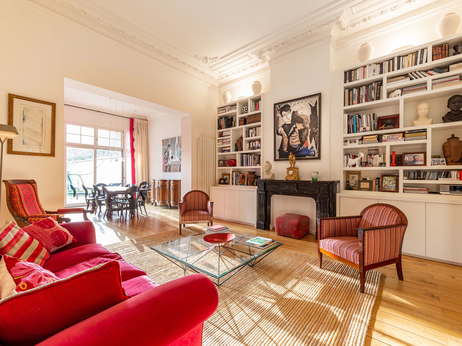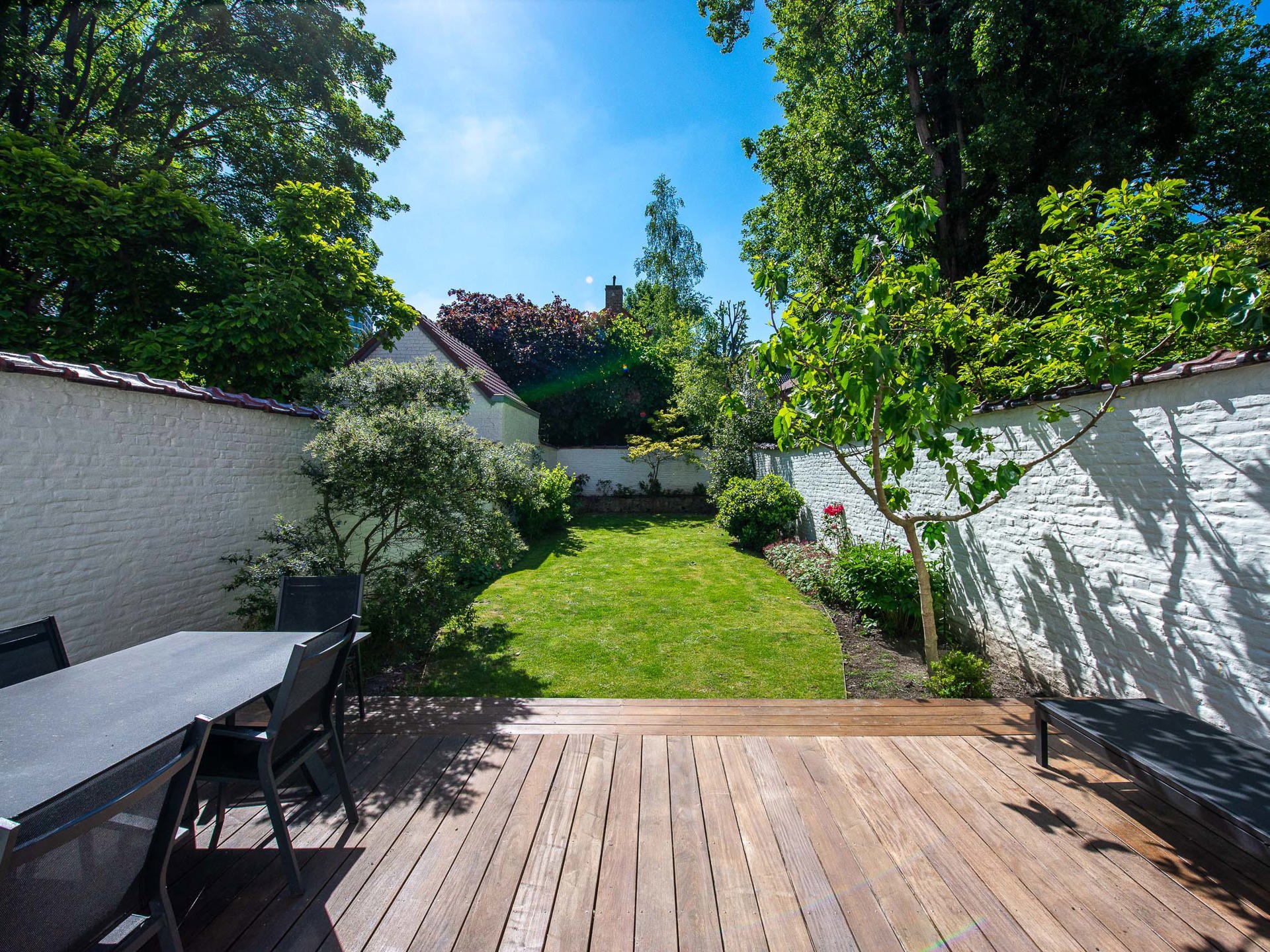 Ideally located on a quiet street between the Châtelain district and Place Stéphanie, this elegant neoclassical townhouse, with a gross floor area of approximately 369 m² according to the Energy Performance Certificate (EPC), was built at the end of the 19th century. Completely renovated in 2011, it offers five bedrooms and a pleasant southwest-facing city garden. The house opens onto a spacious entrance hall leading to beautiful reception rooms with a fireplace, a living room, and a dining room with access to the terrace and garden. The open-plan kitchen harmoniously complements this welcoming living space. On the first floor, the master suite comprises a dressing room, a full bathroom, a sitting room, and a bedroom overlooking the garden. On the second floor, two spacious bedrooms share a separate shower room. The third floor offers a bedroom with an en-suite bathroom, a kitchenette, and an attic space. The house has retained its magnificent period features (moldings and high ceilings) which blend perfectly with more contemporary finishes. Other: cellars, alarm system, double glazing, water softener, electric shutters, and air conditioning in the master bedroom. EPC: F The Châtelain area is particularly sought after for its proximity to the city center and the Bois de la Cambre park. For further information, please contact Mélody Bingoni at +32 (0) 2 640 08 01.