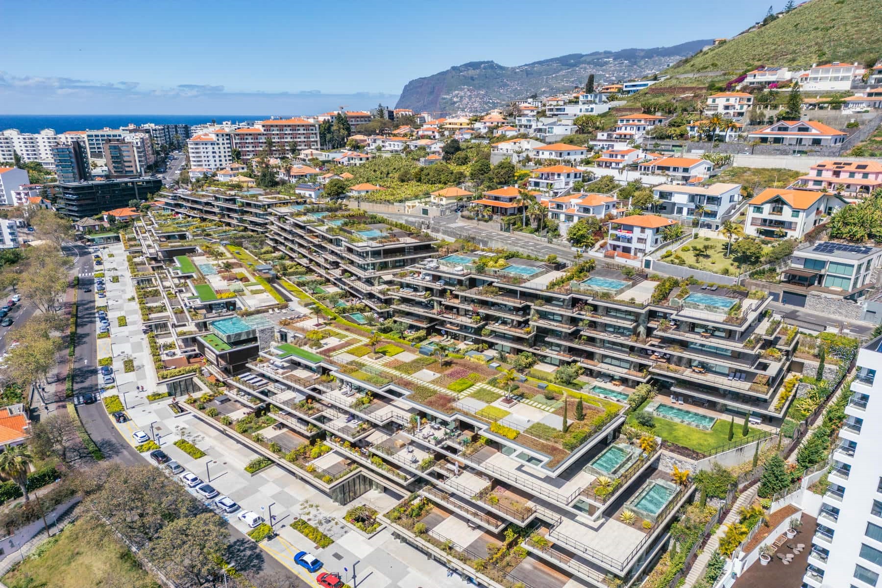 In one of the most prestigious areas of the city, where you can breathe tranquility and the vastness of the Atlantic Ocean, the Savoy Residence | Monumentalis is born, a sophisticated and timeless real estate project. Overlooking the sea, with squares, gardens, a playground, and other recreational areas, it features an exclusive residential zone and a commercial area. It comprises 147 apartments, ranging from 1 to 4 bedrooms, with definitive sea views, and 20 commercial spaces. Facing south, this development offers apartments with private pools, terraces, and gardens. It includes a common infinity pool, relaxation and exercise areas, covered parking in BOX, a 24-hour reception, and a doorman. It also features 3,500 square meters of common landscaped areas, with sun decks and water mirrors. The integration with nature is paramount in the project. From the exposed concrete of the facades to the paired stone walls on the sides of the buildings, the various shades of green, characteristic of the endemic forest of the archipelago, take center stage in the many landscaped spaces throughout the development. The completion of the project is estimated for mid-2024.