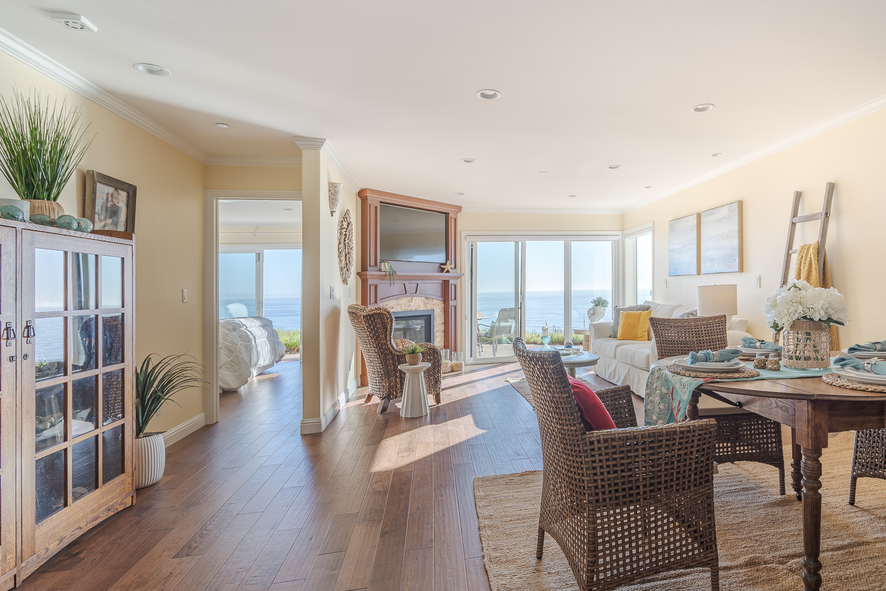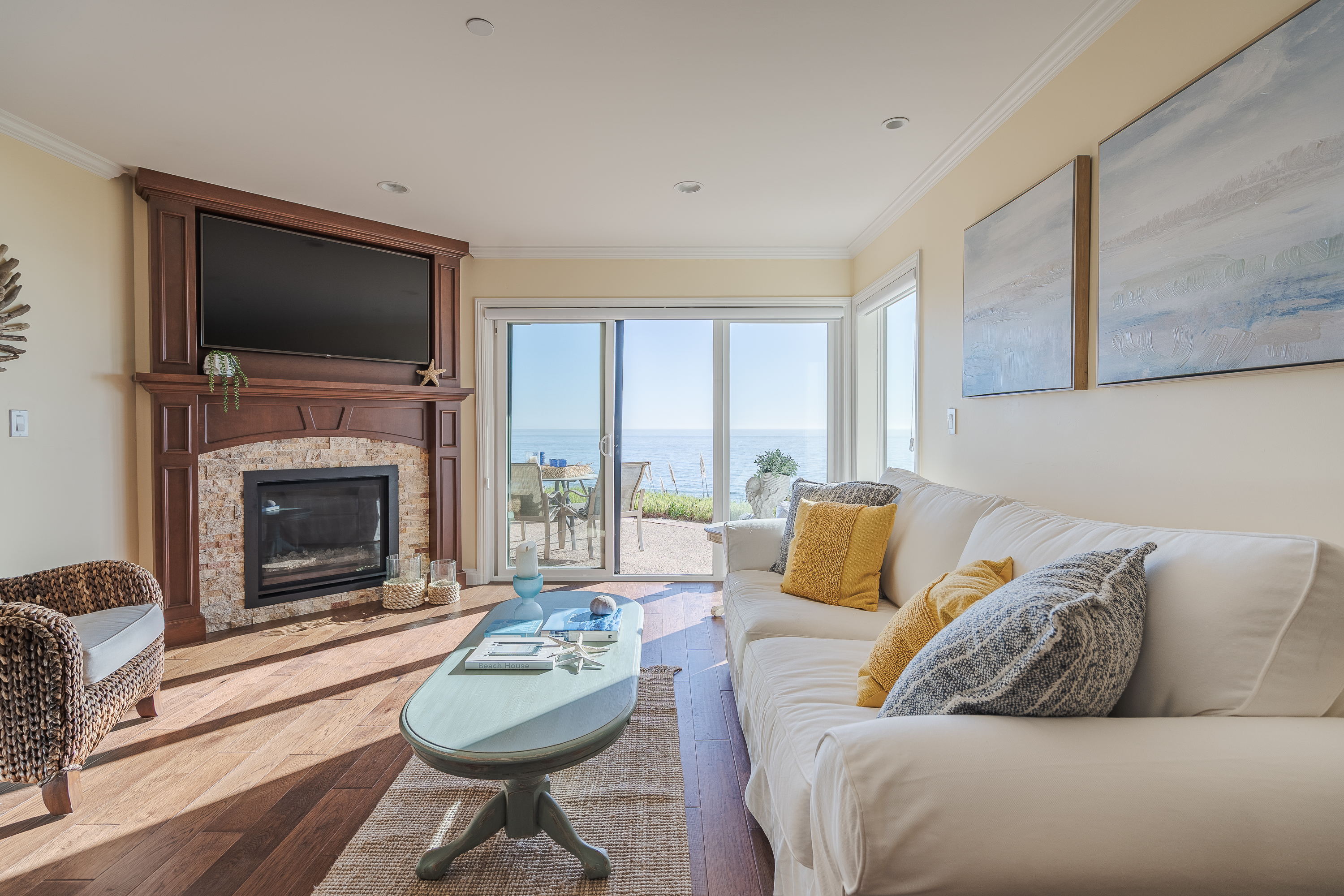 Enjoy effortless coastal access from this ground-floor, single-level oceanfront unit at Seascape Beach Resort, where unobstructed ocean views extend from the main living areas and primary bedroom - wake up to the ocean each day. This 2-bedroom, 2-bath unit features a recently remodeled, generously sized kitchen - larger than many units - along with newly updated bathrooms, fireplace, and flooring, offering a comfortable and well-appointed interior. Take in sweeping views of Monterey Bay toward Santa Cruz with year-round sunsets, just moments from direct beach access. Resort amenities include three pools, on-site dining with restaurant and bar, and reserved beach firepits with smores service, along with coastal walking paths and direct access to miles of sandy beach. Nearby are Seascape Golf Club, Seascape Sports Club for tennis and pickleball, restaurants, and Seascape Foods market, with surfing, hiking, and biking close by, and the Santa Cruz Beach Boardwalk (25 minutes) and Monterey Bay Aquarium, Carmel-by-the-Sea, and Pebble Beach (approx. 45 minutes) within easy reach.