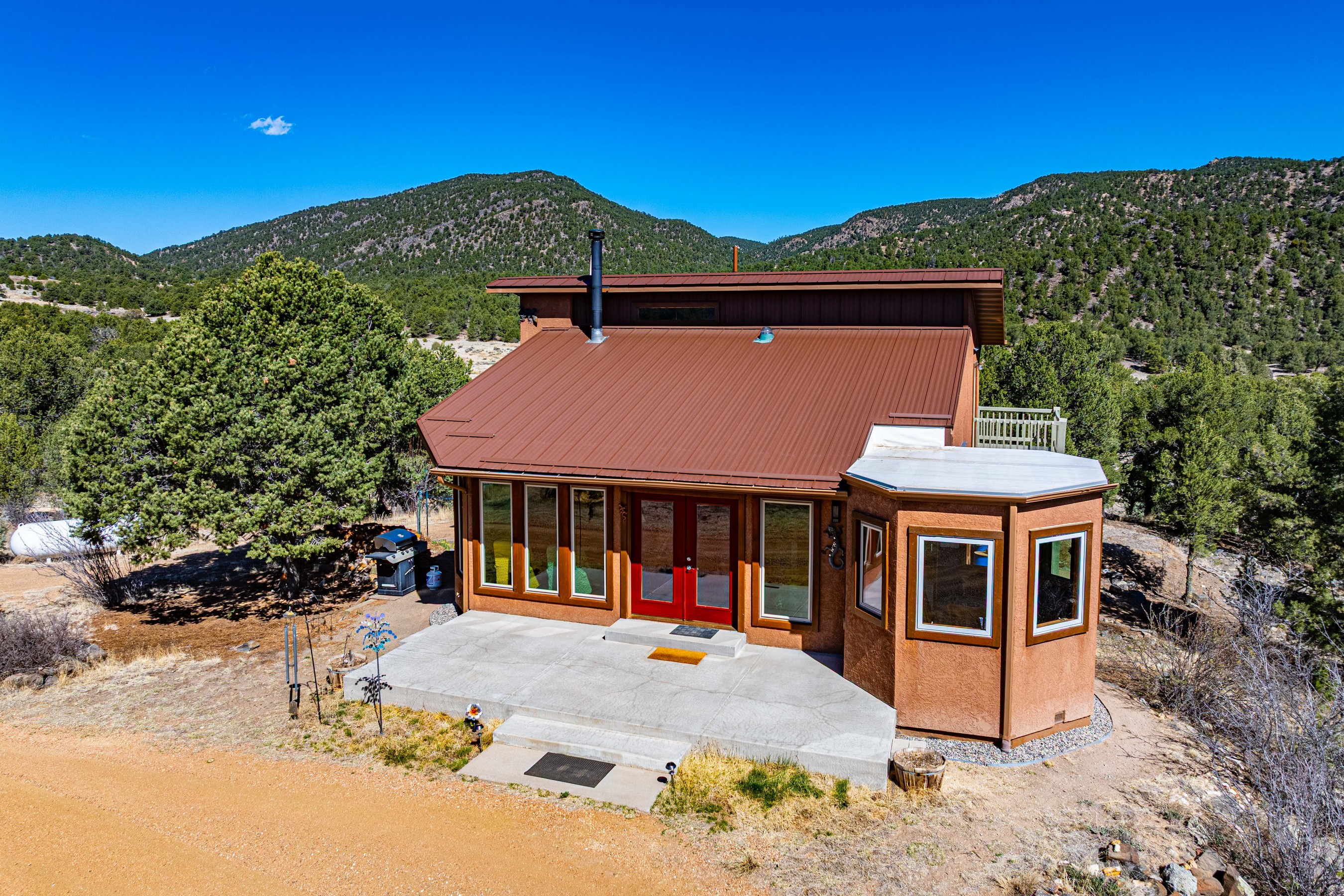 Your Private Mountain Sanctuary Awaits! Discover unparalleled privacy & breathtaking natural beauty on this magnificent 40 acre mountain retreat in Cotopaxi! Nestled amidst the Wet Mountains at the foot of the majestic Sangrede Cristo Peaks, this fully fenced paradise offers stunning panoramic views that will captivate your senses & soothe your soul. Not only is the location ideal, the property is adjacent to 1,000's of acres of public lands for unbelievable hunting, hiking & exploration opportunities. At its heart lies a charming ranch style 2 BD, 2.5 BA home with an oversized 3 car garage, providing comfortable living in a spectacular setting. The home & property are truly for those looking for a self-sufficient dream mountain ranch. Home features owned solar with brand new lithium batteries, propane heating & woodburning stove for off-grid ease of living with an emergency generator for peace of mind. Raised decking off the primary bedroom of the home to sit out & enjoy your privacy. Beyond the main residence, you'll find an array of incredible amenities designed for self-sufficiency & enjoyment: gated entrance with remote & keypad, an 8'x10' greenhouse,9'x11' sauna with attached 9'x9' shed, fenced garden area, shipping container, 12'x24' storage building. Also, brand new Lochinvar boiler system, metal roof, in-floor heating, water filtration system, front windows, refrigerator & cookstove. With seemingly endless space for exploration & expansion, what are you waiting for? Embrace the quietude, the views & the endless possibilities of your own piece of Colorado heaven minutes from the historic Town of Westcliffe &the Sangre de Cristo Mountain Range. With multiple 14'ers, museums, schools, shopping, Gold Medal fishing in the Arkansas River & antiquing in Florence all within an hour, this location offers everything you could want for your move to the mountains! Rare opportunity for a property like this! Additional 16 acre adjoining parcel is available as well!