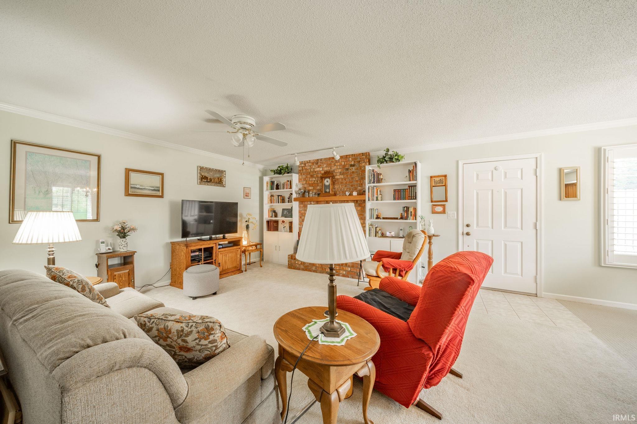 All on one floor-attached 2 car garage-welcoming rear patio that is both private and inviting. Storage room behind garage plus an additional room that has been most recently used as an office. The rest of the home offers comfortable space for both dining and kitchen area, living room with built in shelving and a gas operated fireplace, nice counter space in the kitchen with a tile backsplash, utility room , crown molding in some areas. 2 bedrooms and 2 full baths accommodate both owners and guests. Large walk-in closet. Much more to here!!