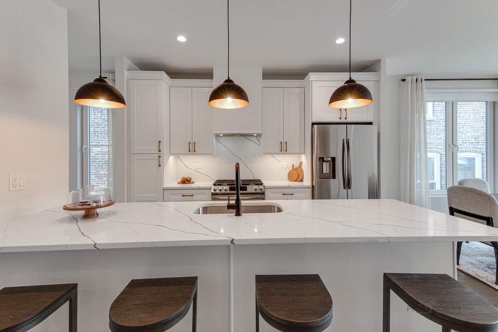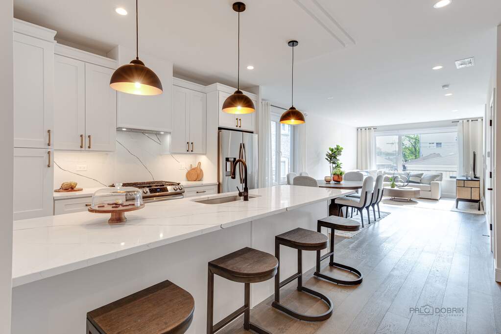 1304 N Lawndale is a striking newer-construction single-family home that delivers an exceptional combination of scale, quality finishes, and outdoor living that is genuinely rare at this price point in Chicago. Set on an oversized 30x125 lot in a vibrant West Side neighborhood just minutes from the 606 Trail and Humboldt Park, this spacious 5-bedroom, 3.1 bath residence spans four thoughtfully designed levels. Highlights include tall ceilings on every floor, a spectacular rooftop deck spanning nearly 1,000 square feet, a fully finished lower level with two additional bedrooms and a large recreation room, a main-level rear deck with yard access, and a two-car detached garage. This combination of space, flexibility, and outdoor living is genuinely hard to match anywhere in the city at this price. The open main level is built for modern living: bright and flowing, with a generously scaled living room, a dedicated dining area, and a beautifully appointed chef's kitchen at its heart. The kitchen showcases custom white shaker cabinetry, quartz countertops and matching quartz backsplash, a stainless-steel single-bowl sink with disposal, and a full Samsung stainless steel appliance suite including a gas slide-in range, French door refrigerator, sensor microwave with trim kit, and integrated dishwasher. A center island with breakfast bar seating anchors the space perfectly. A generous family room beyond the kitchen provides comfortable secondary living space with direct access to a rear deck and yard - an effortless transition for warm-weather entertaining or everyday outdoor enjoyment. A mudroom with closet keeps daily arrivals organized and contained. The second floor is anchored by a spacious primary suite with a large walk-in closet and a luxurious en-suite bath featuring dual sinks and full porcelain tile on both the floors and walls. Two additional well-proportioned bedrooms, both comfortably sized and served by natural light, share a ceramic-tile hall bath. In-unit laundry, thoughtfully located on this floor, ensures that everyday household tasks stay effortless. The finished lower level expands the home's living area substantially, adding two more bedrooms - ideal for guests, a home office, an au pair suite, or accommodating a growing household with ease. An oversized recreation room adapts to whatever you need most, whether that's a media room, playroom, fitness studio, or a combination of all three. A full porcelain-tile bath completes the lower level. The crowning feature is the sweeping rooftop deck, spanning nearly the full width and length of the home and delivering close to 1,000 square feet of private outdoor space with open sky views above the Chicago rooftops. Whether you envision an outdoor dining room, a lounge with fire pit, a garden terrace, or simply the best block party perch in the neighborhood, this rooftop provides the canvas. Below, the rear deck off the family room adds a second, more casual outdoor zone for grilling, morning coffee, or letting the dog out, with yard space beyond. This special home is located just steps from the 606 Trail and minutes from Humboldt Park, North Avenue dining and shopping, and easy access to the expressway.